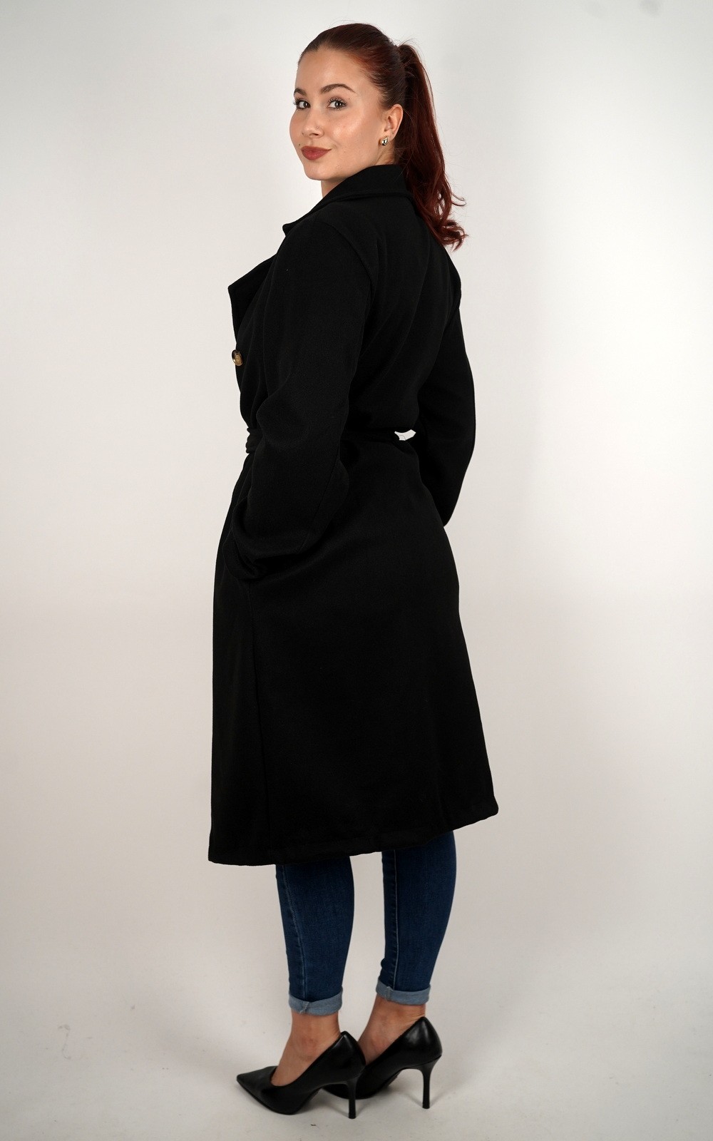 Ženski kaput s gumbima i vezicom u struku – 6759