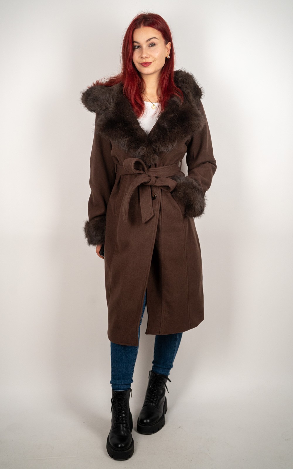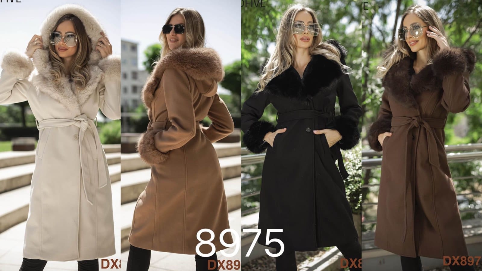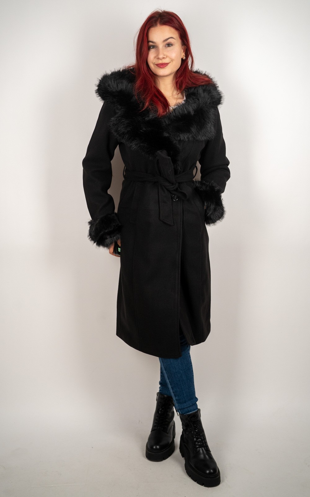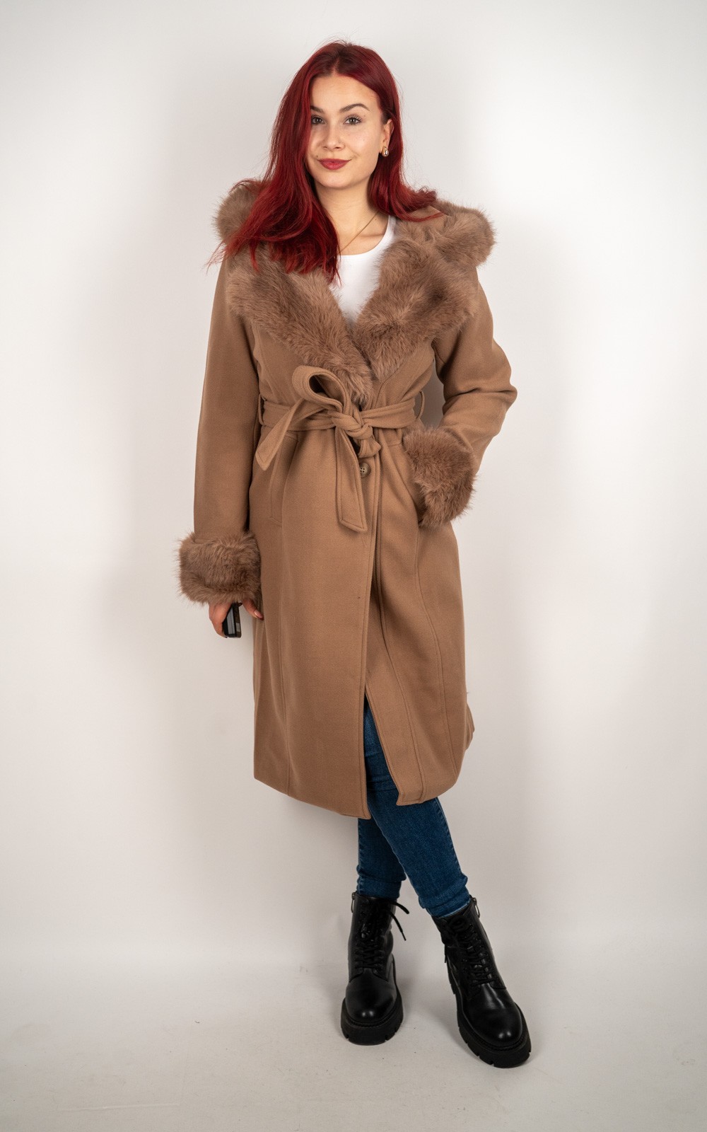 Ženski kaput s umjetnim krznom i vezicom – DX8975