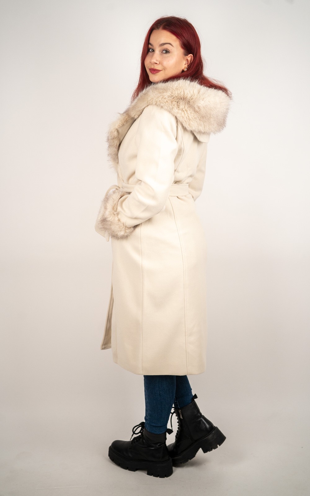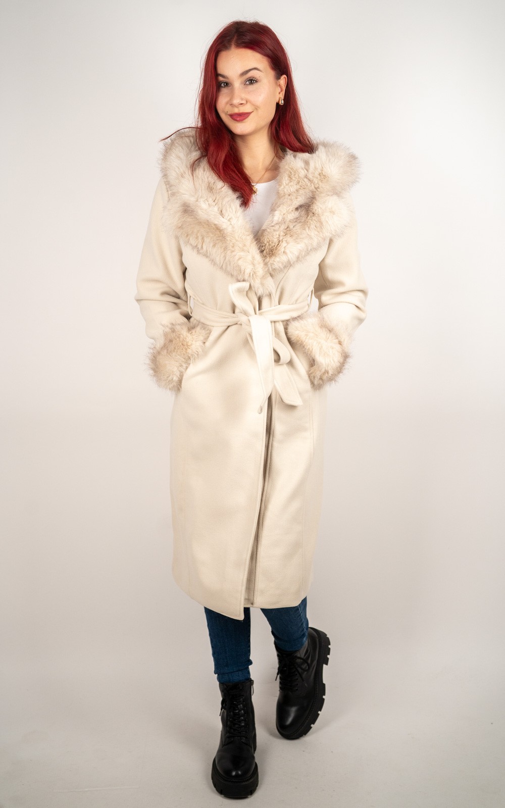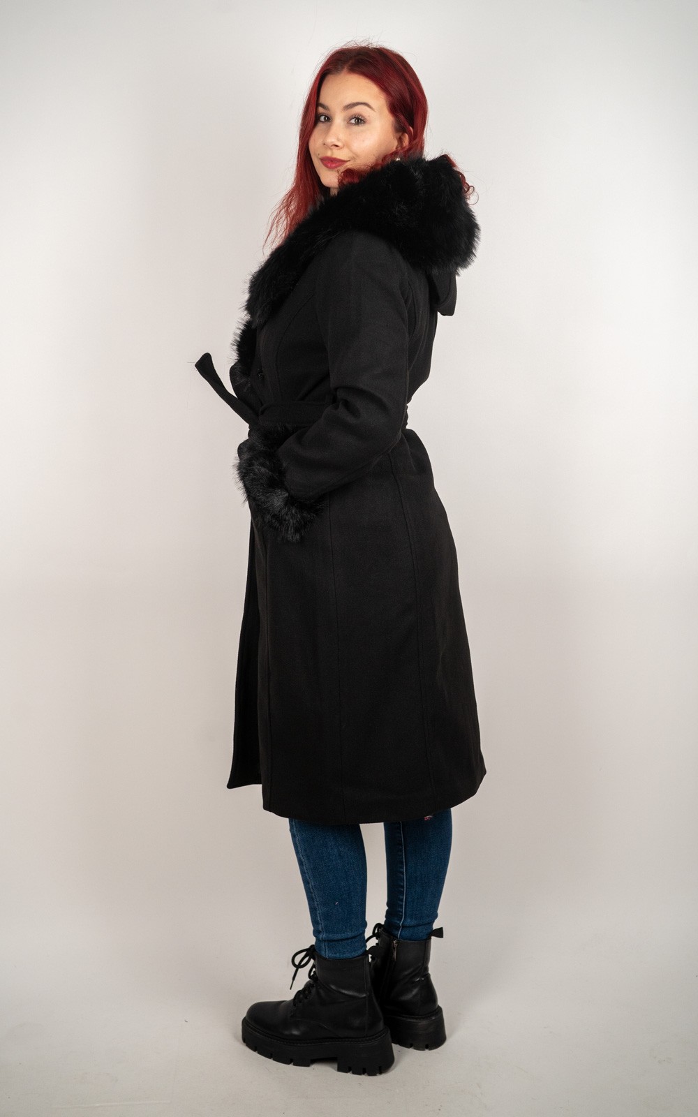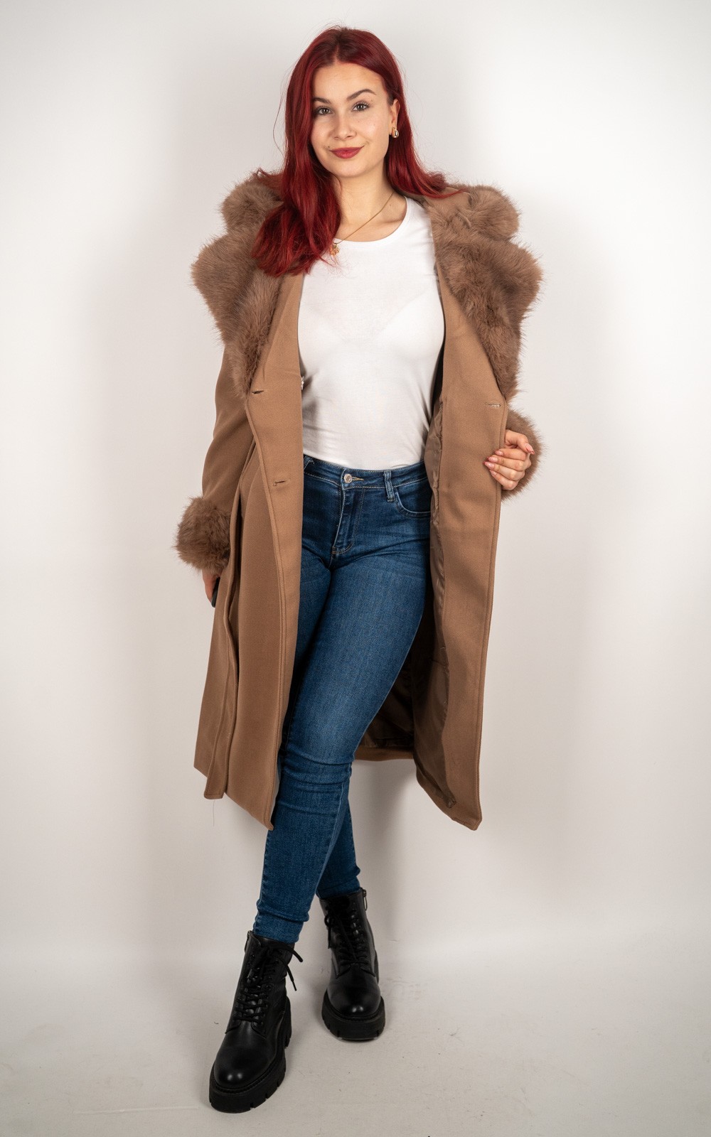 Ženski kaput s umjetnim krznom i vezicom – DX8975