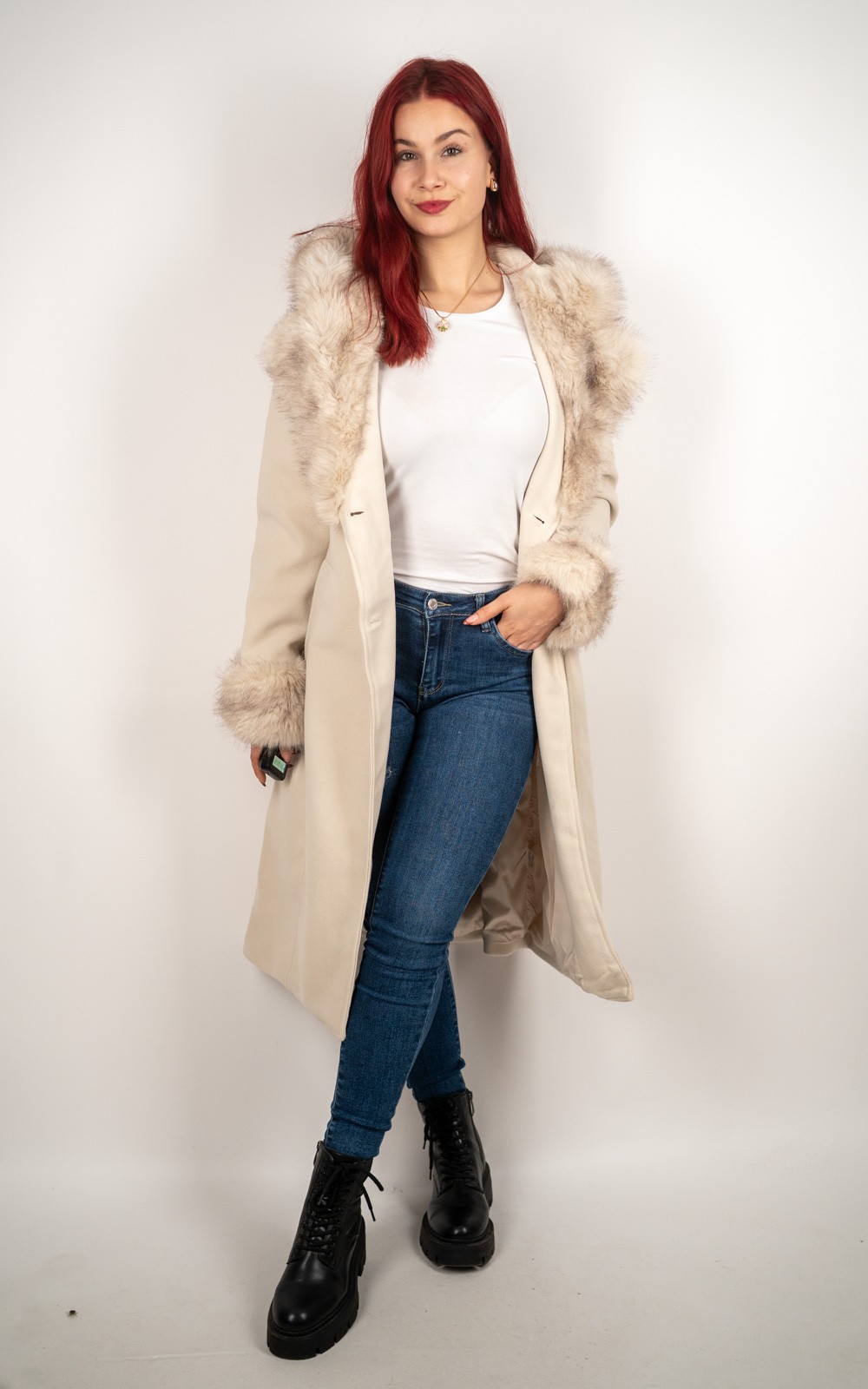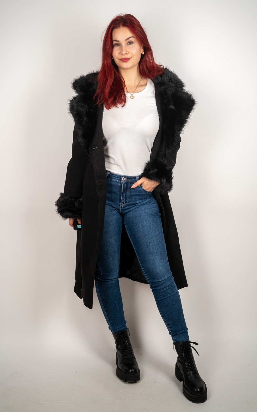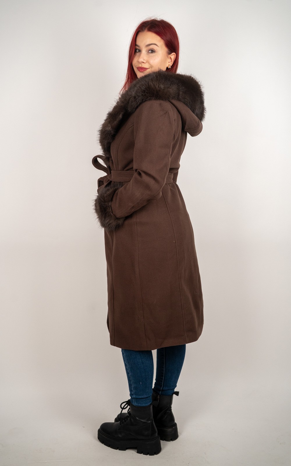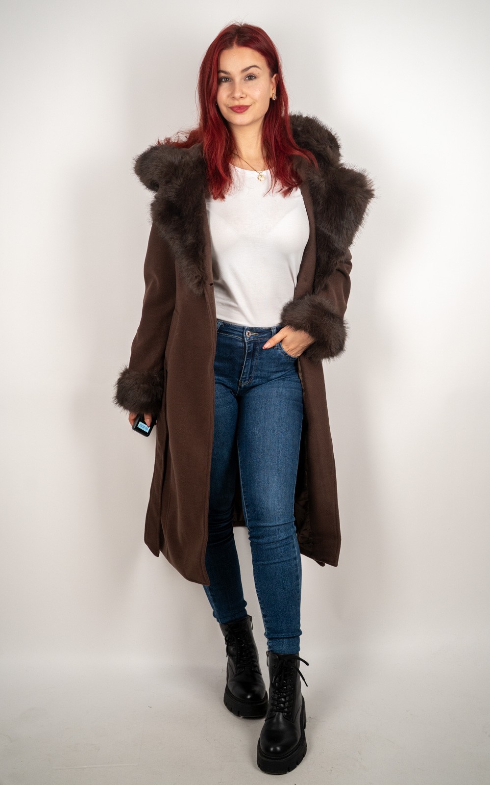 bozic10 očekuje te snižena cijena od 67.50 € za ovaj artikl u košarici.Elegantni dugi kaput s bogatim umjetnim krznom uz kapuljaču i rukave naglašava ženstvenu liniju, dok pojas u struku omogućuje savršeno prilagođavanje figuri. Mekan, topao i iznimno profinjen, ovaj model idealan je za hladne dane kada želiš izgledati moderno i osjećati se udobno.