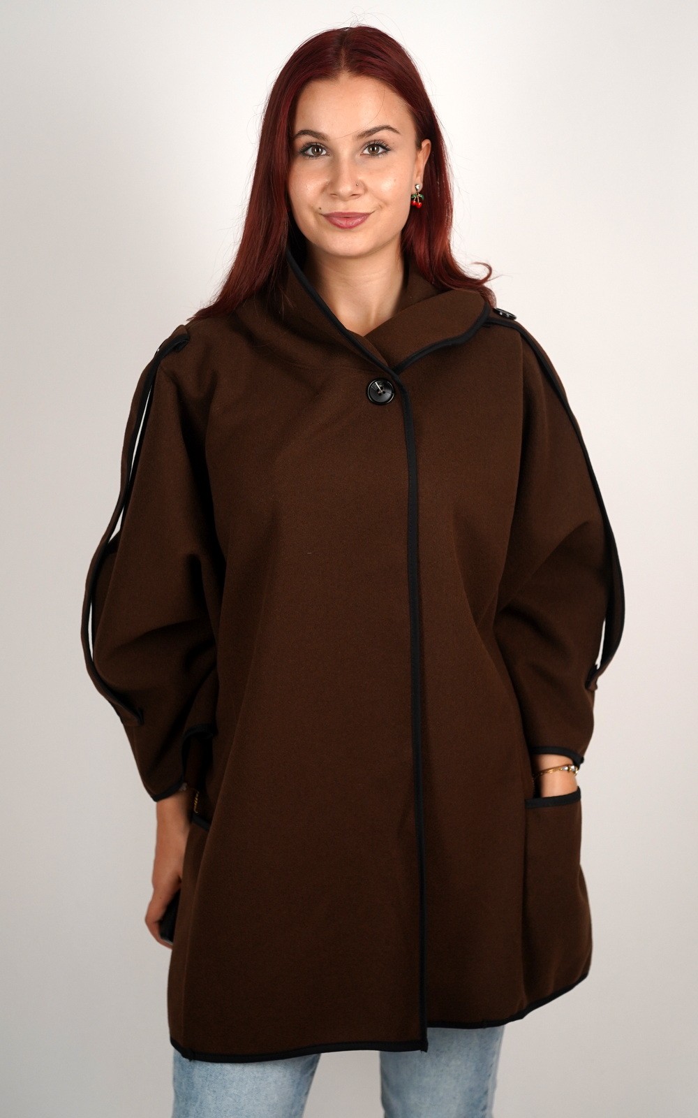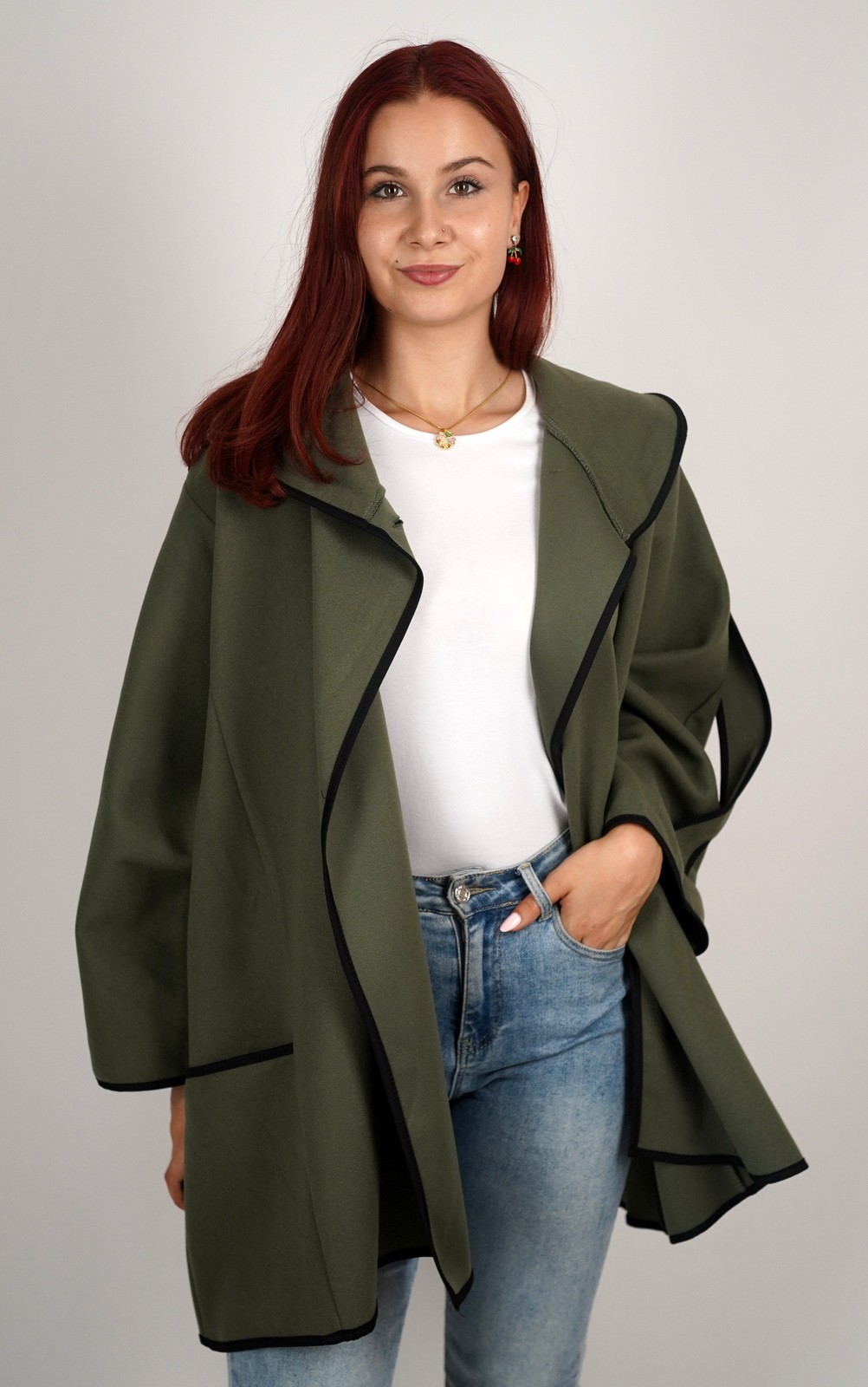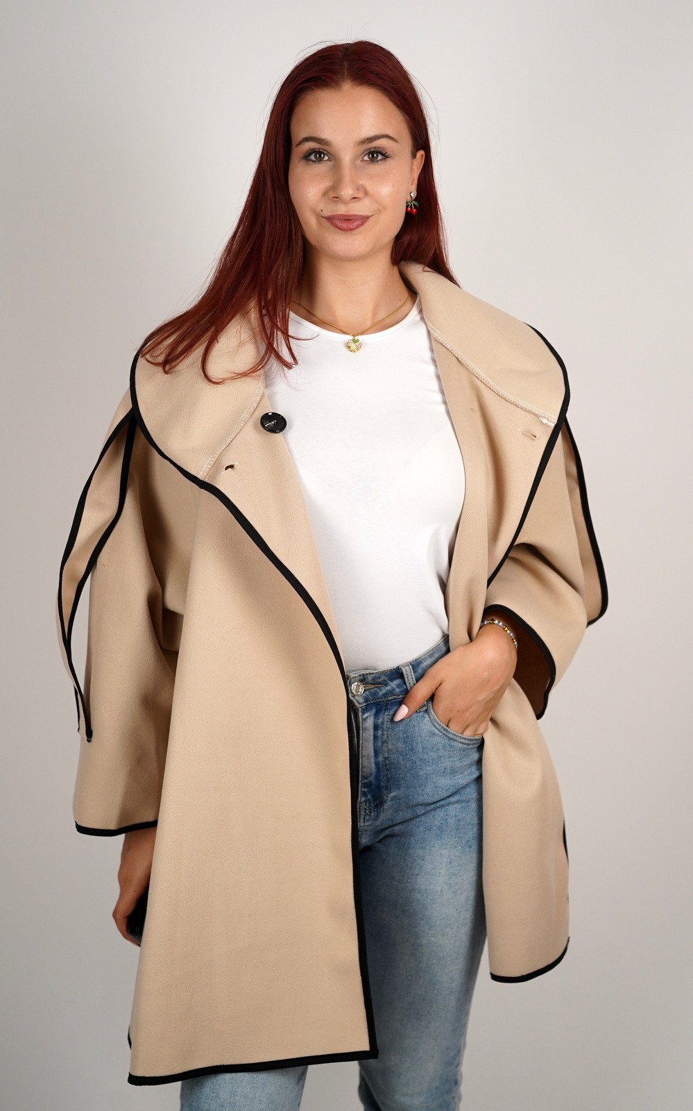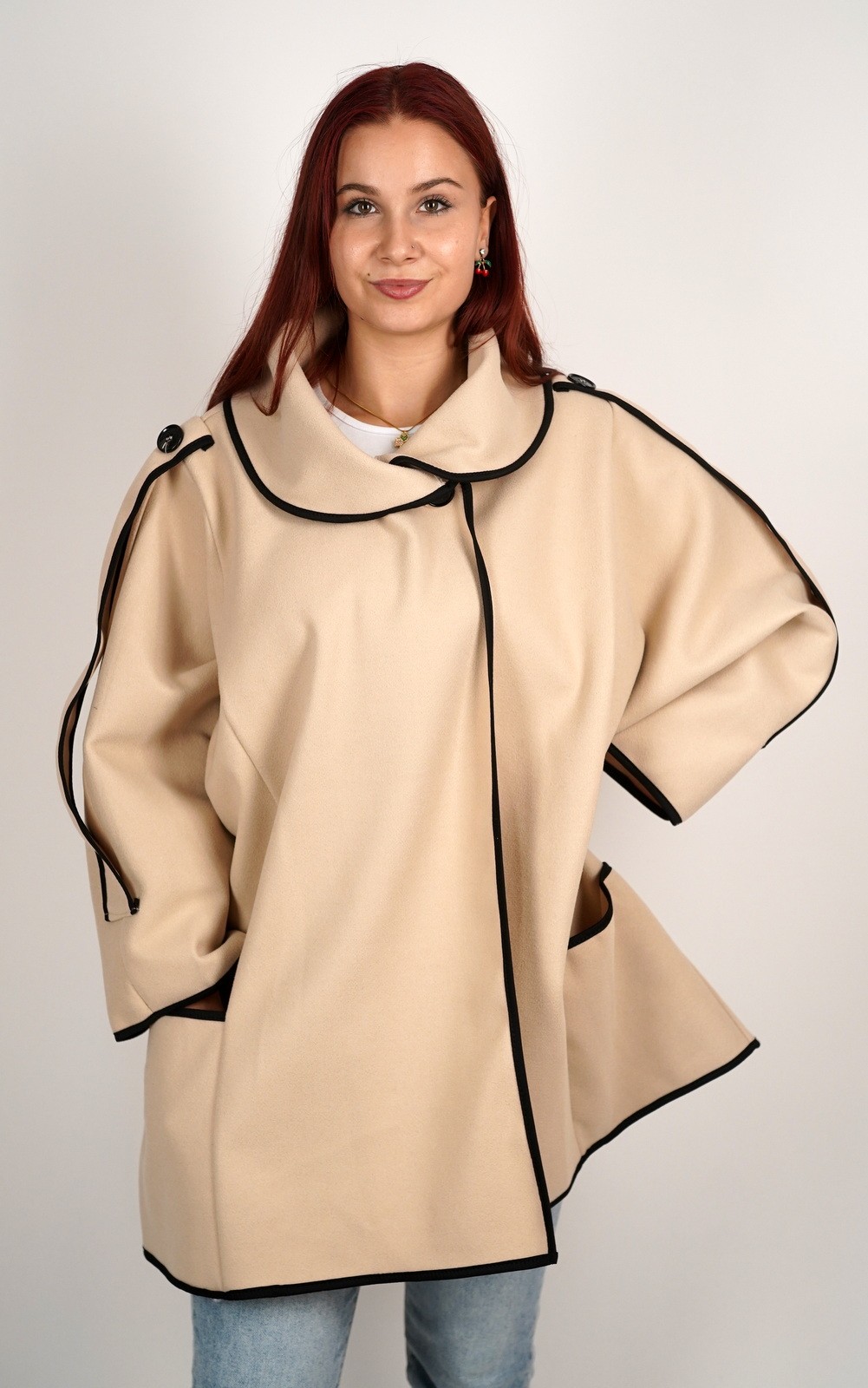 Ženski kaputić/pelerina sa širokim krojem i dekorativnim rubovima – 45011474