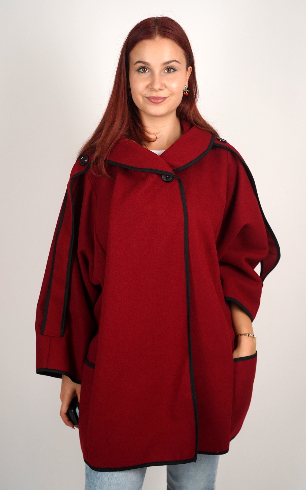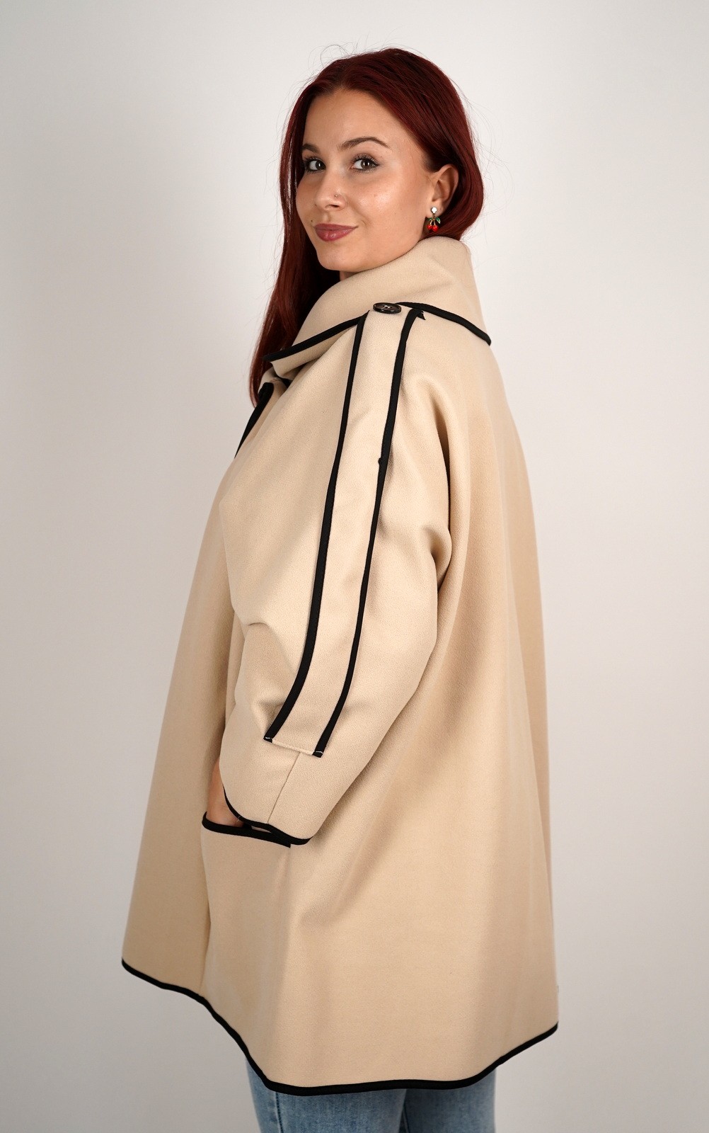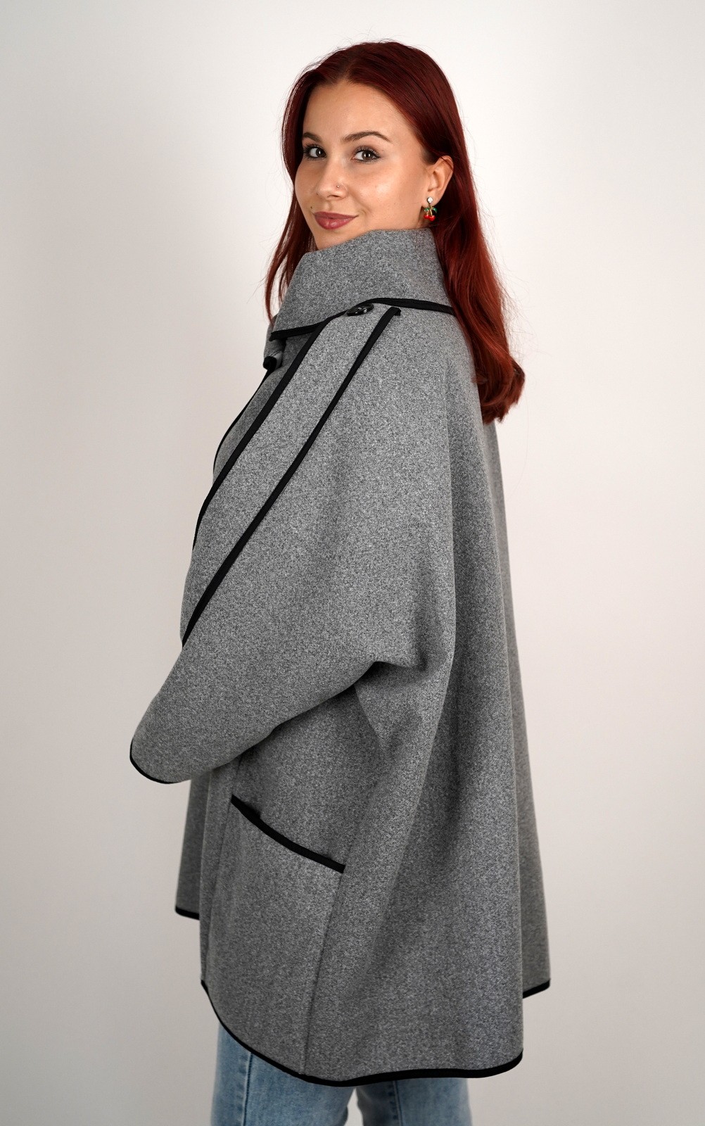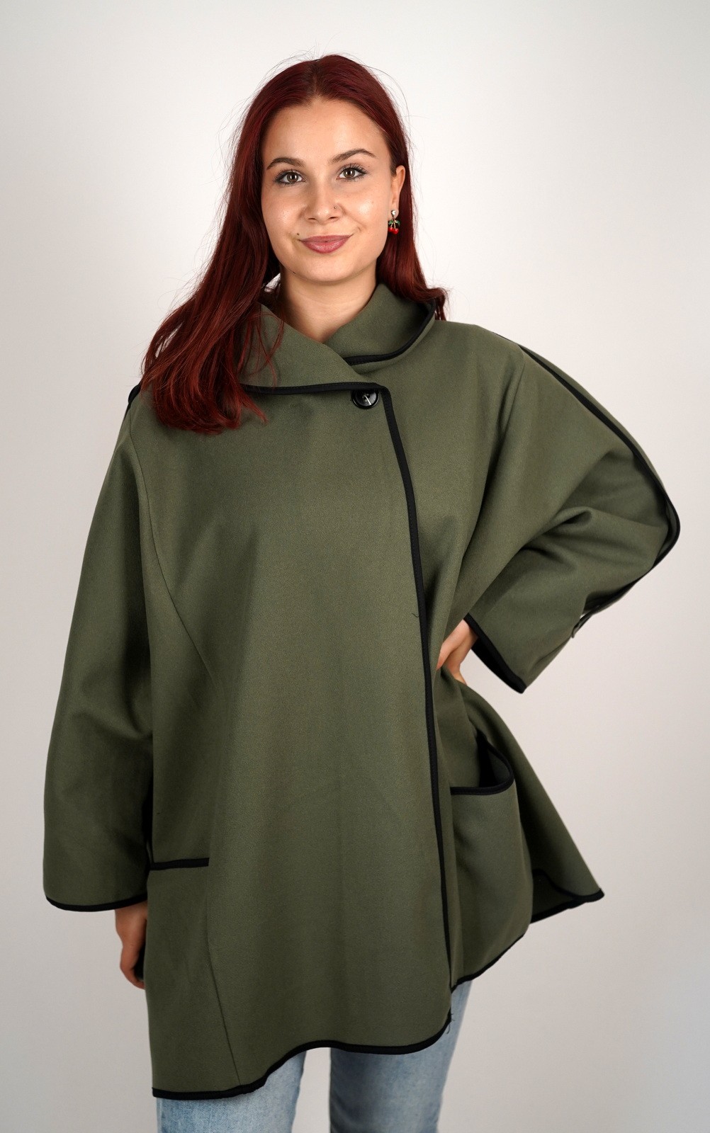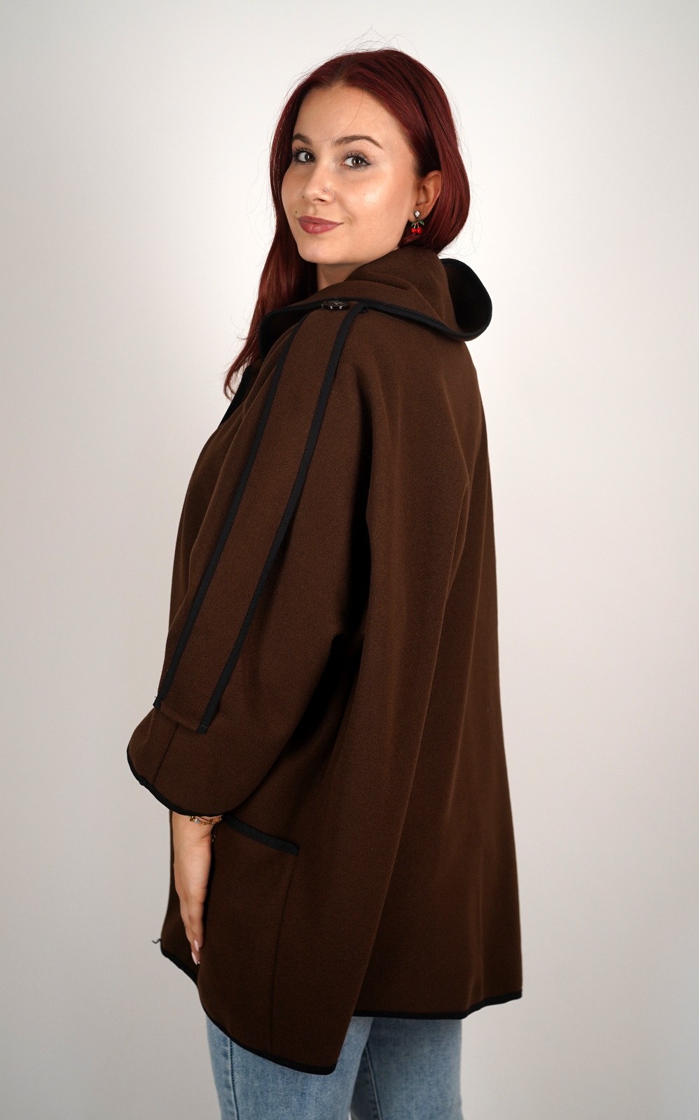 Ženski kaputić/pelerina sa širokim krojem i dekorativnim rubovima – 45011474