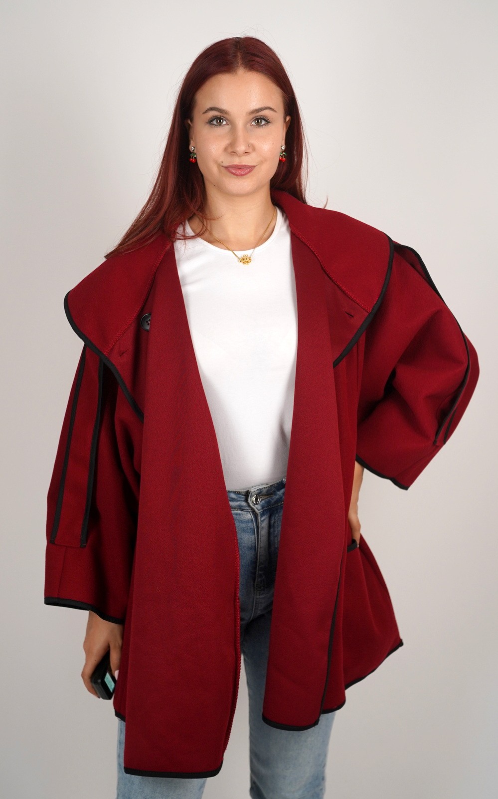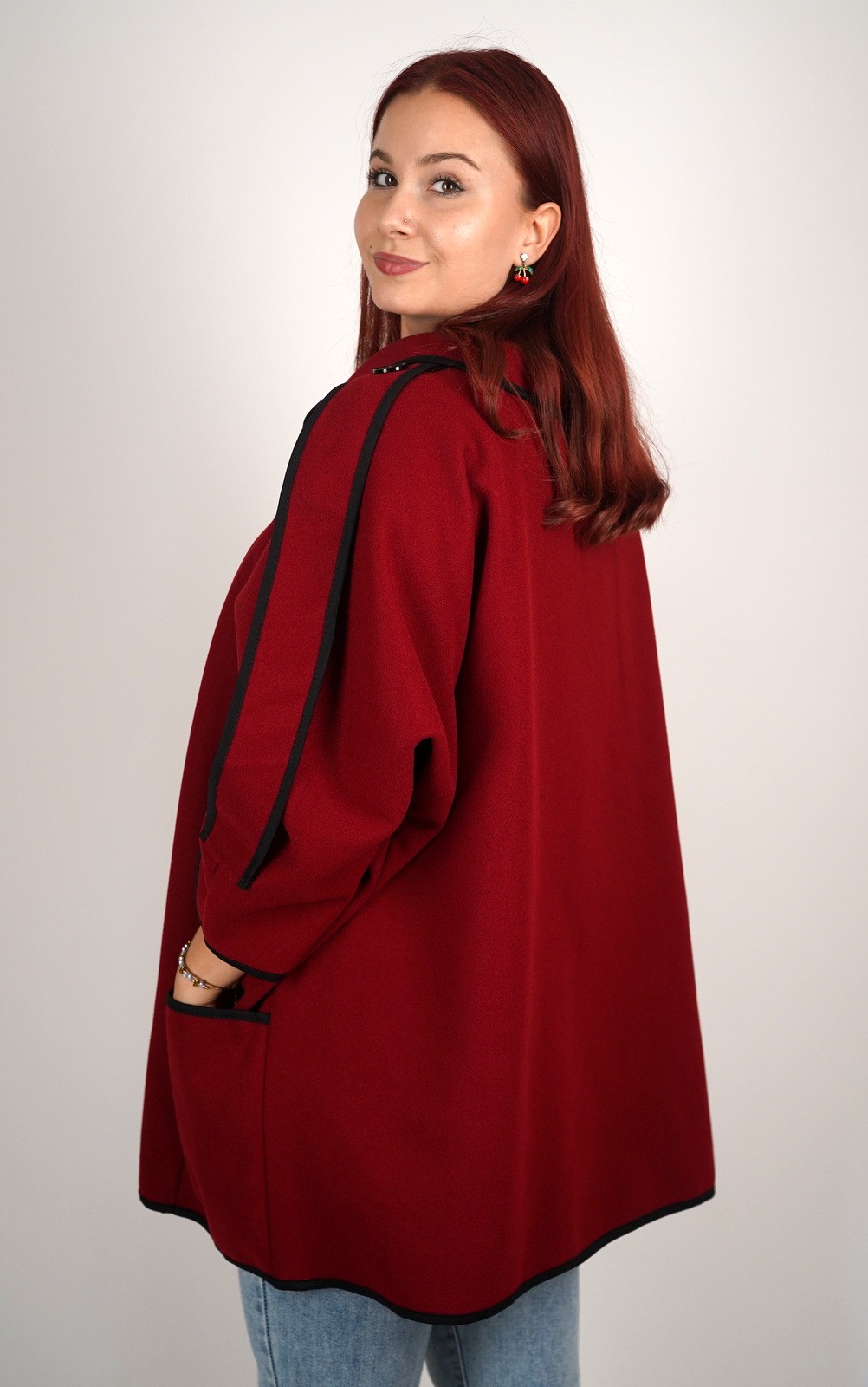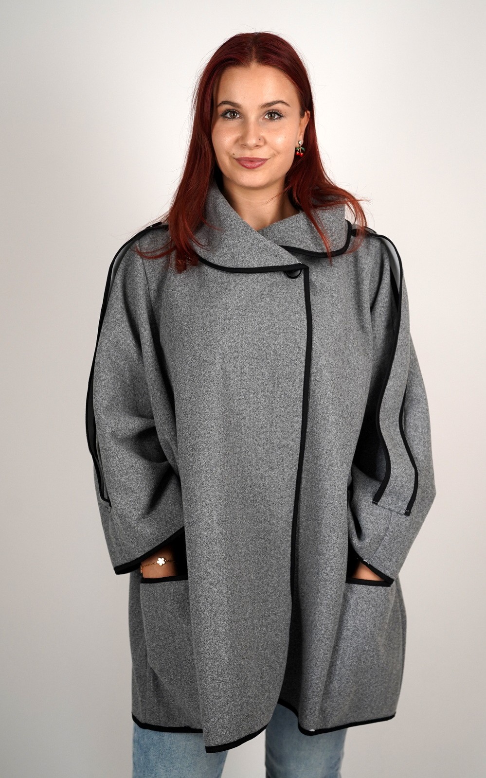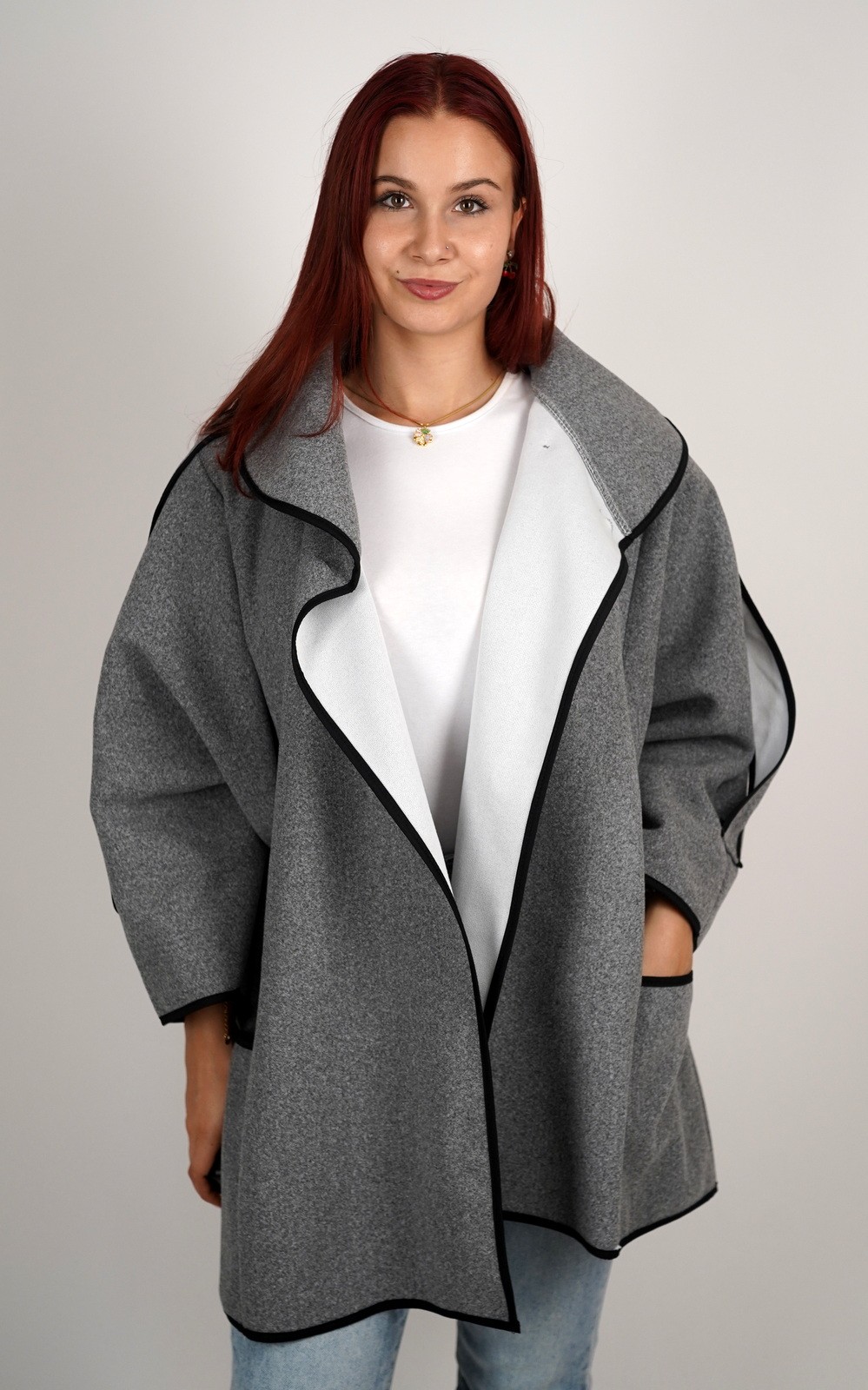 Ženski kaputić/pelerina sa širokim krojem i dekorativnim rubovima – 45011474