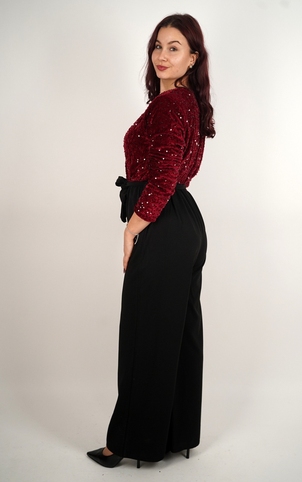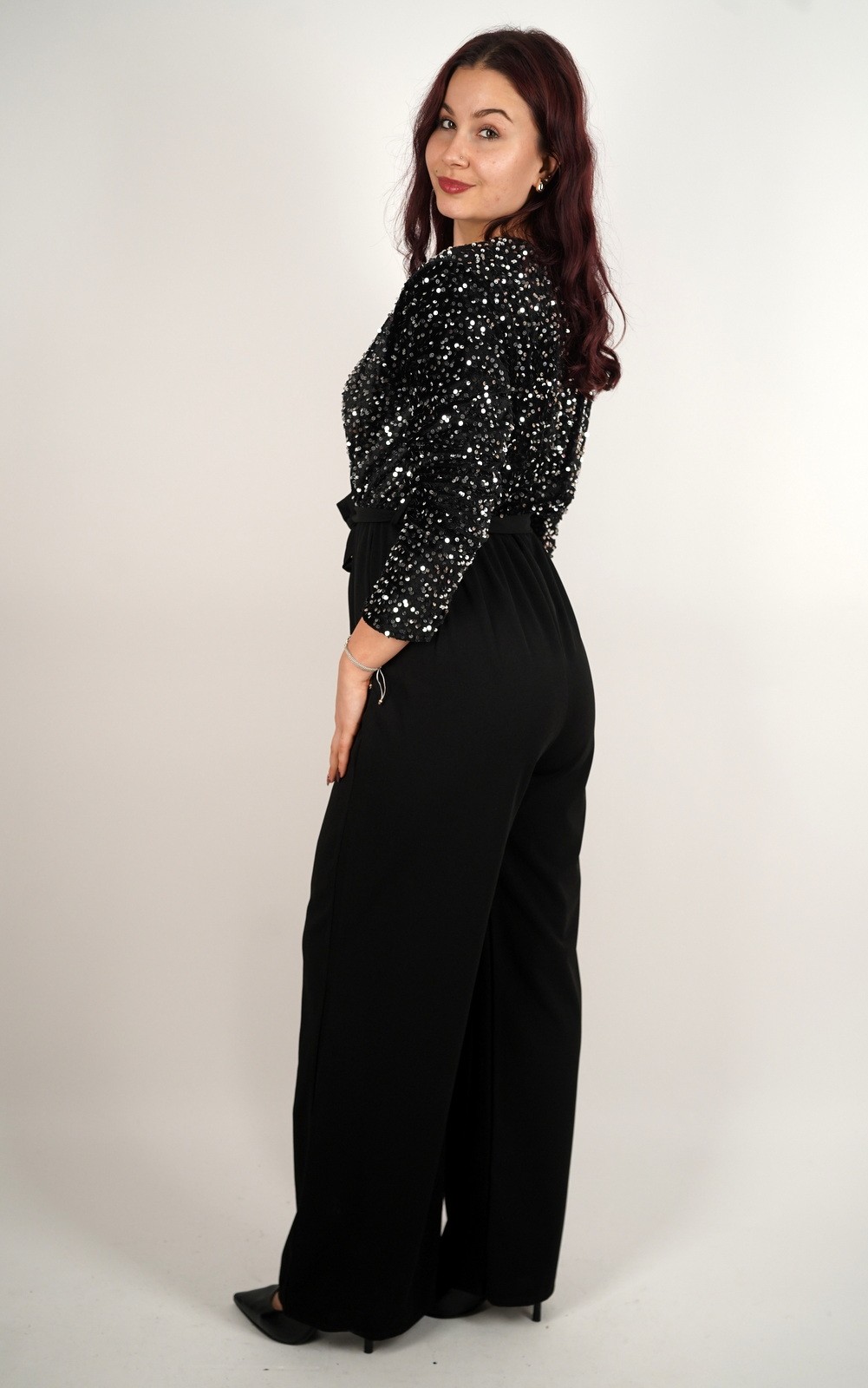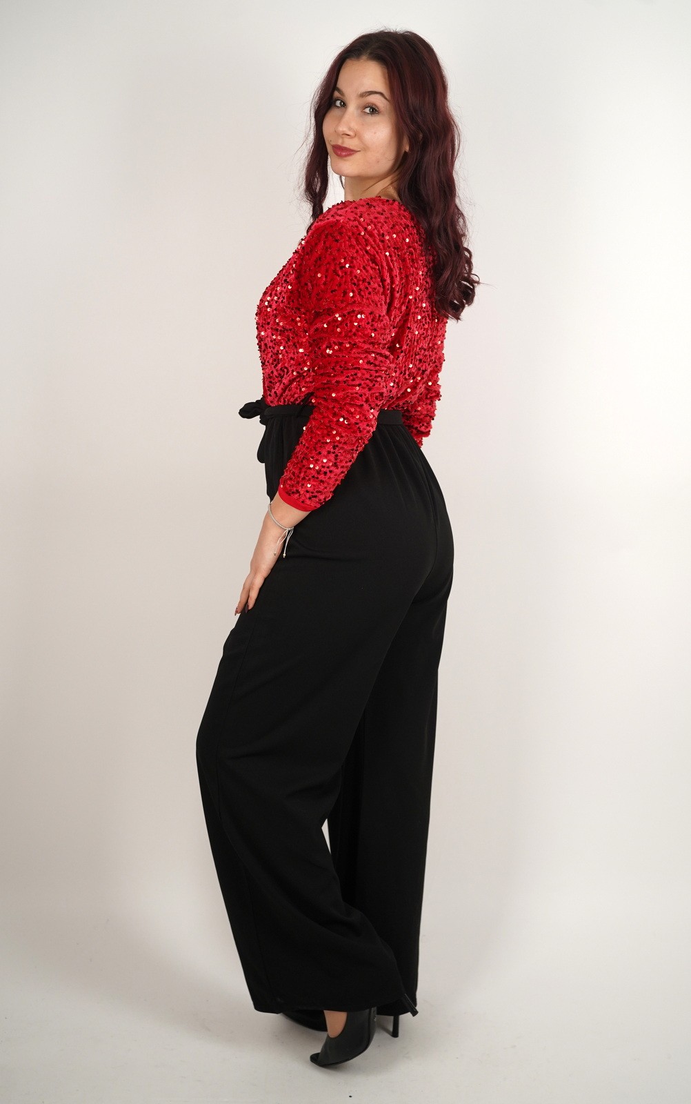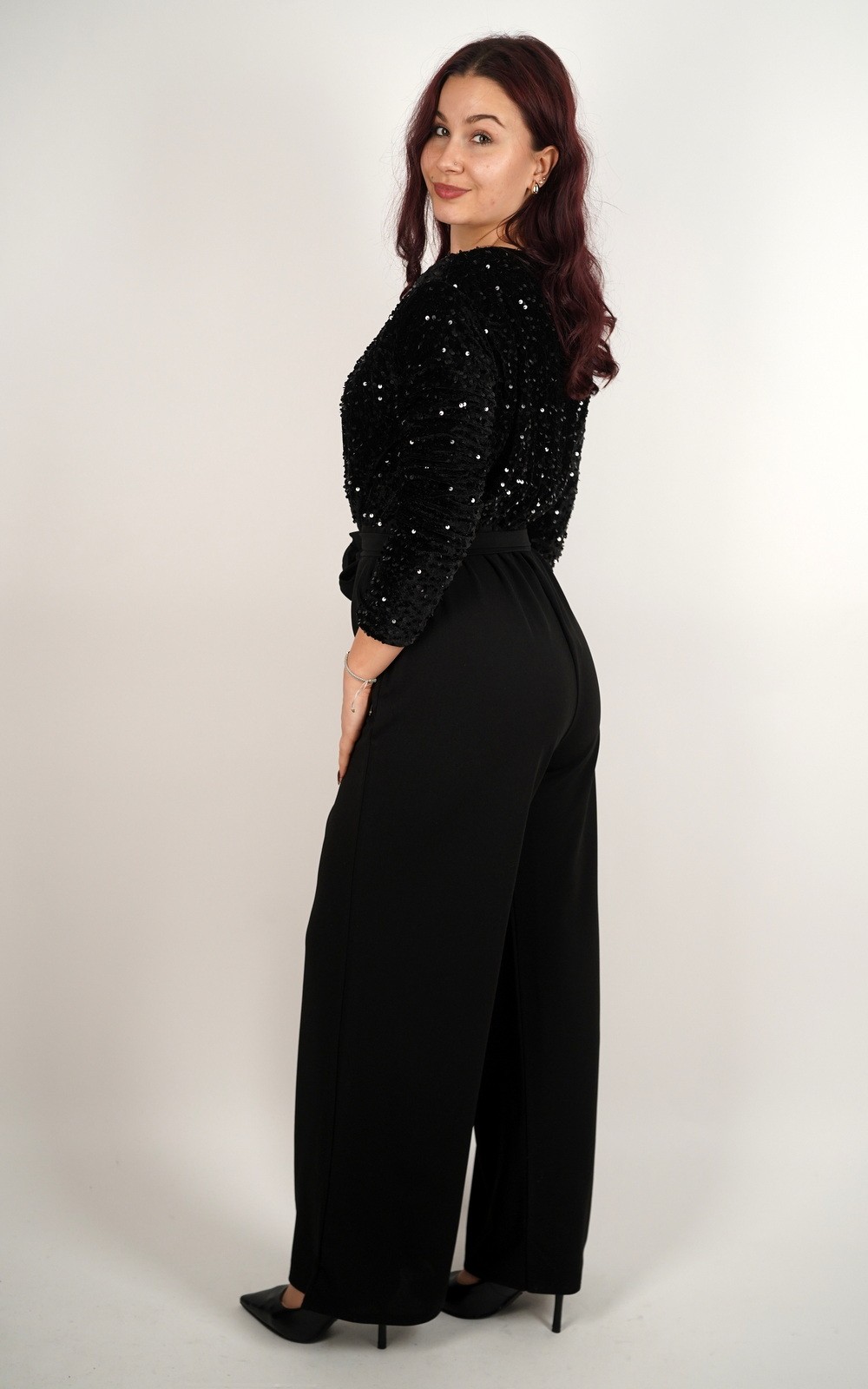 bozic10 očekuje te snižena cijena od 31.50 € za ovaj artikl u košarici.Glamurozni ženski kombinezon sa šljokičastim gornjim dijelom, dubokim preklop izrezom i širokim nogavicama. Prilagodljivi struk s vezicom naglašava liniju, dok elegantan kroj pruža udobnost i efektan večernji izgled.