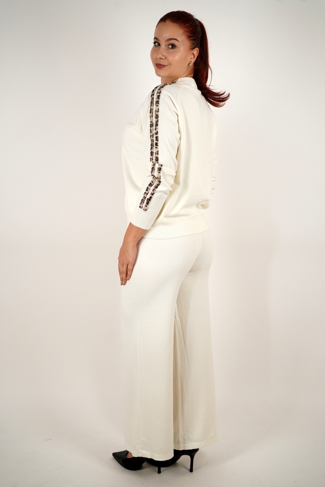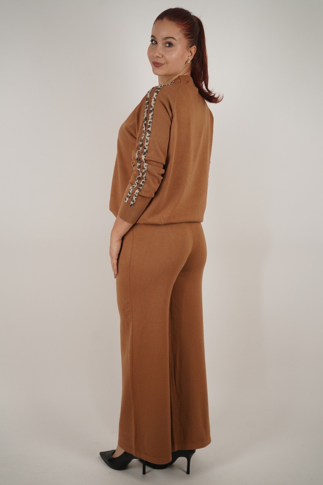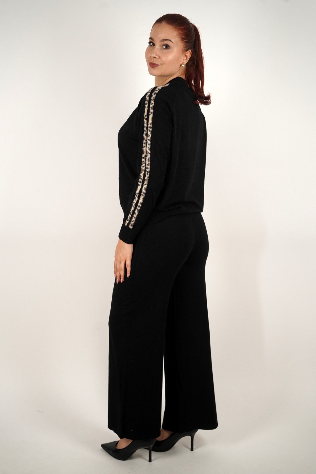 Ženski komplet fino meko pletivo – majica s animal print detaljima + hlače – u veličinama – 8518