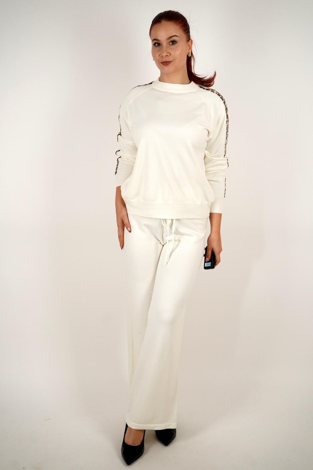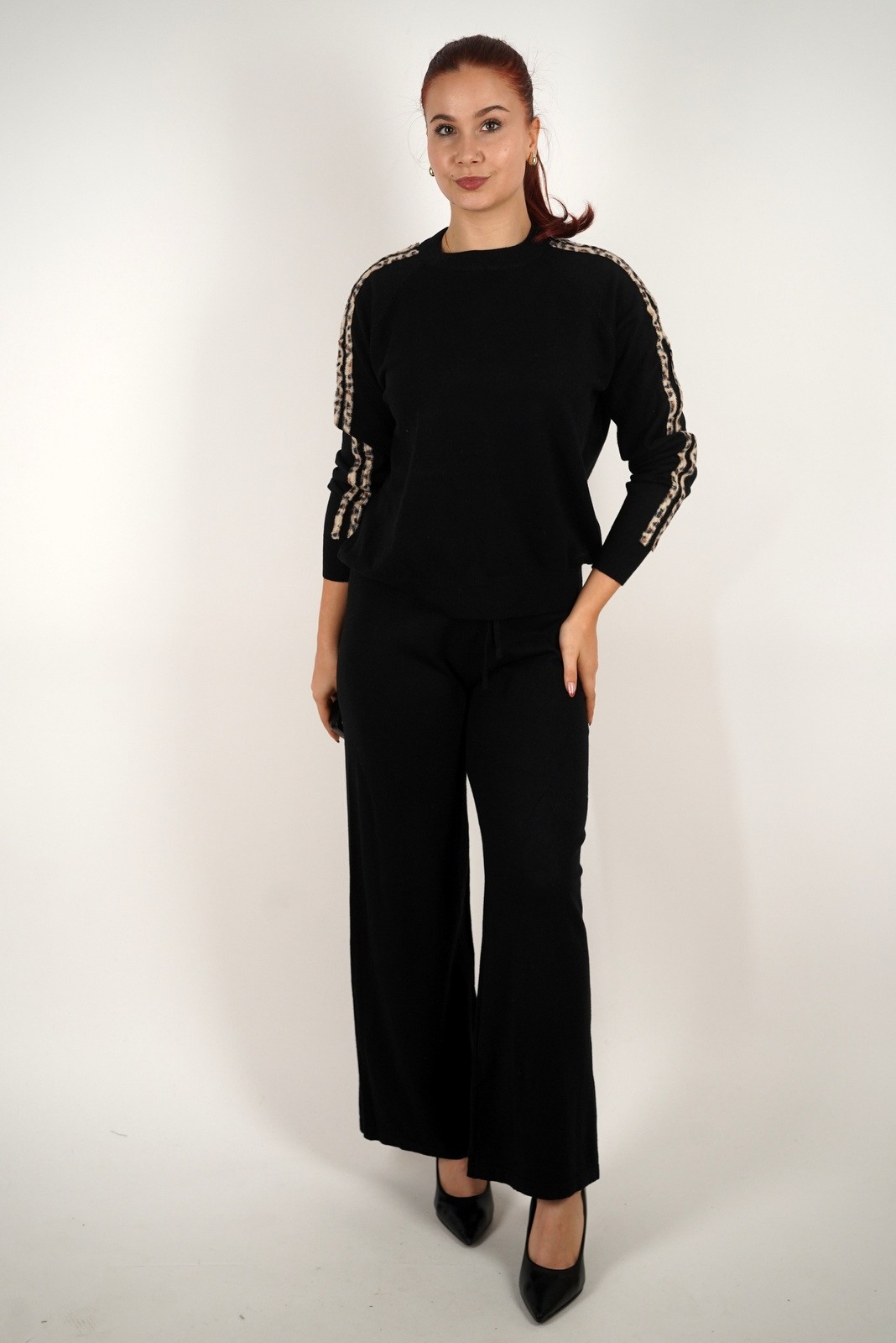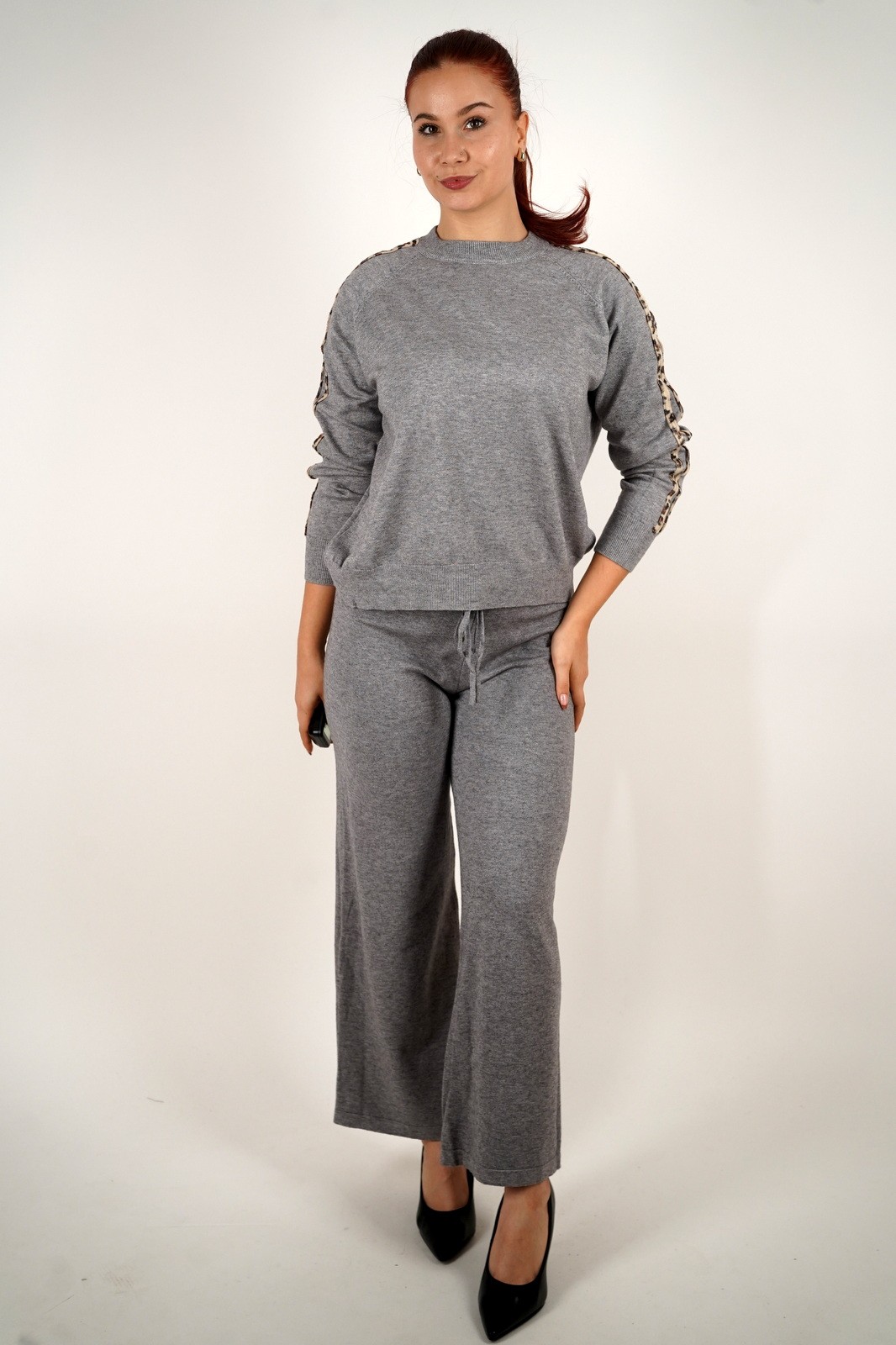 Ženski komplet fino meko pletivo – majica s animal print detaljima + hlače – u veličinama – 8518