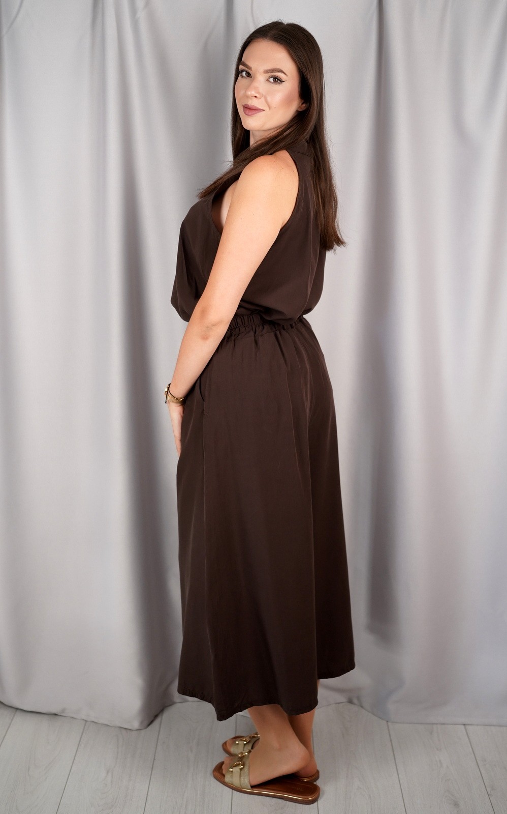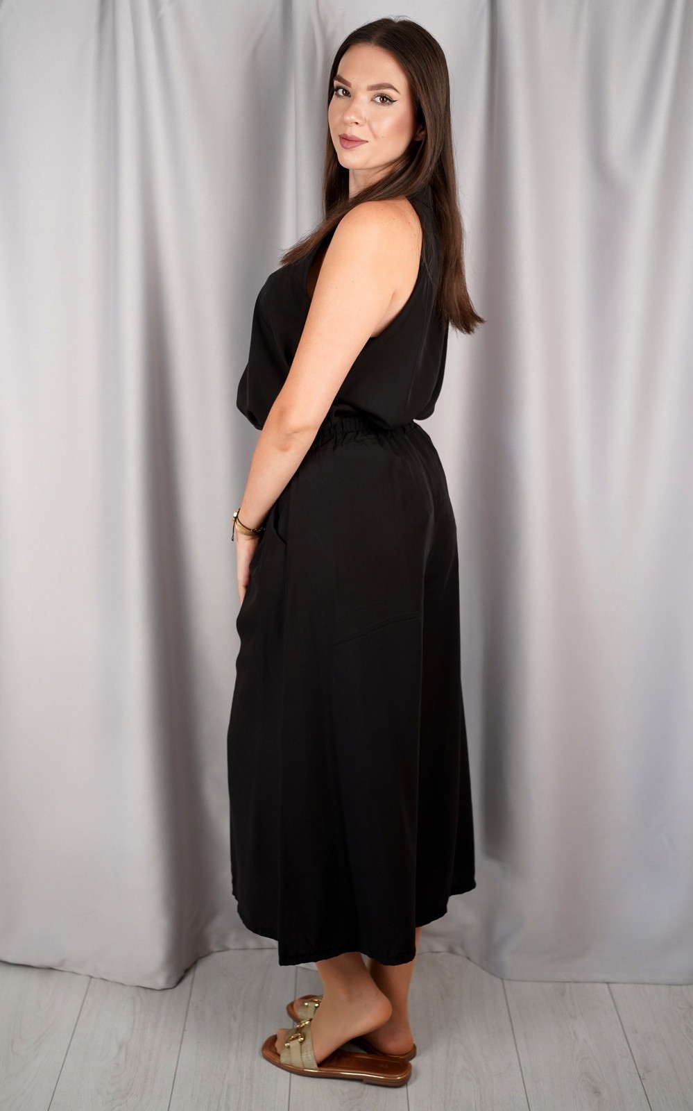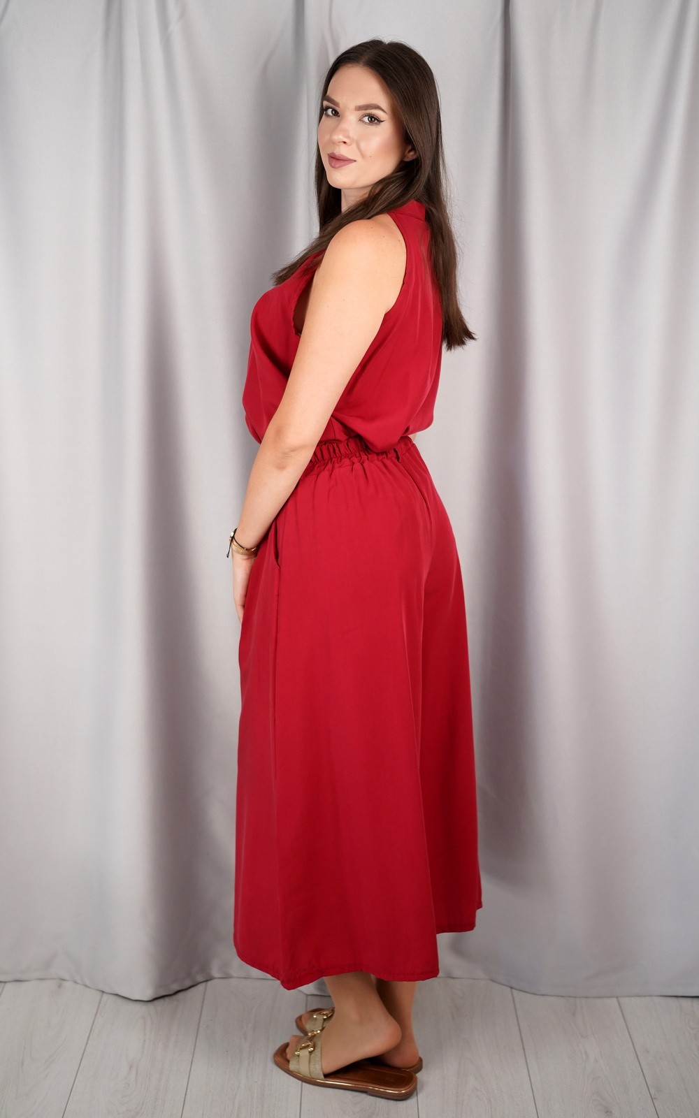 bozic10 očekuje te snižena cijena od 16.20 € za ovaj artikl u košarici.Ovaj elegantni dvodijelni komplet bez rukava spaja udobnost i sofisticiran izgled. Gornji dio ima moderan, lagano opušten kroj bez naramenica, dok donji dio čine široke hlače visokog struka koje pružaju slobodu pokreta i lepršav osjećaj pri hodu. Prozračna tkanina čini ga savršenim izborom za tople ljetne dane, a minimalistički dizajn omogućava lako kombiniranje s različitim modnim dodacima. Idealan je za posao, večernji izlazak ili ležerne dnevne kombinacije, pružajući uvijek profinjen i chic izgled.