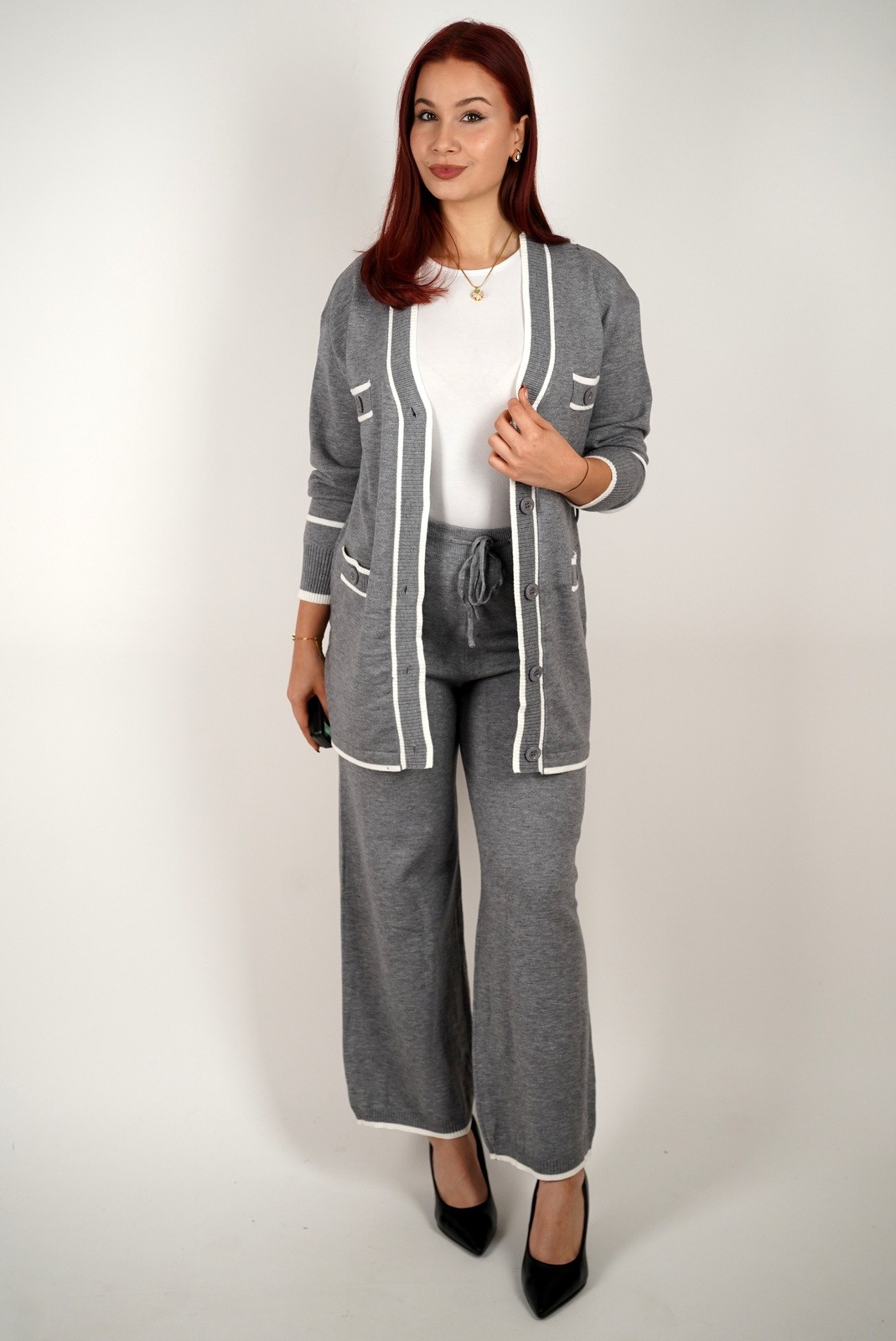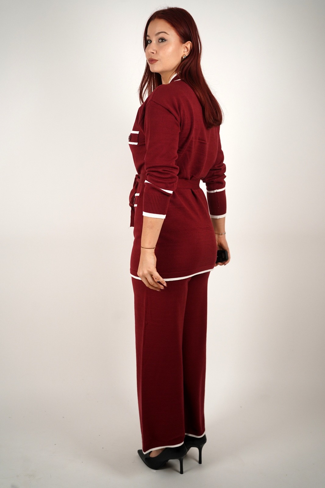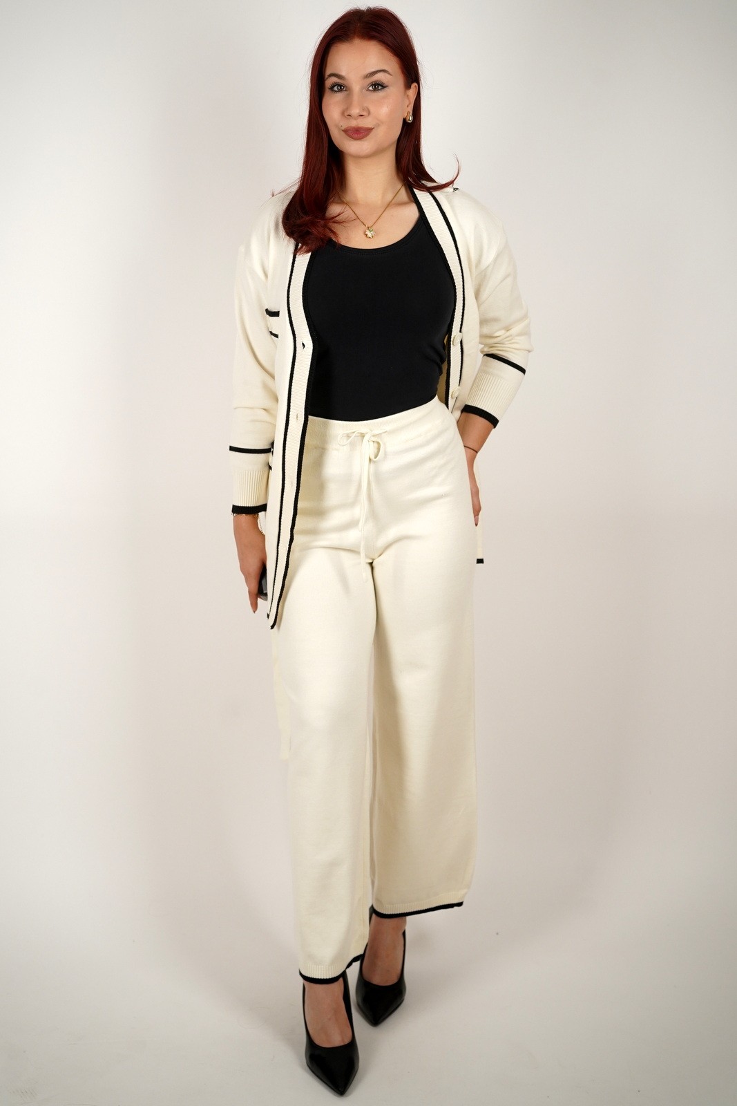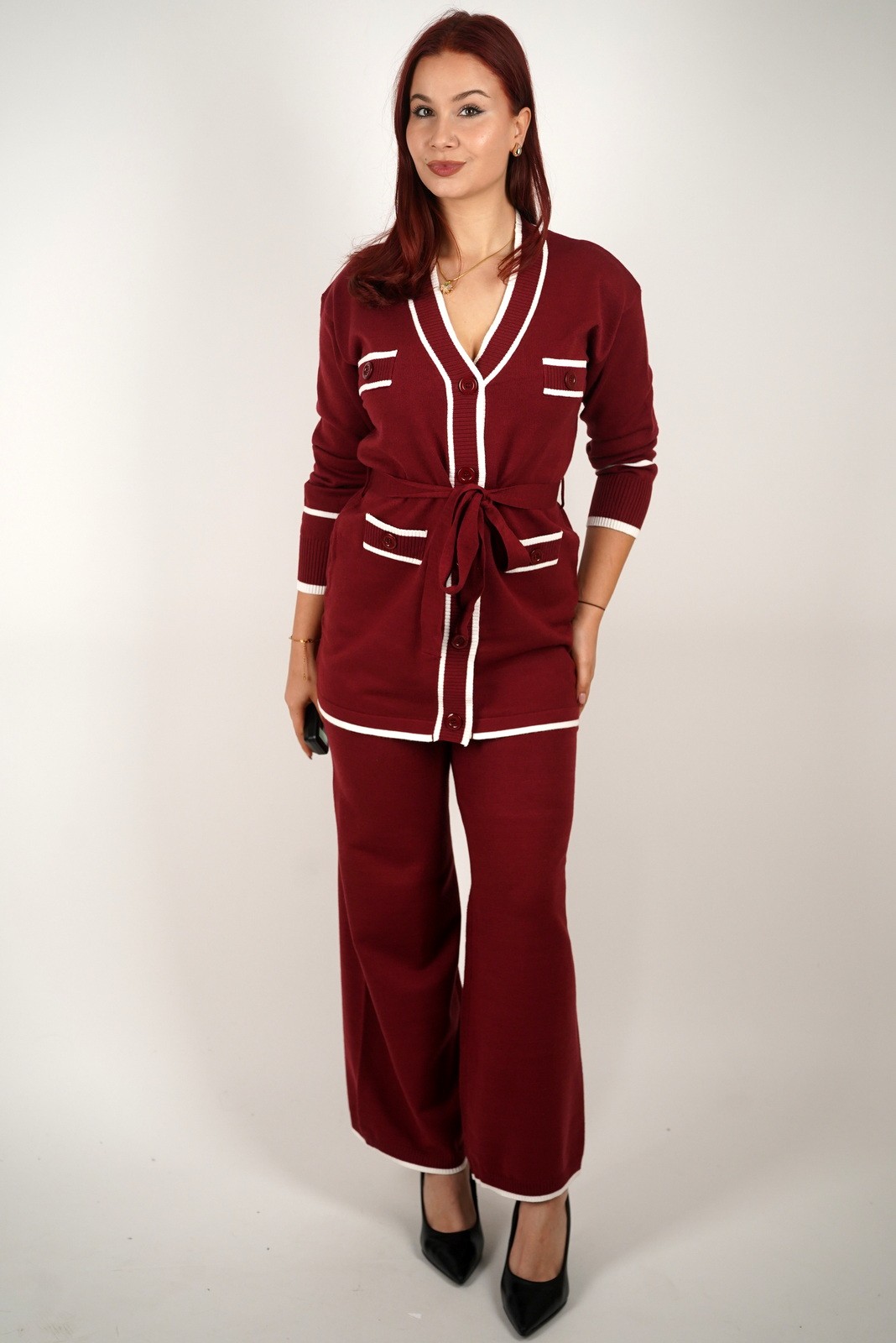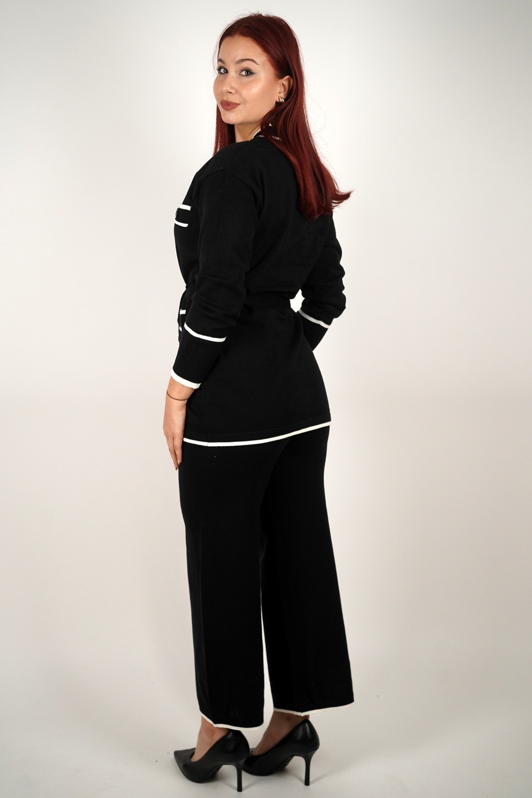 Ženski komplet od pletiva s vezicom i kontrastnim obrubom – u veličinama – L8513AB