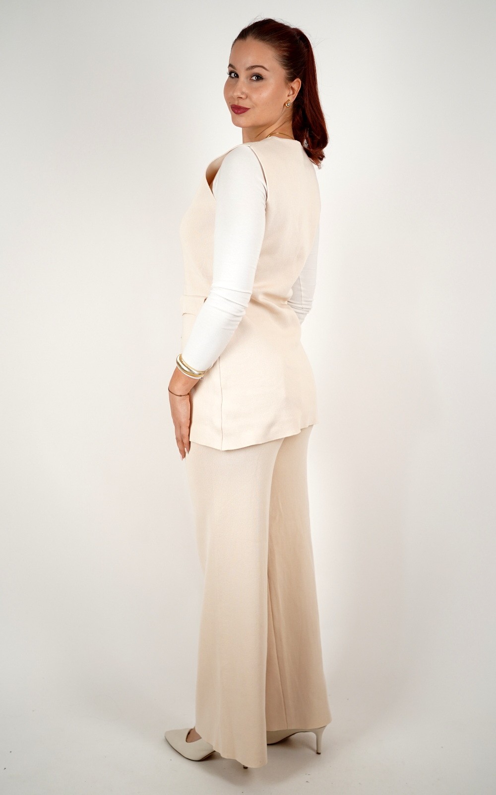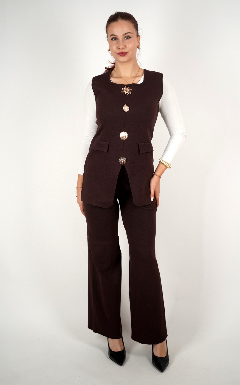 Ženski komplet s dekorativnim gumbima – prsluk + hlače – 6672
