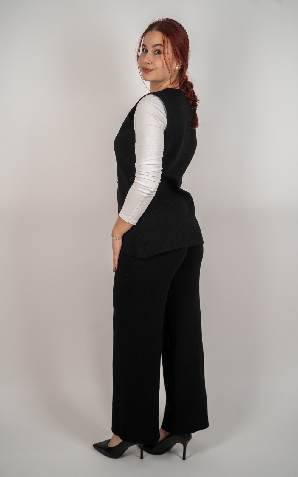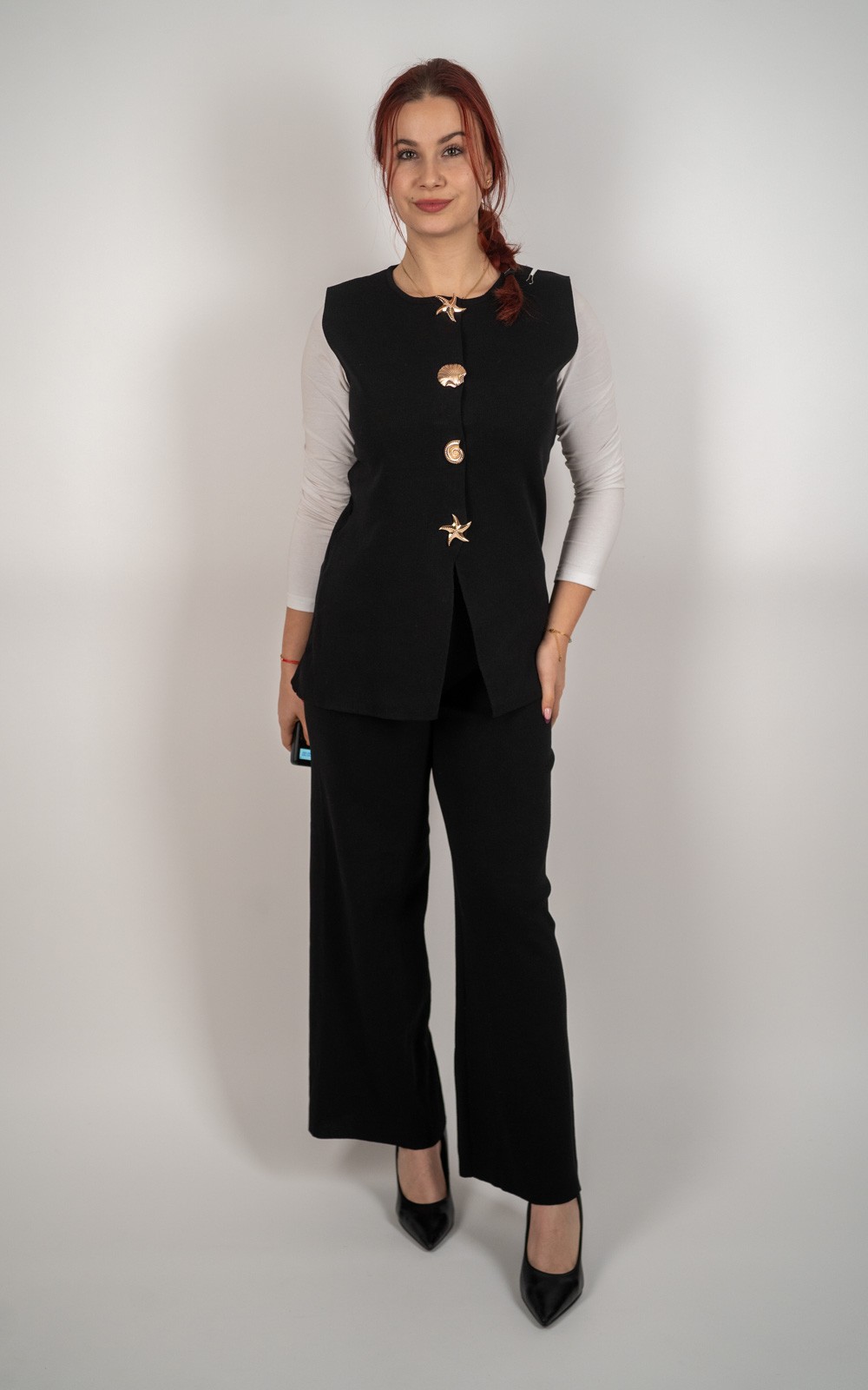 Ženski komplet s dekorativnim gumbima – prsluk + hlače – CV6673