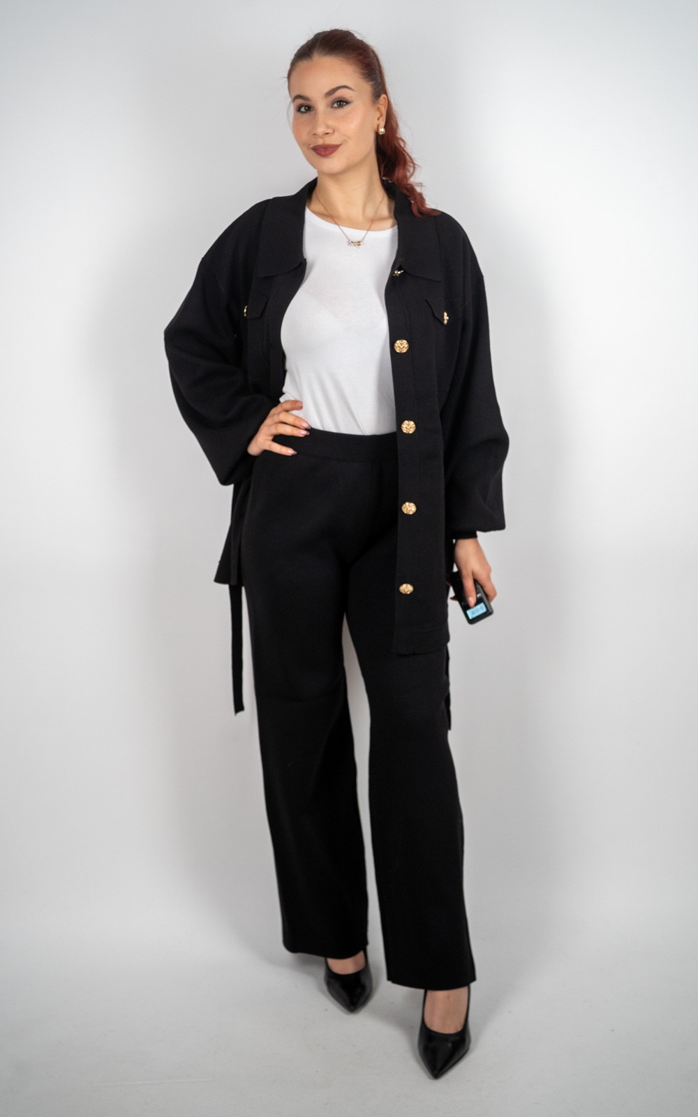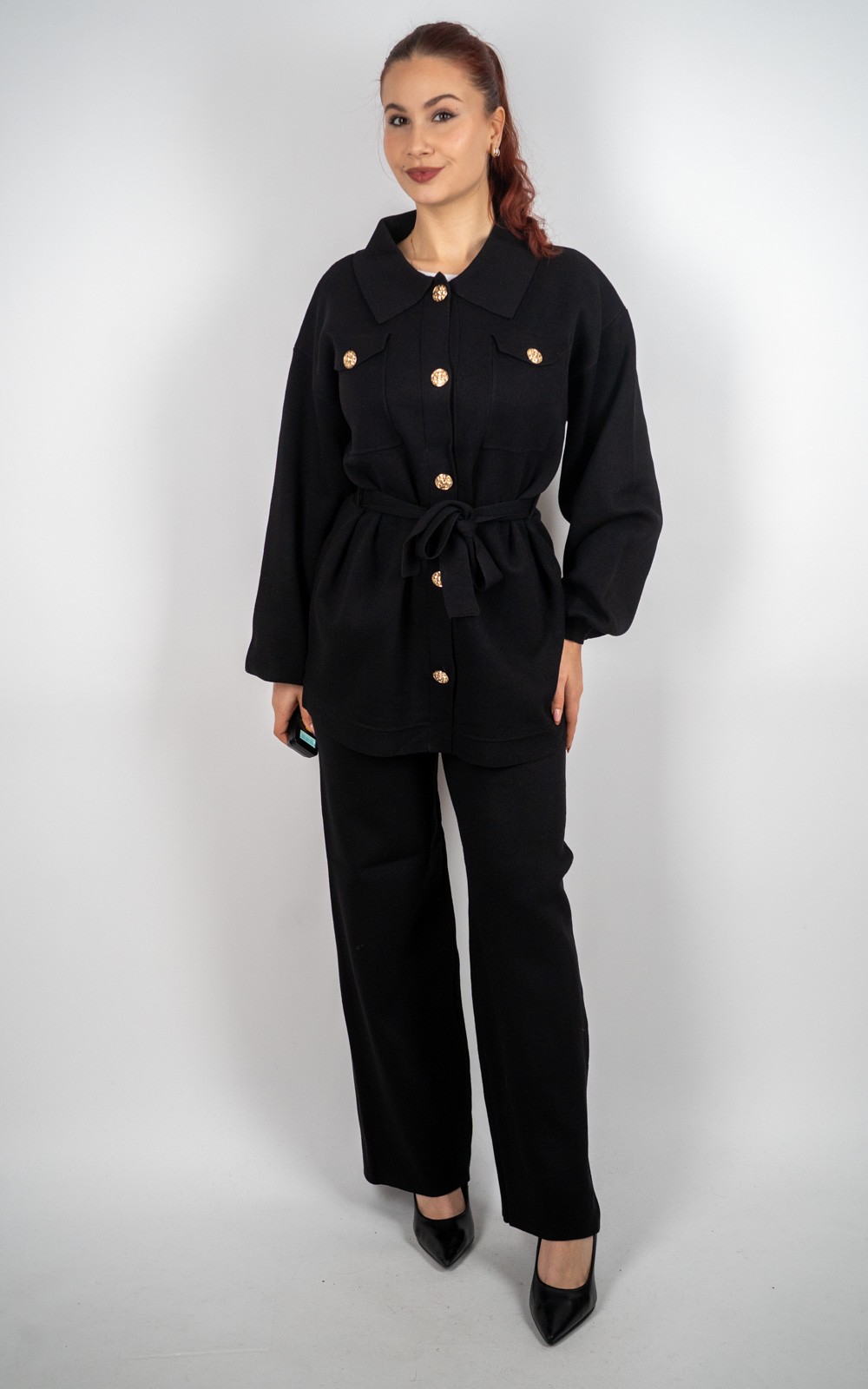 Ženski komplet s džepovima i zlatnim gumbima – vesta/košulja + hlače – W6006