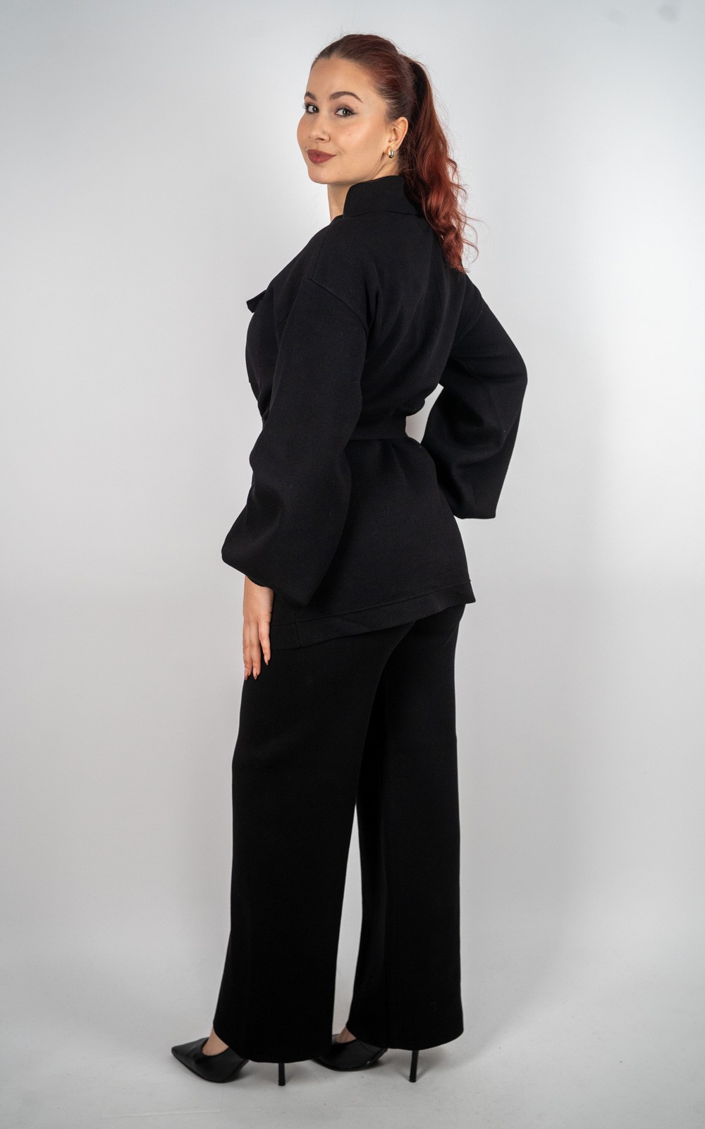 bozic10 očekuje te snižena cijena od 49.50 € za ovaj artikl u košarici.Moderan ženski dvodijelni komplet koji kombinira udobnost i stil. Sastoji se od jakne/košulje (overshirt) s predimenzioniranim rukavima, klasičnom kragnom i dekorativnim gumbima na džepovima i kopčanju. Jakna je strukirana širokim pojasom za vezanje. Hlače su ravnog kroja s širokim nogavicama. Izrađen od mekane, ugodne tkanine, idealan za elegantan dnevni ili poslovni izgled.