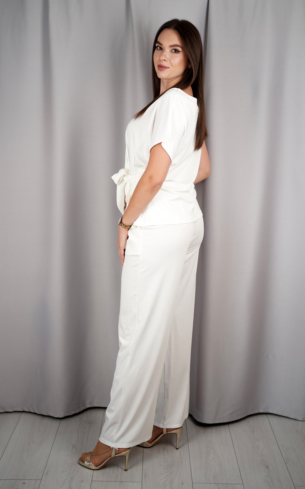 Ženski komplet s kratkim rukavima i dekorativnim čvorom – ART51112