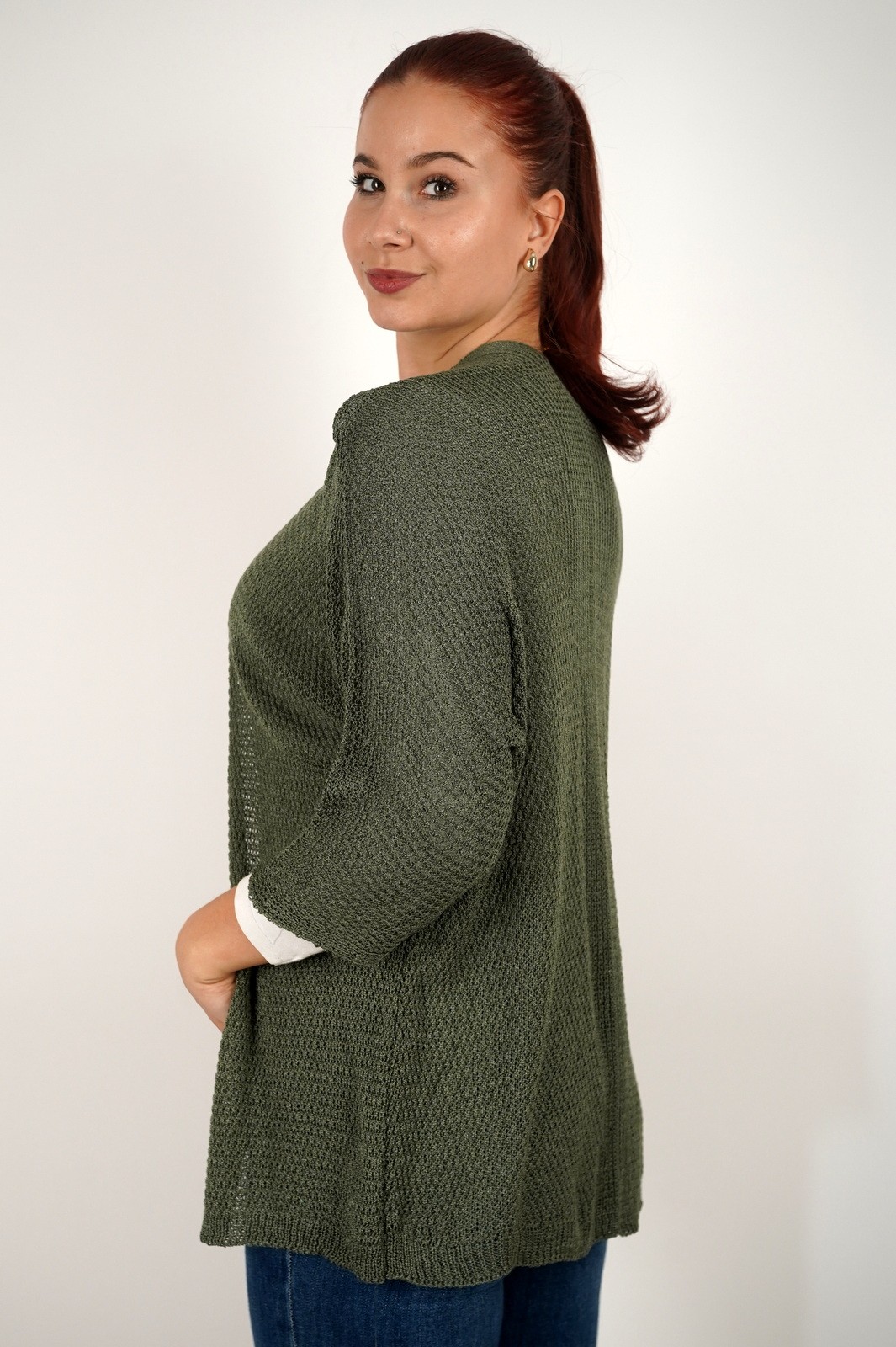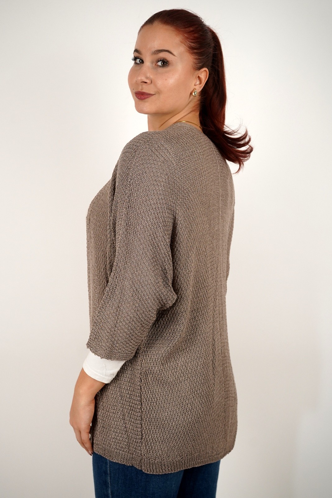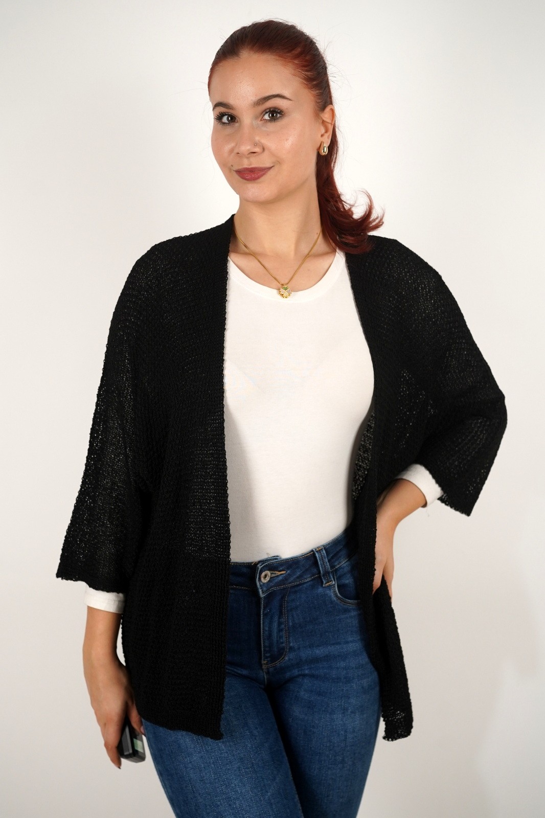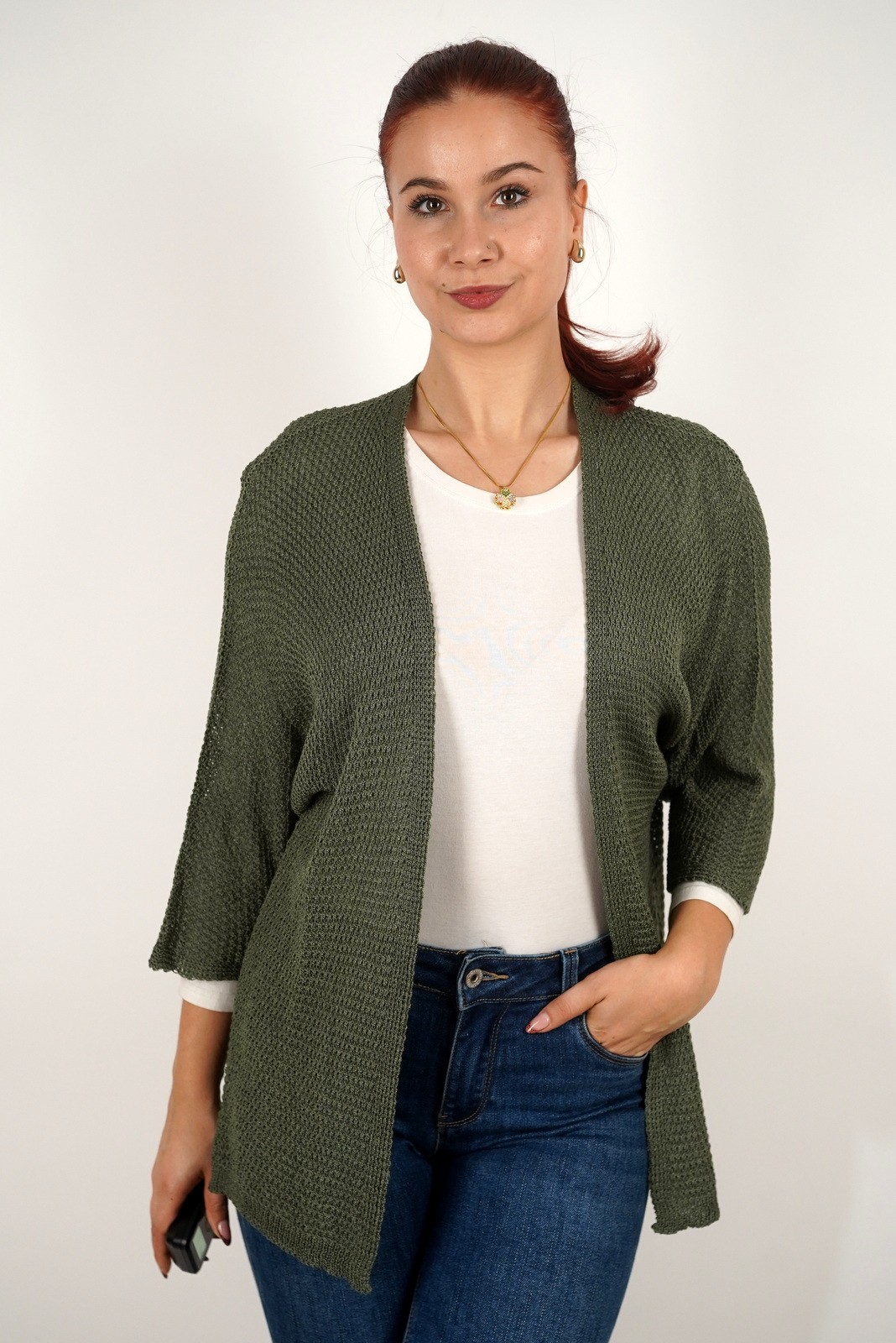 Ovaj ženski lagani kardigan izrađen je od mekanog, prozračnog pletiva koje se savršeno prilagođava svakoj odjevnoj kombinaciji. Opušteni kroj bez kopčanja pruža maksimalnu udobnost i slobodu pokreta, dok tročetvrt rukavi i decentna tekstura dodaju profinjen izgled. Idealan je za prijelazno razdoblje – možete ga nositi preko majice, košulje ili haljine za svakodnevni, ali elegantan izgled. Lako se kombinira uz traperice ili hlače, a zbog lagane strukture odličan je izbor i za slojevito odijevanje u svakoj sezoni.