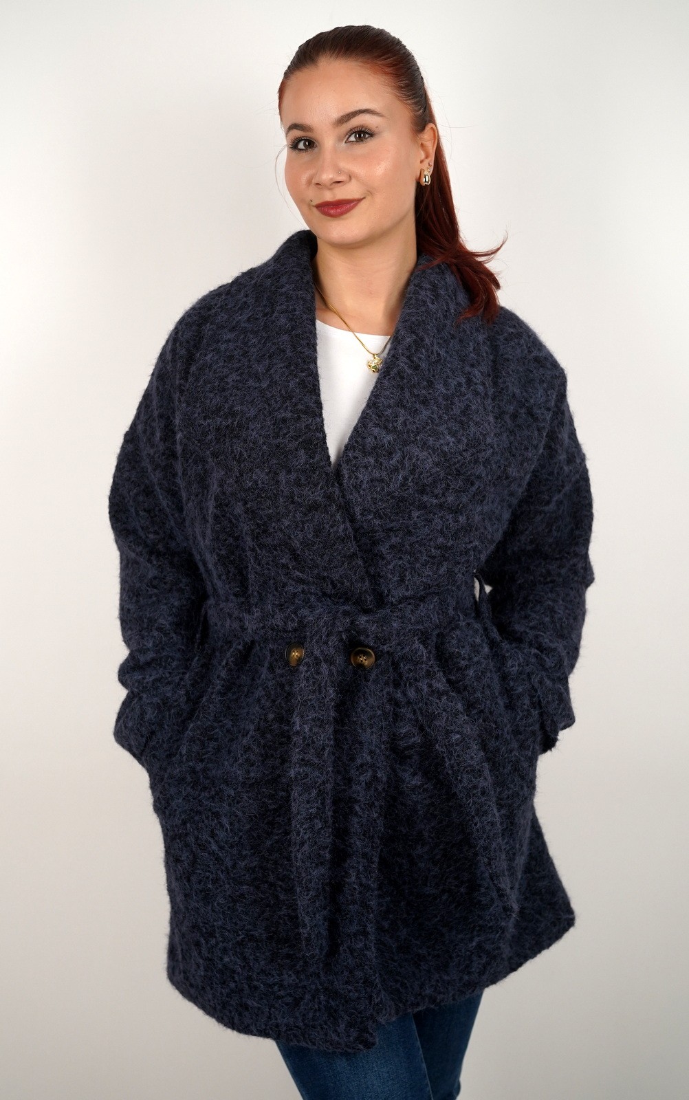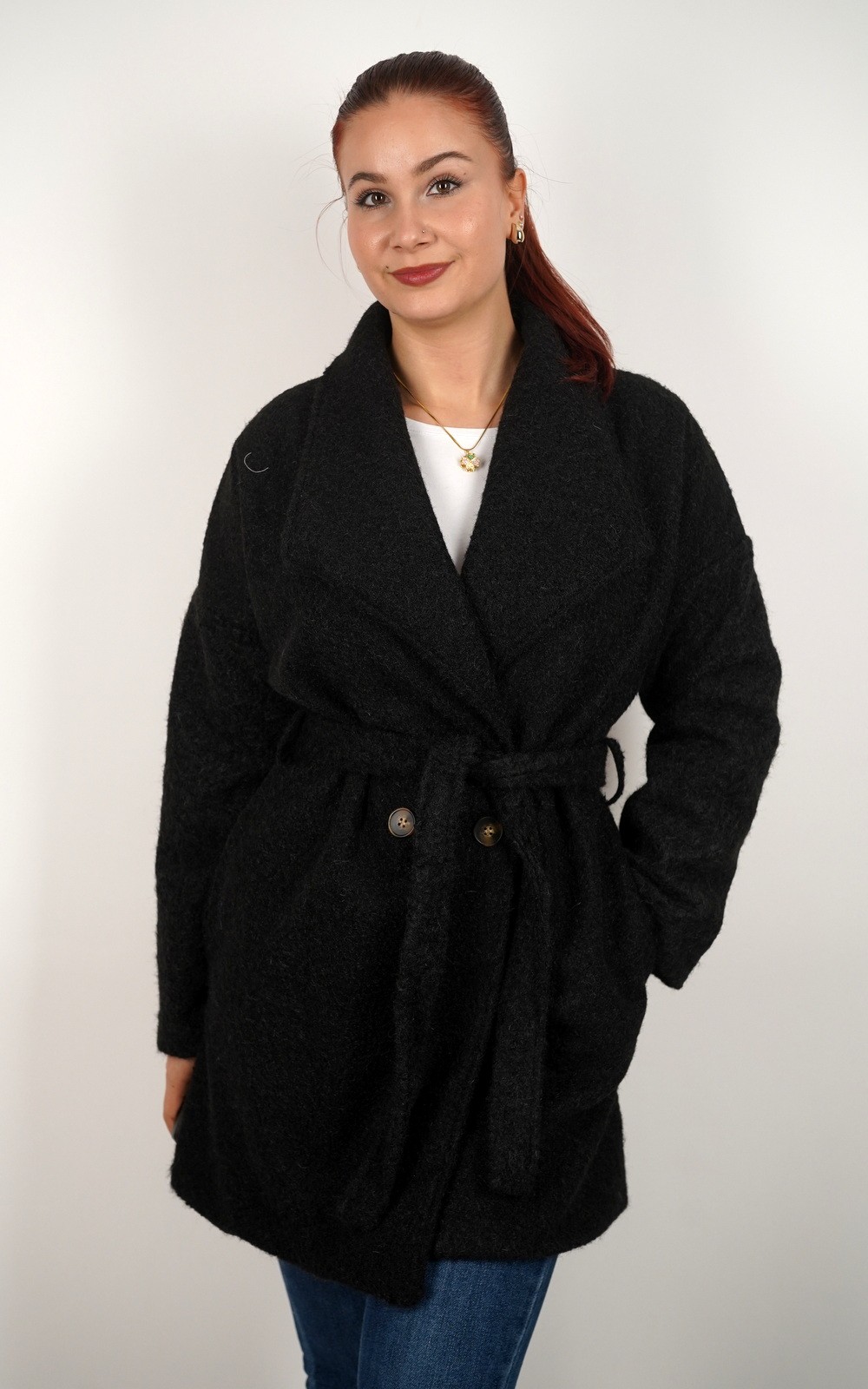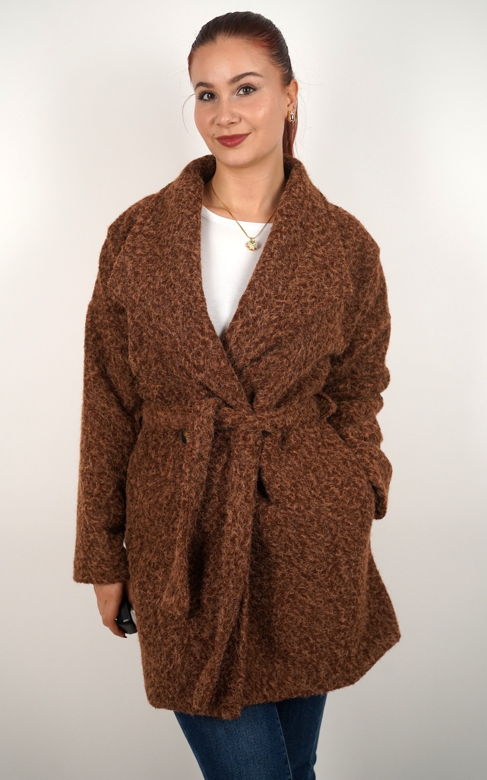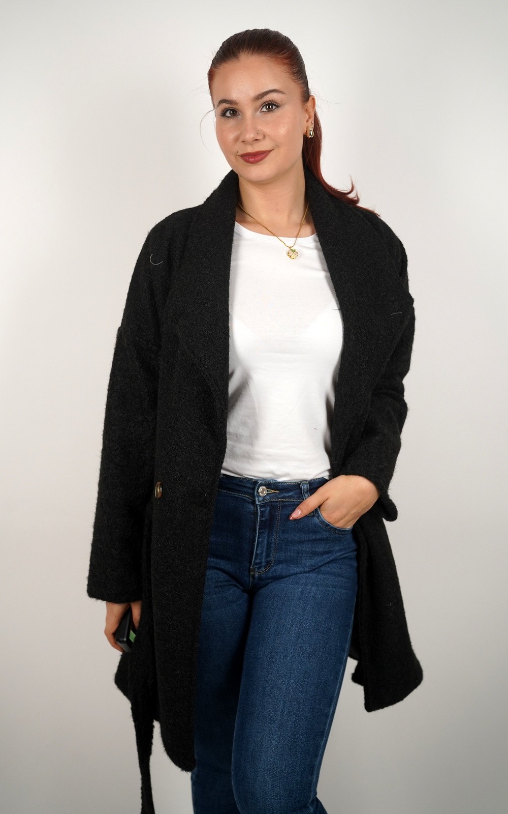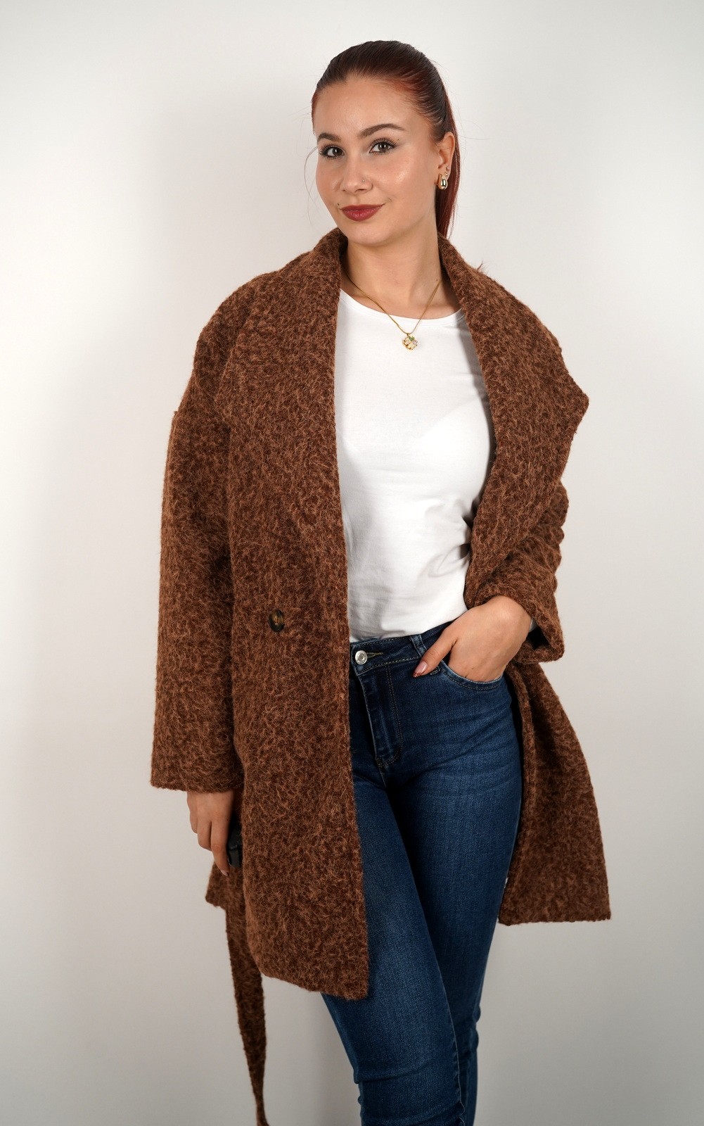 Ženski mekani kaput s džepovima i vezicom – 89788