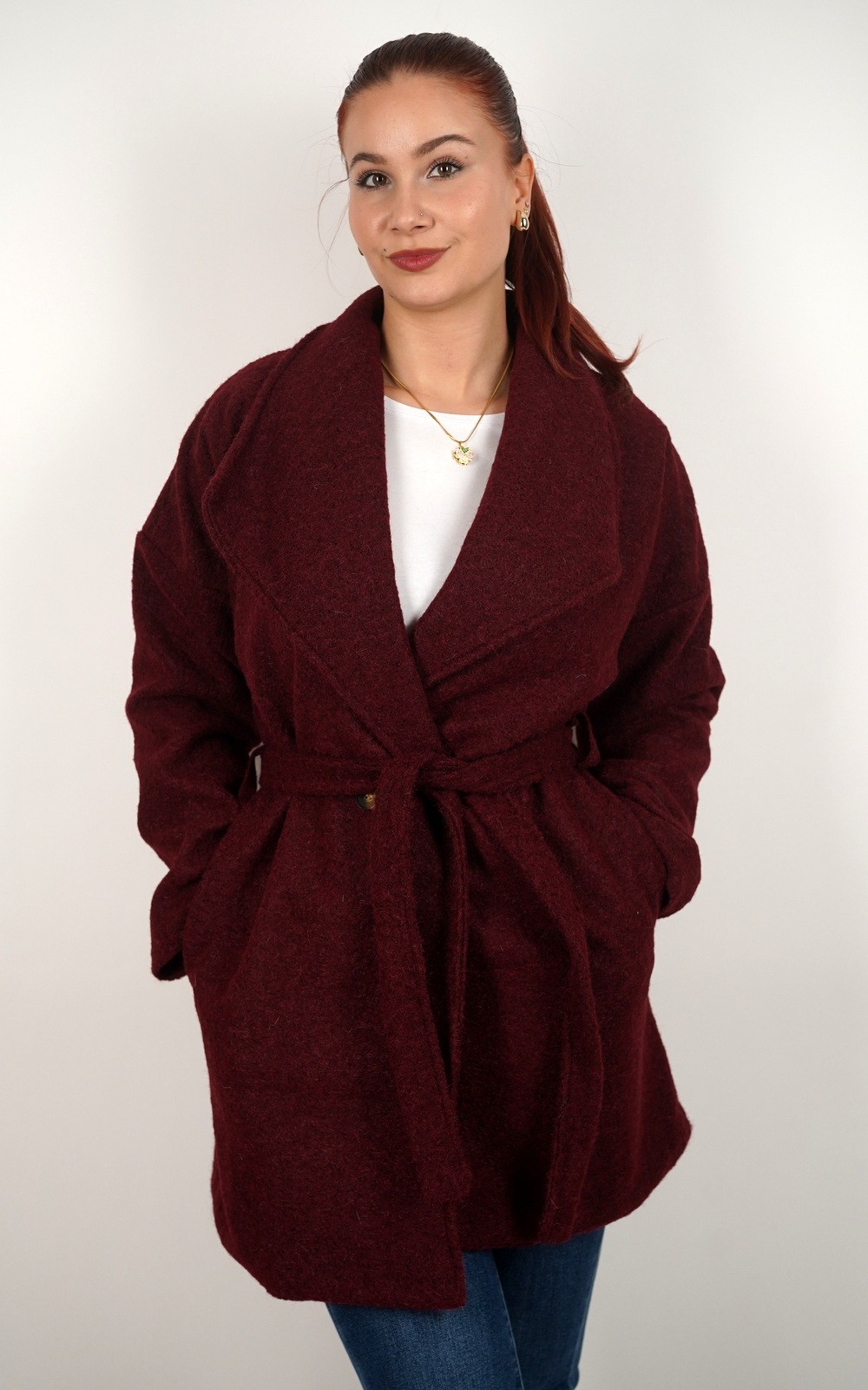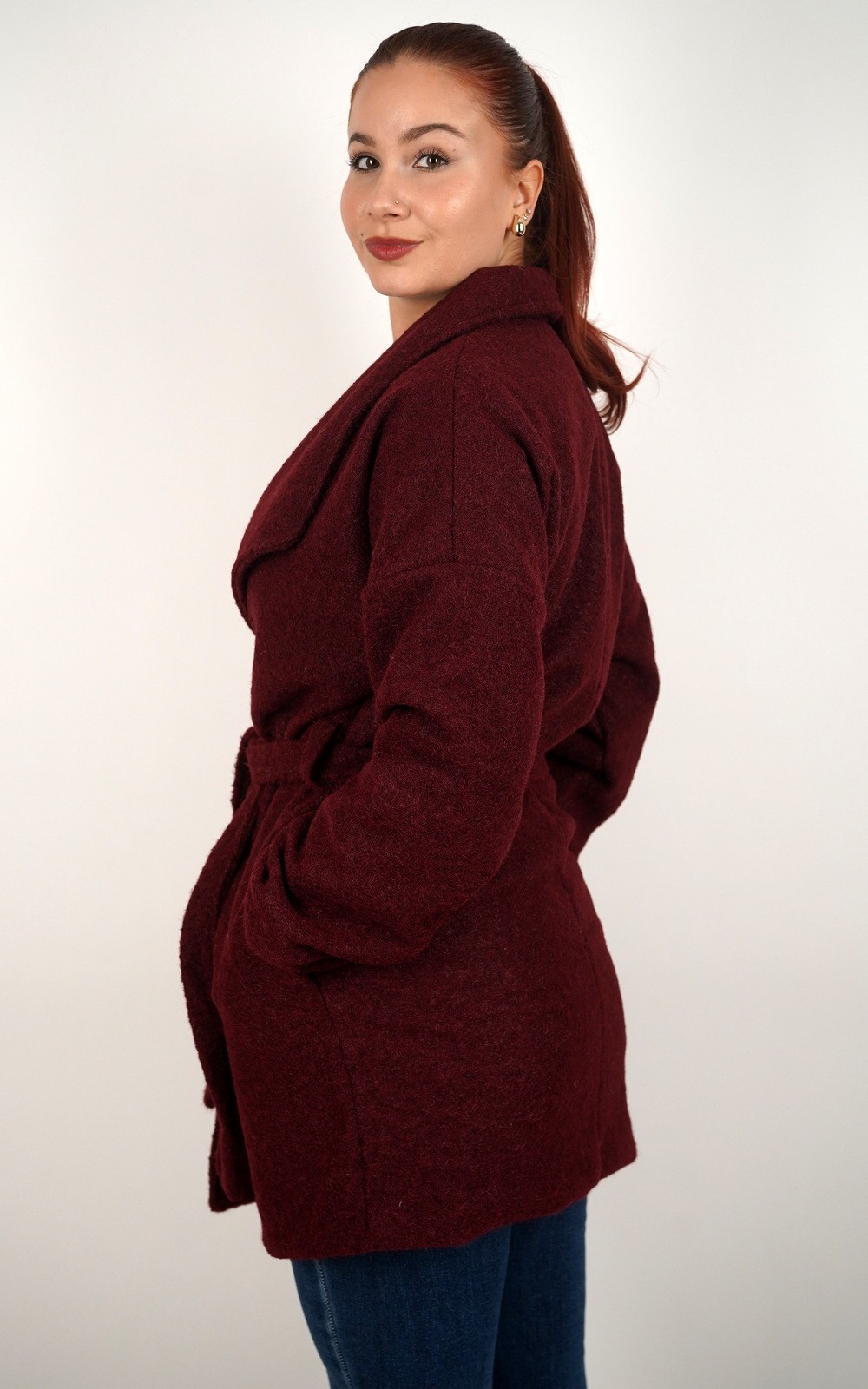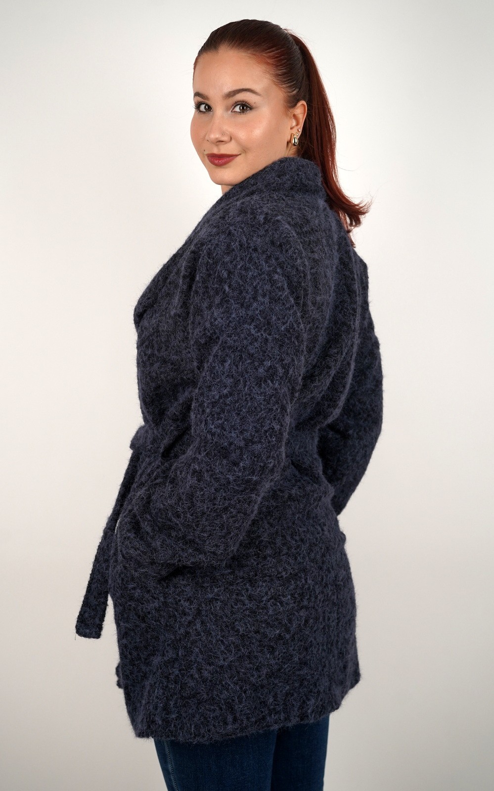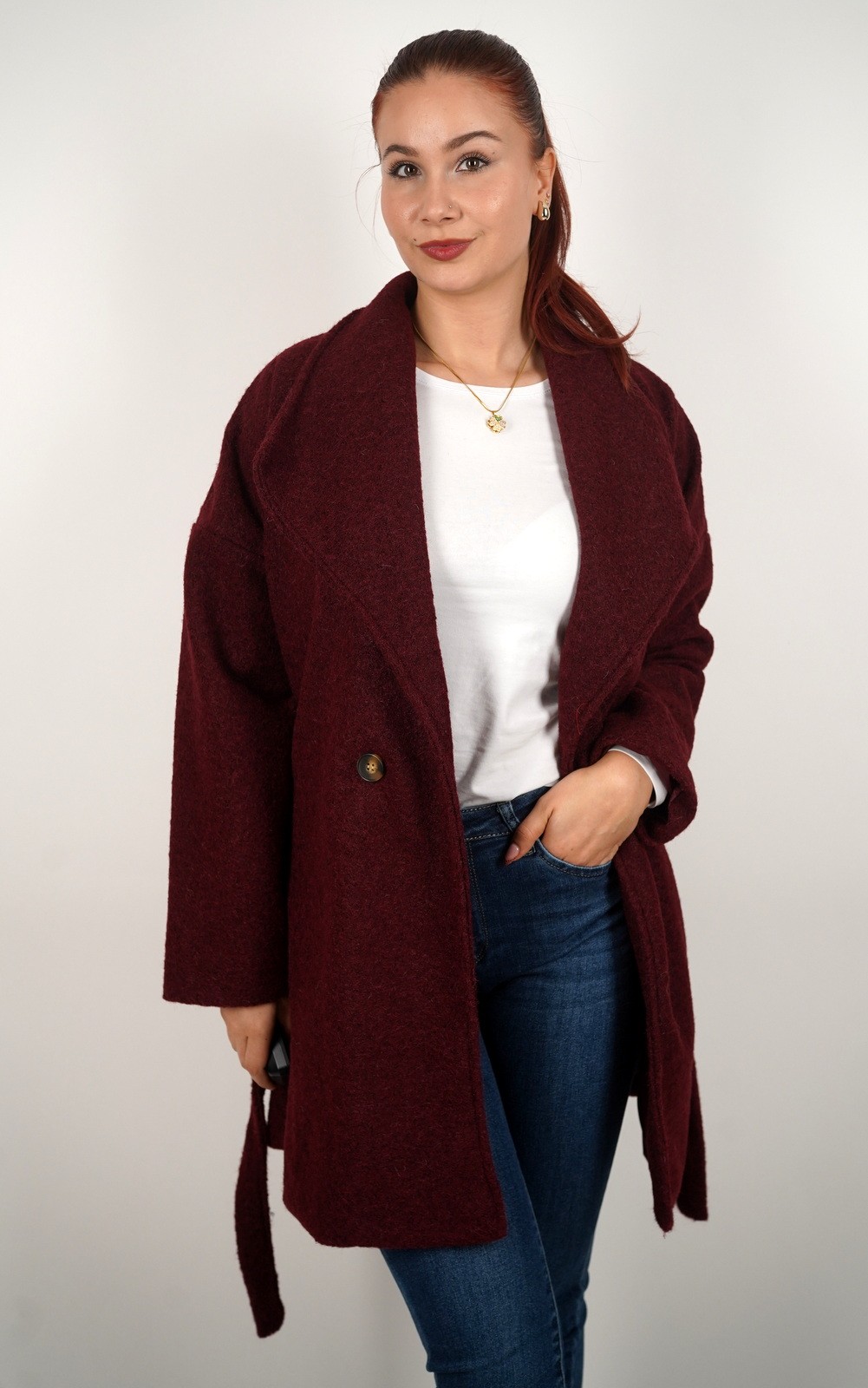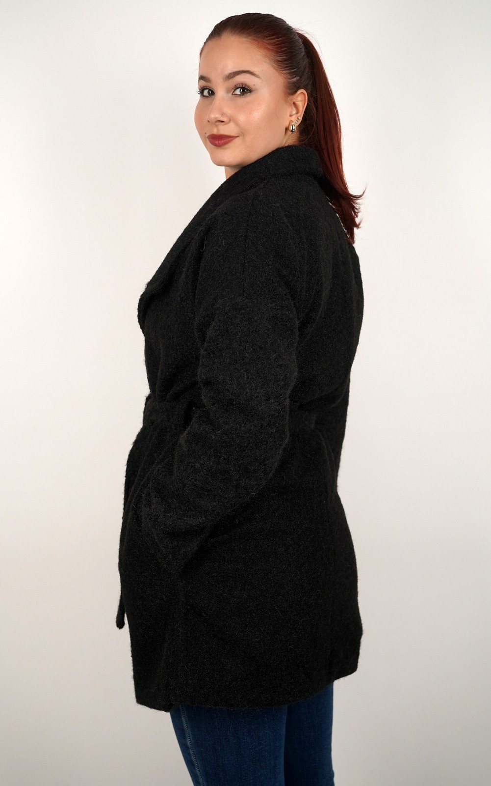 Ženski mekani kaput s džepovima i vezicom – 89788