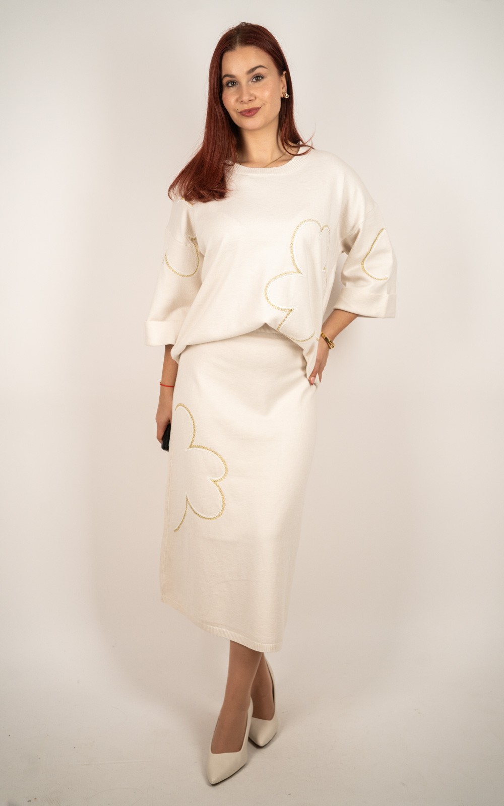 Ženski oversized pleteni komplet s uzorkom cvijeta – 8144