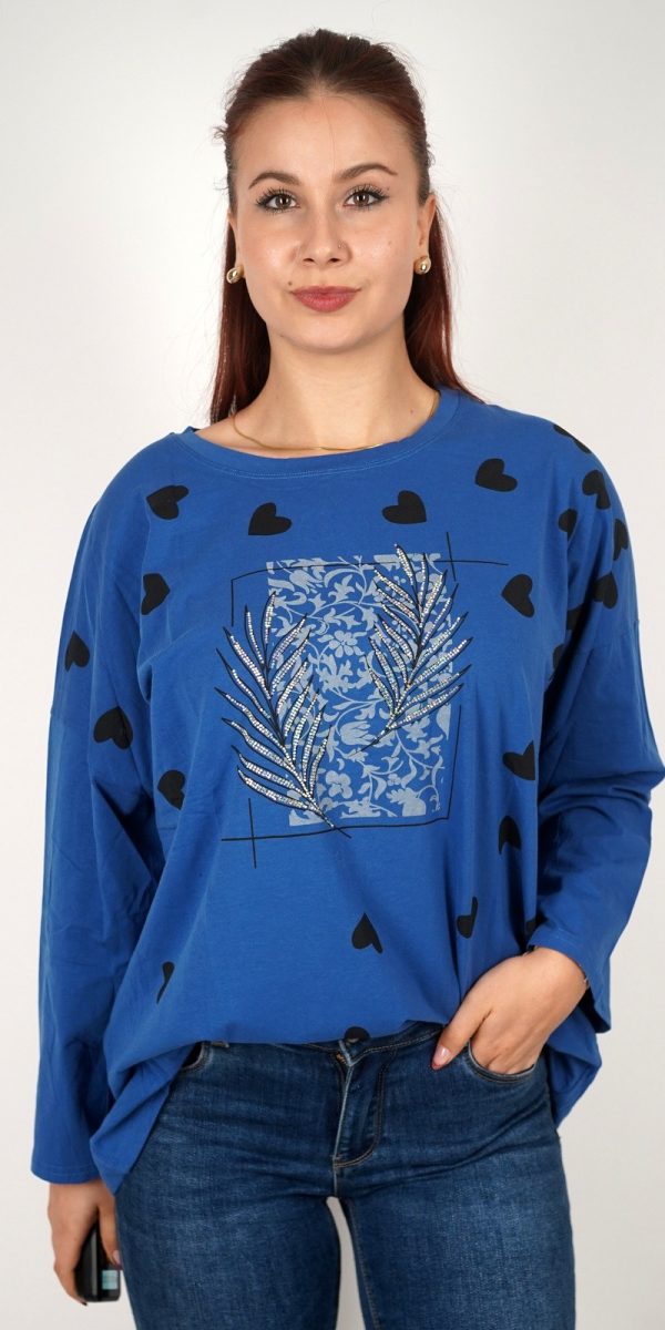 kolekcijaŽenska pamučna majica s uzorkom srca i sjajnim detaljem palminog lista – 17-070