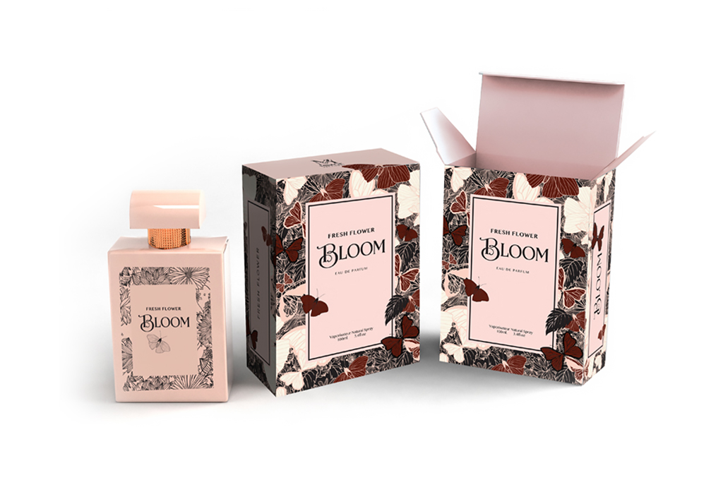 - Bočica i pakiranje: Jednostavna, kvadratna bočica u nježnoj ružičastoj boji s poklopcem boje ružičastog zlata. Pakiranje je ukrašeno detaljnim ilustracijama cvijeća i leptira, što naglašava botaničku inspiraciju.