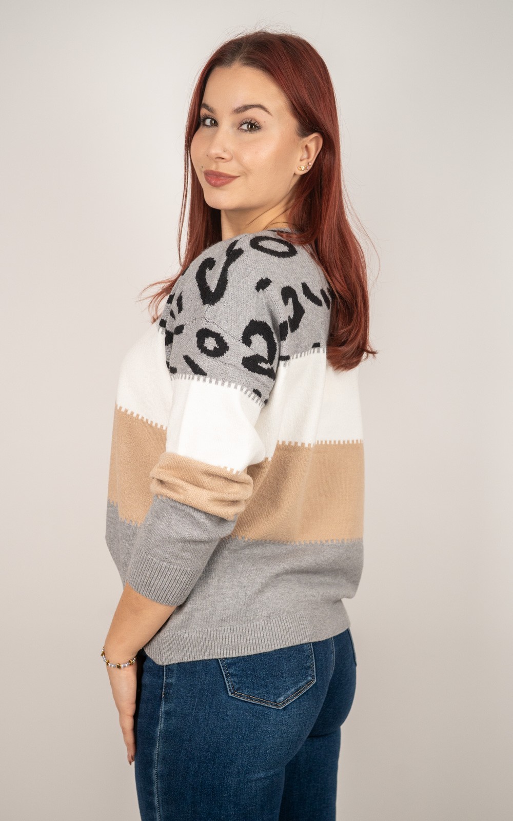 Ženski pleteni pulover s animal detaljem i prugama – u veličinama – 85735