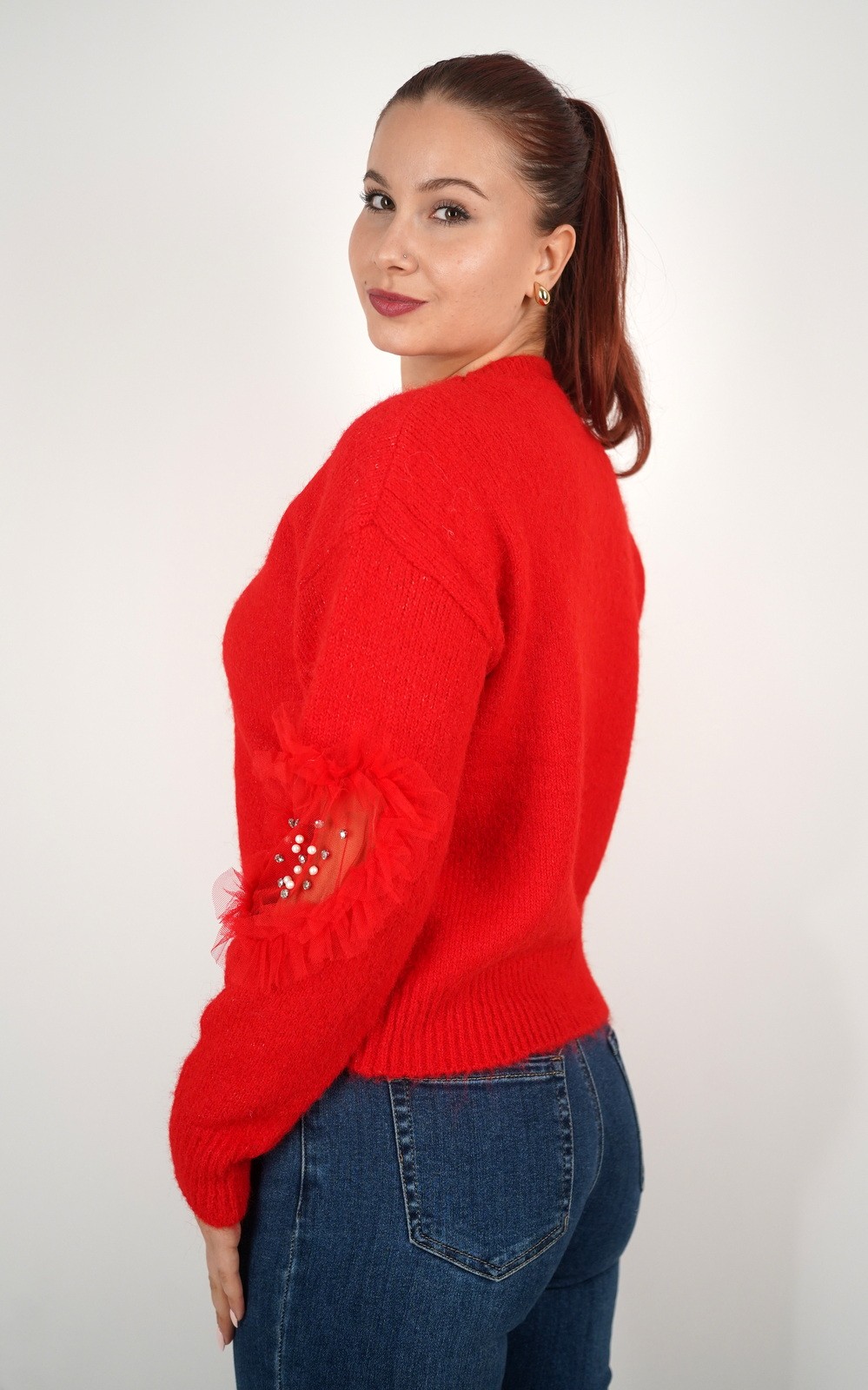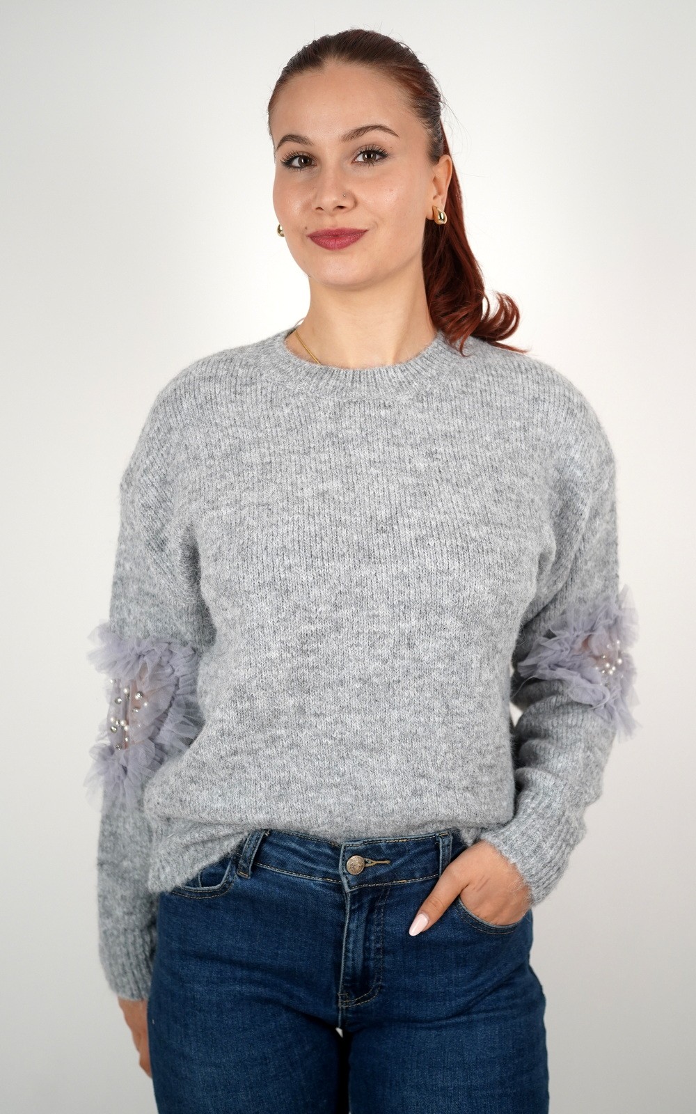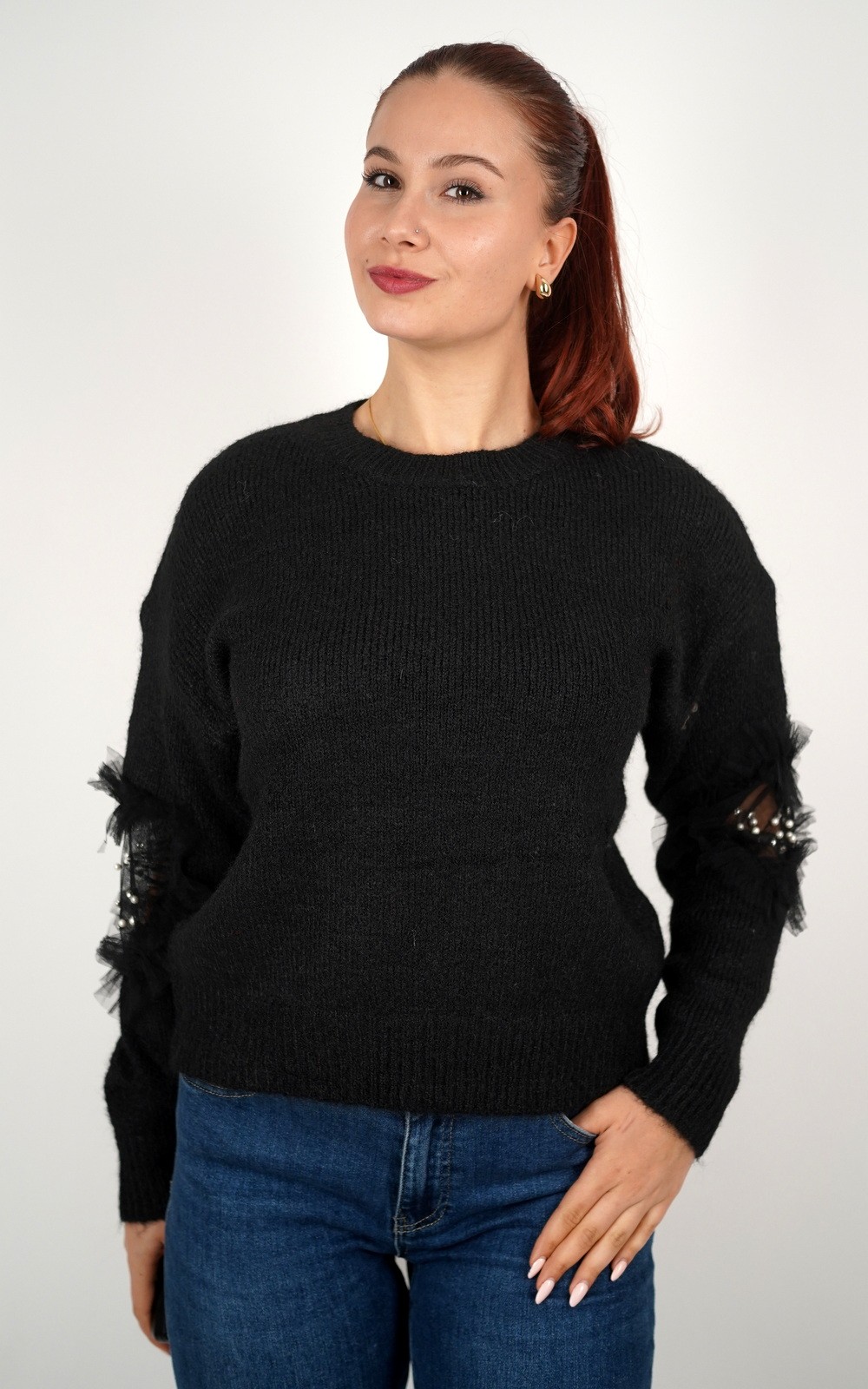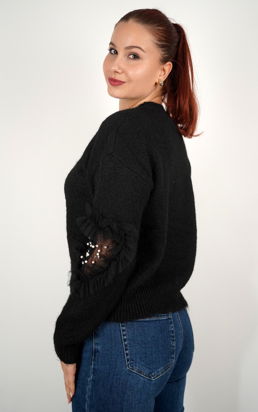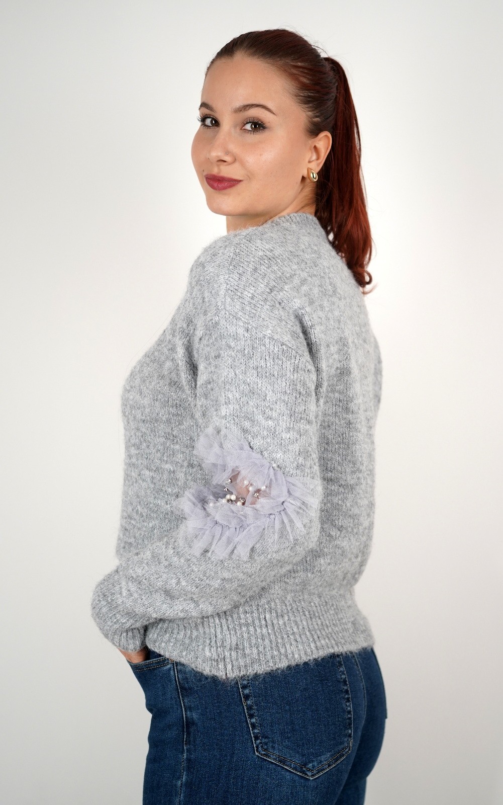 Ženski pleteni pulover s ukrasnim detaljima na rukavima – 12228