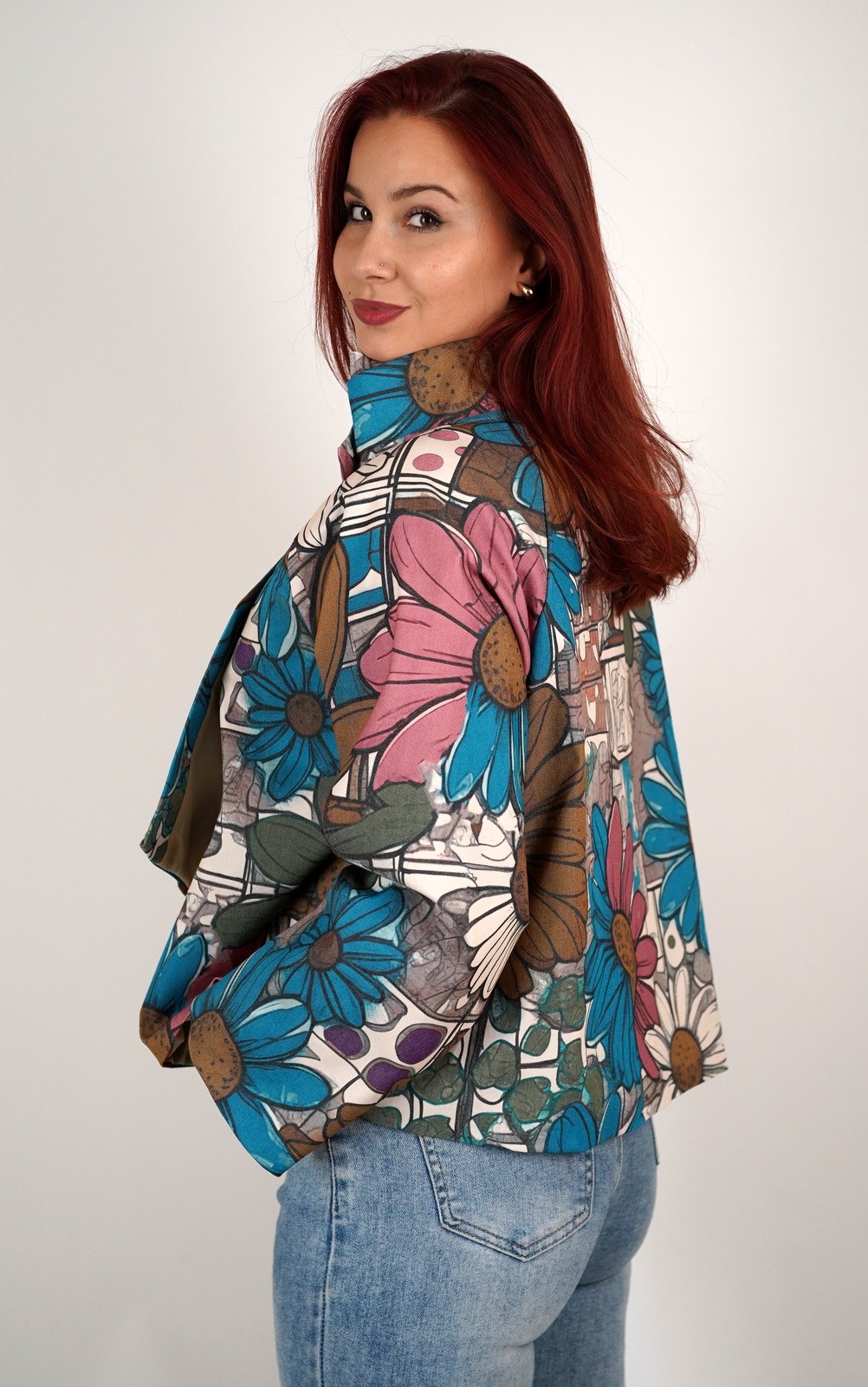 Ženski sako s asimetričnim preklopom i upečatljivim umjetničkim printom idealan je izbor za žene koje vole unikatne i moderne komade u svom ormaru. Poseban kroj s preklopom na gumb daje ovom modelu dozu elegancije i sofisticiranosti, dok print u živopisnom dizajnu unosi dozu razigranosti i originalnosti. Savršeno pristaje uz traperice za casual look, ali i uz suknju ili elegantne hlače za posebne prilike. Udoban i atraktivan, ovaj sako je pravi izbor za žene koje žele istaknuti svoj stil.