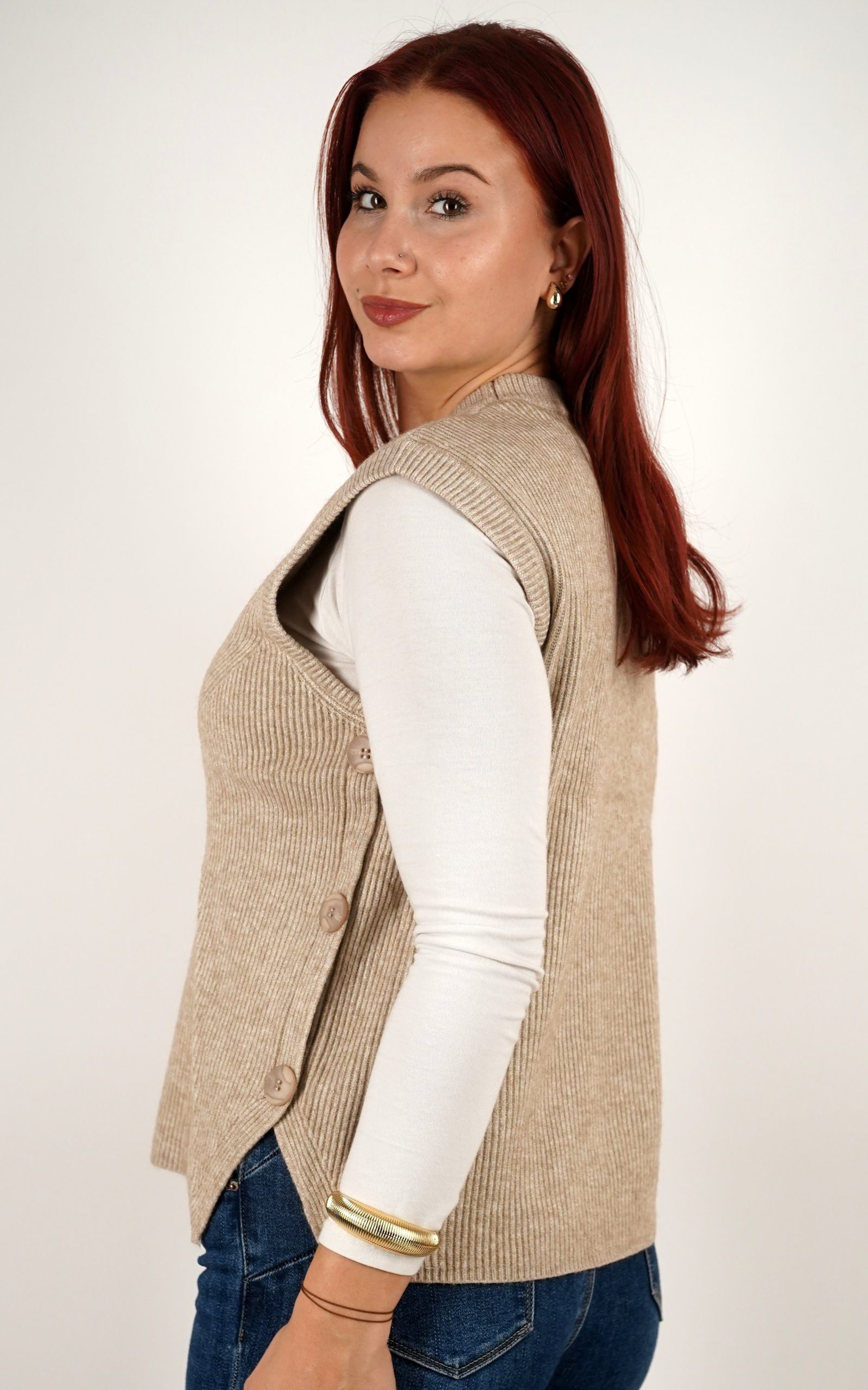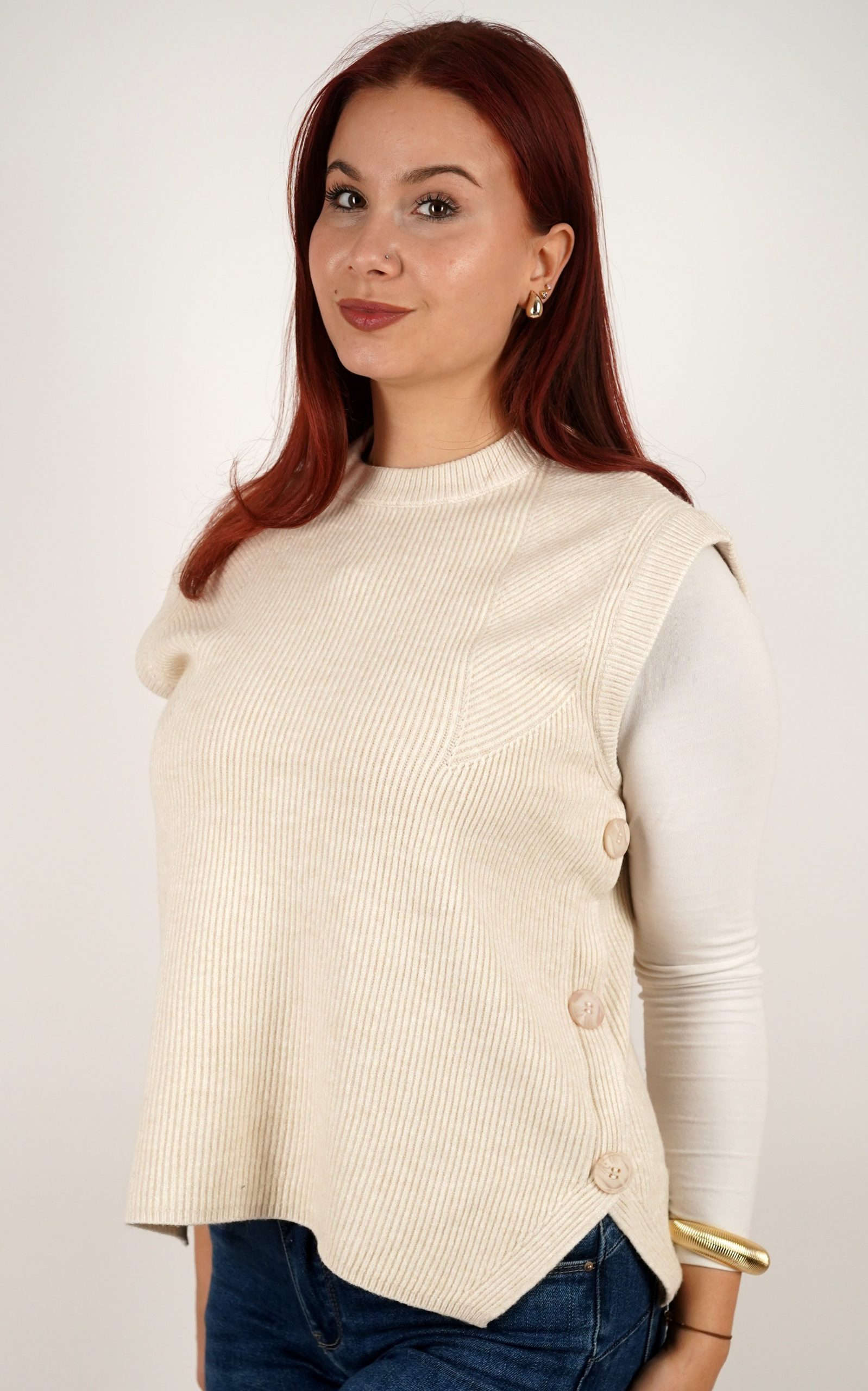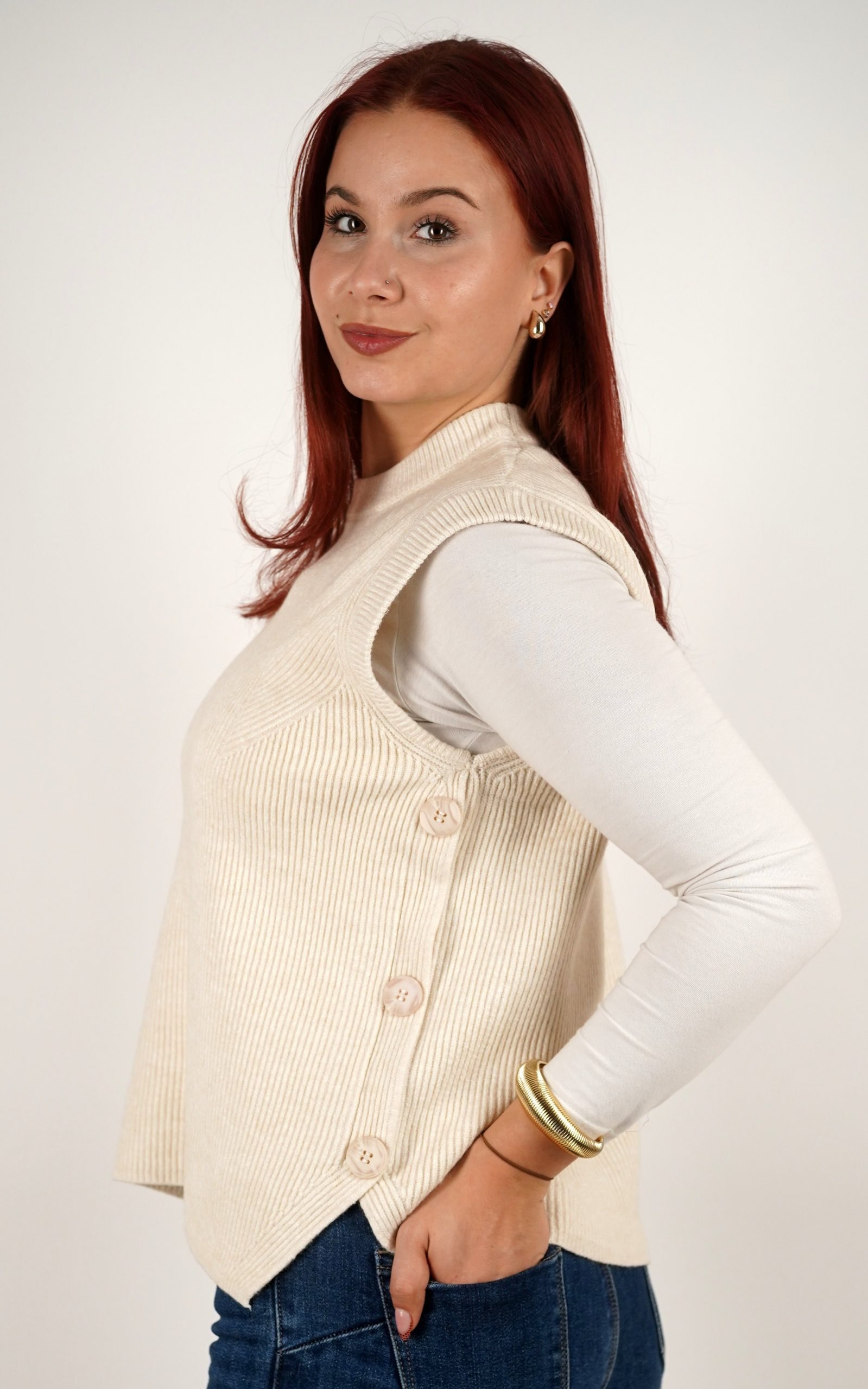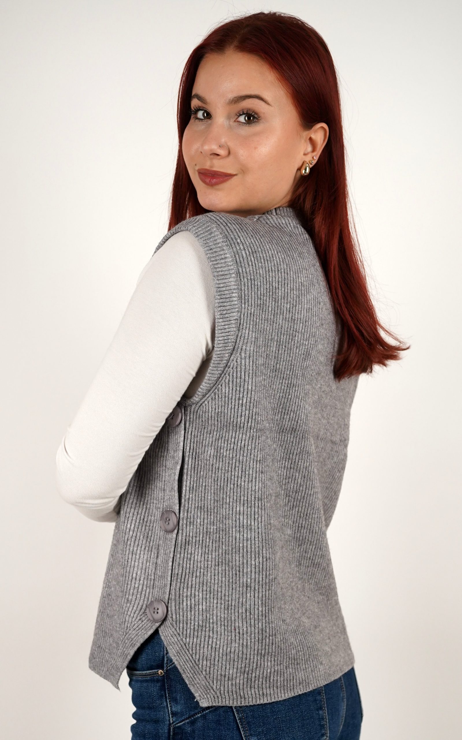 Ženski prsluk od rebrastog pletiva s gumbima na bočnim stranama – u veličinama – 3971
