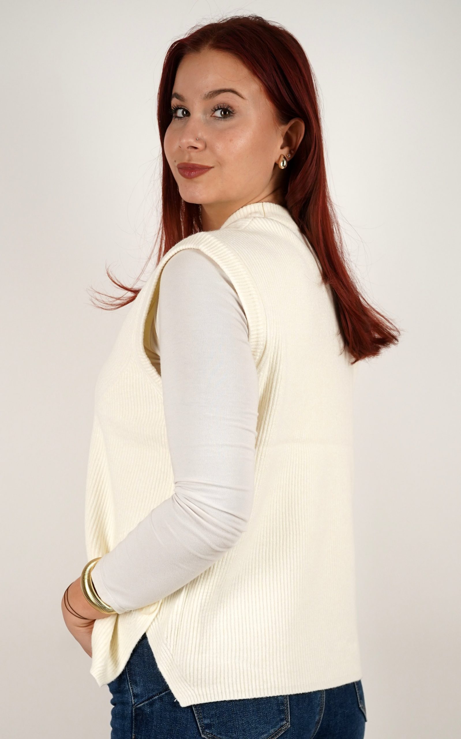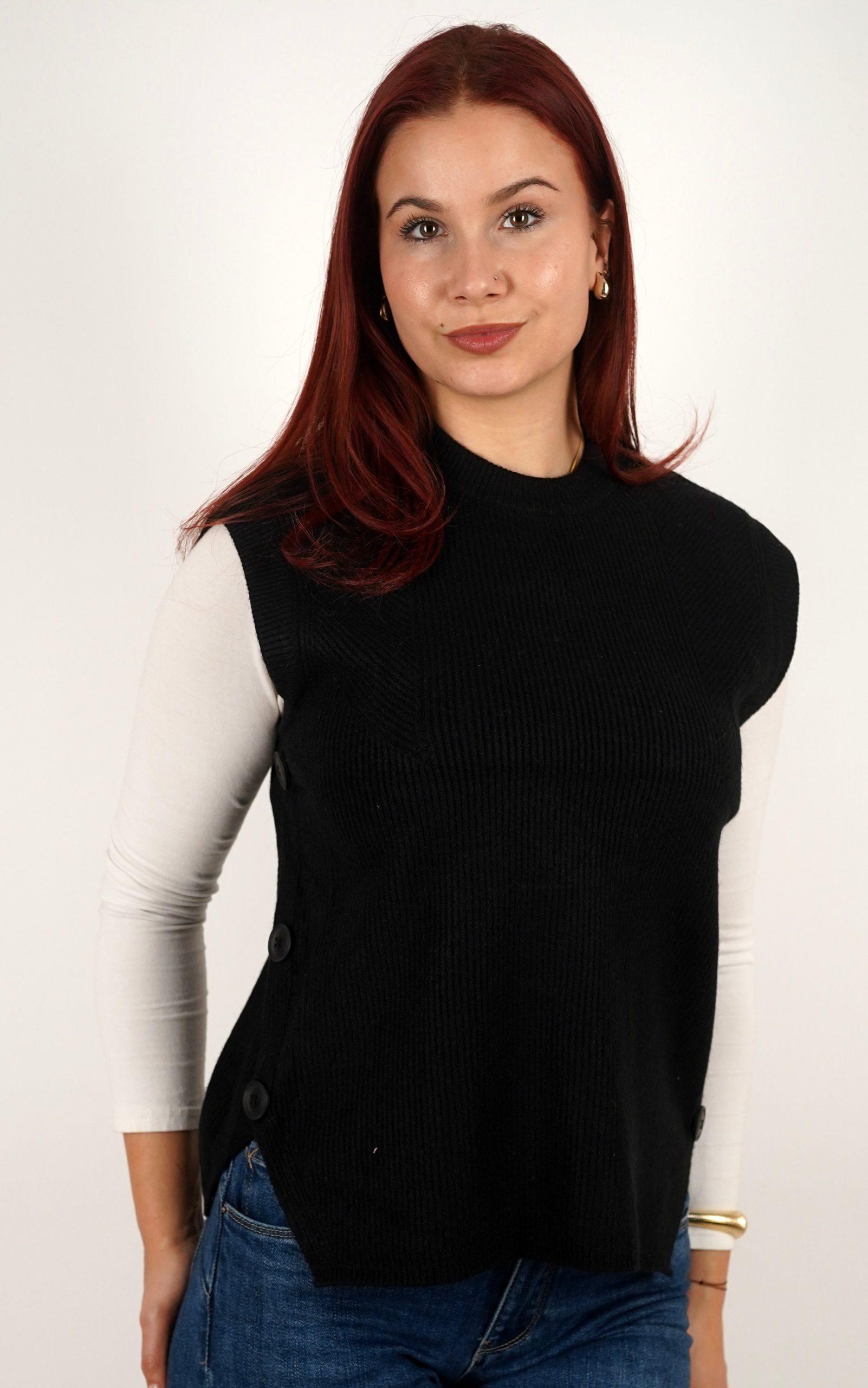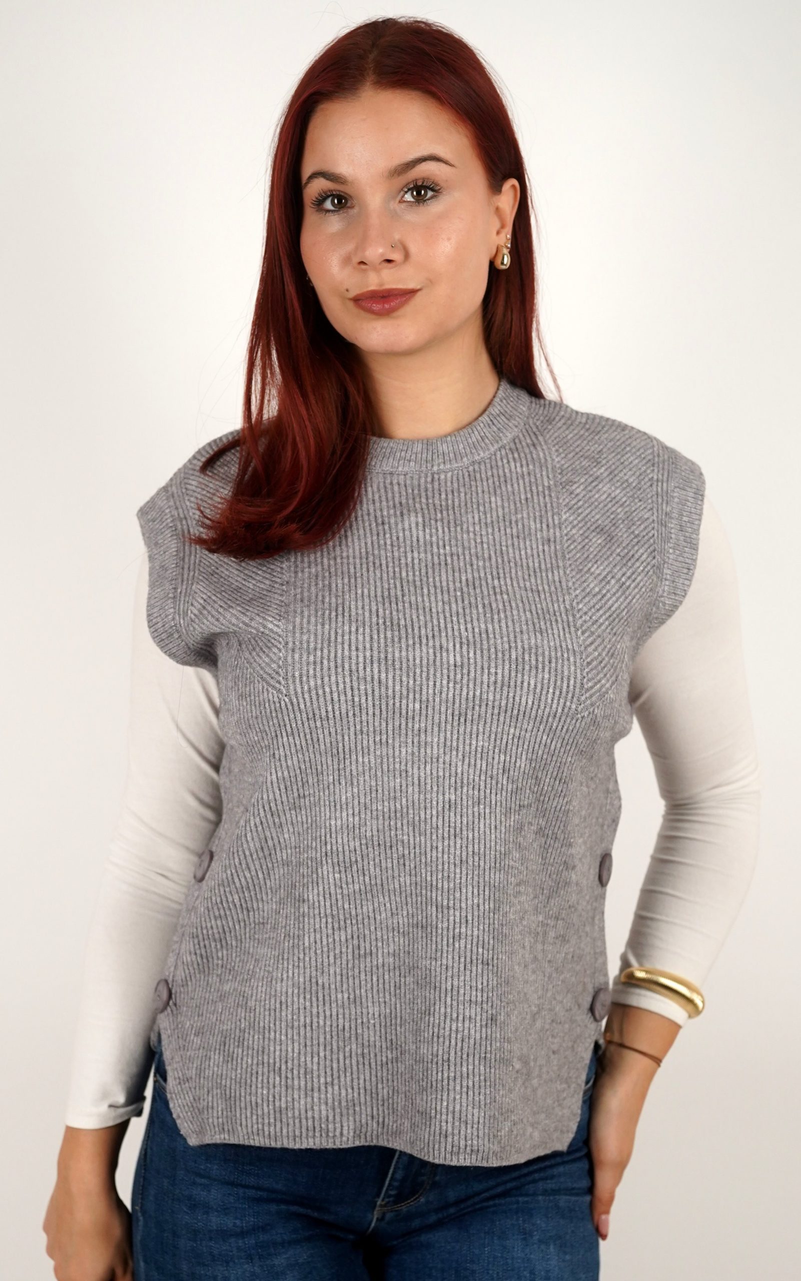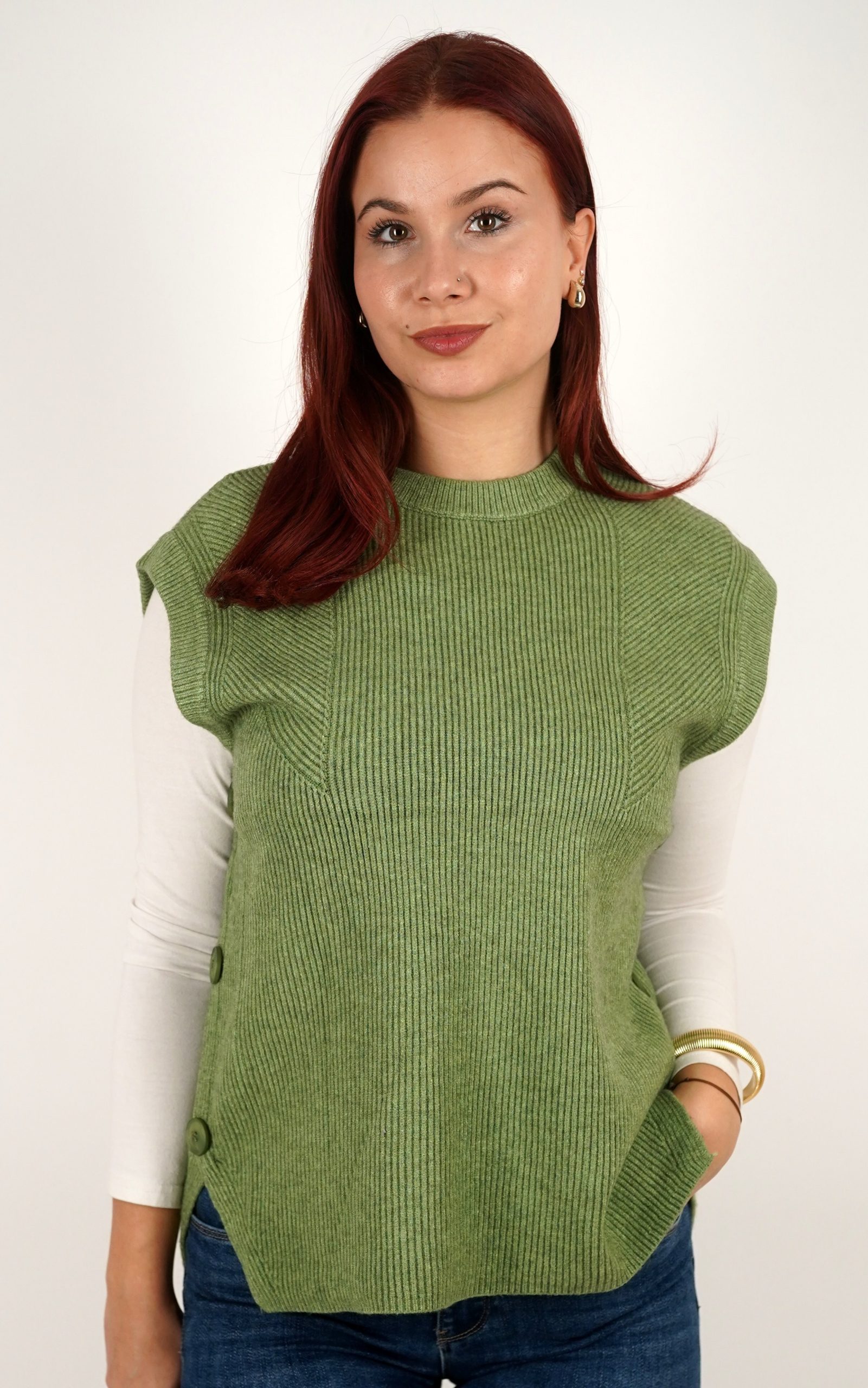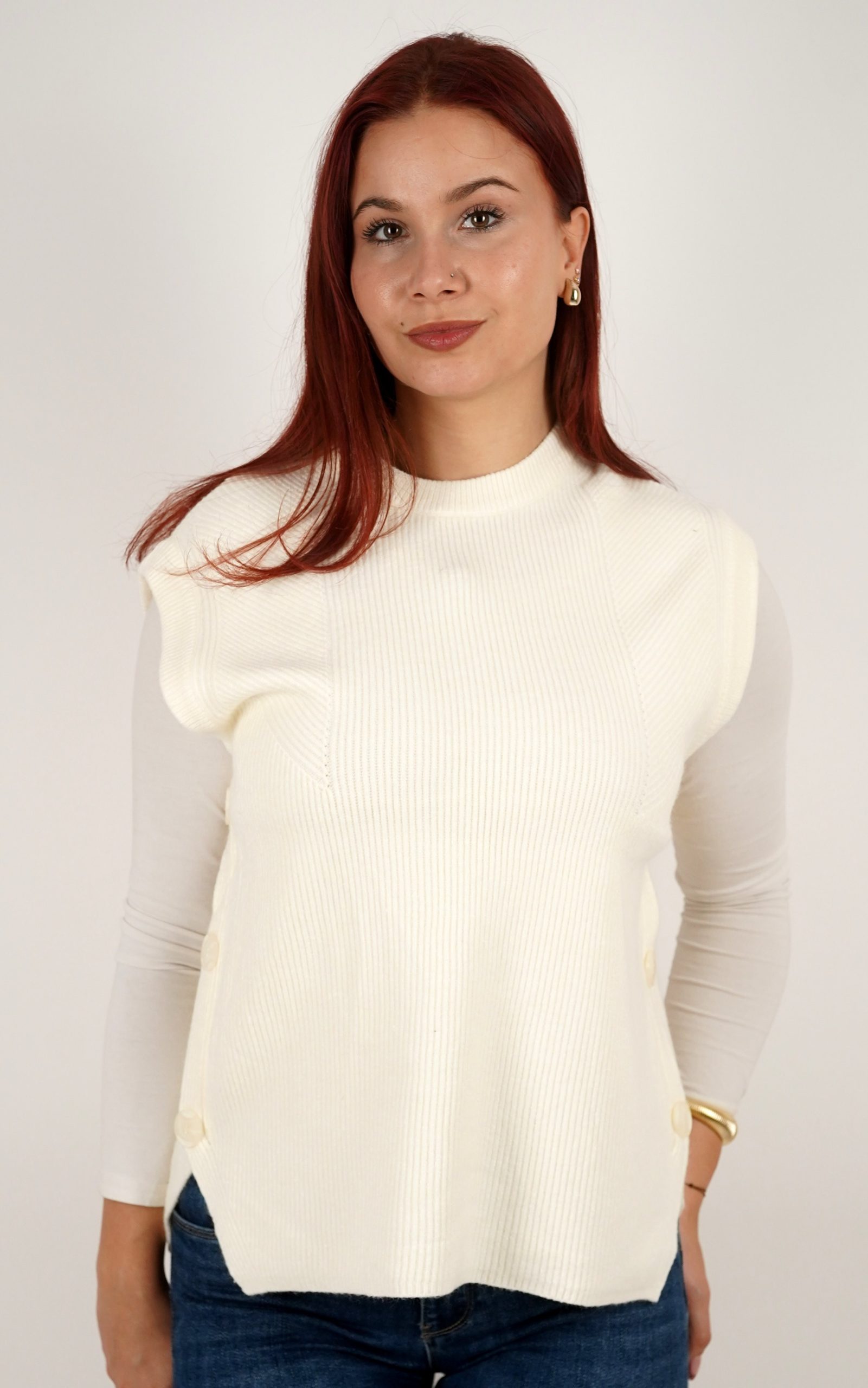 Ženski prsluk od rebrastog pletiva s gumbima na bočnim stranama – u veličinama – 3971