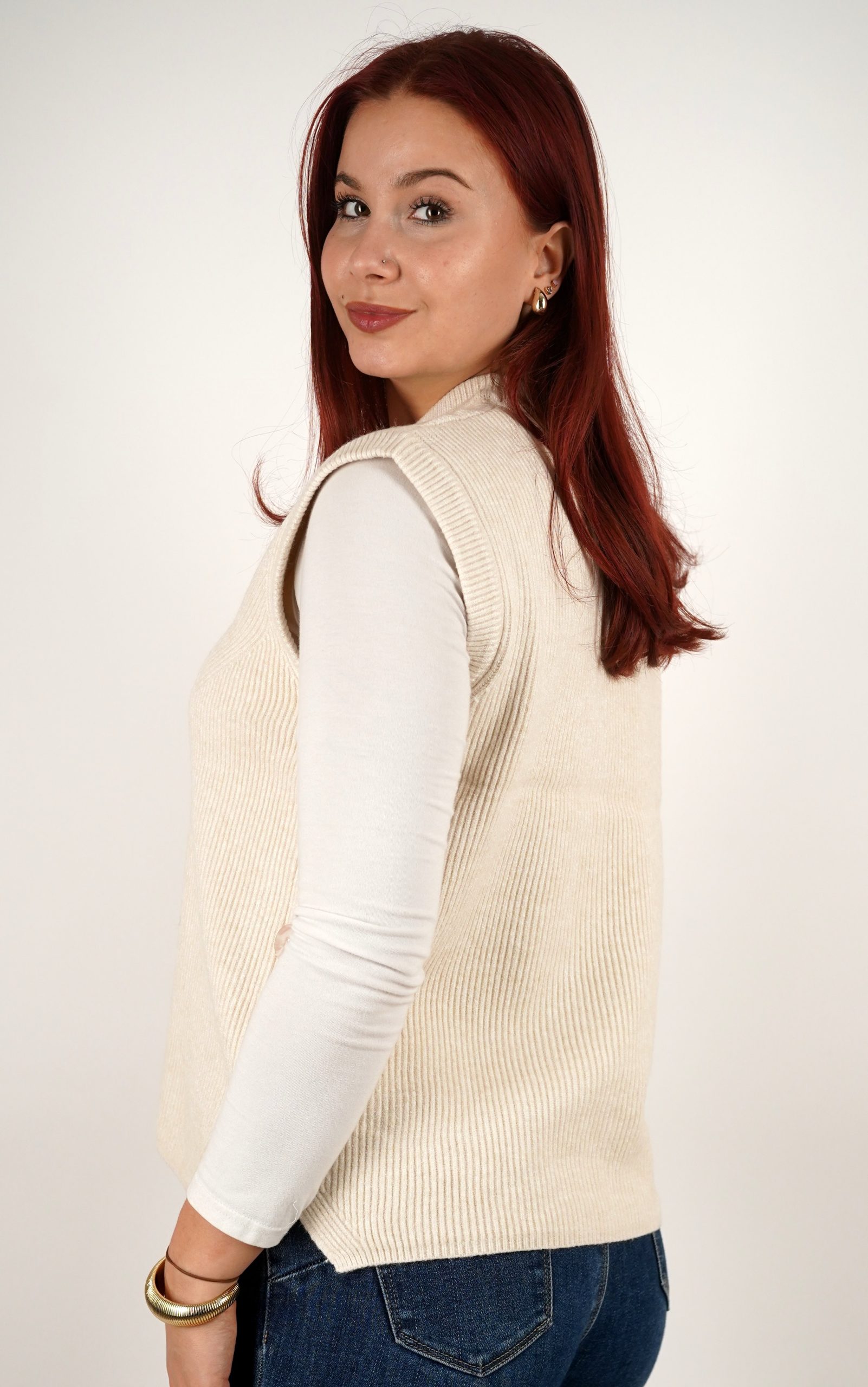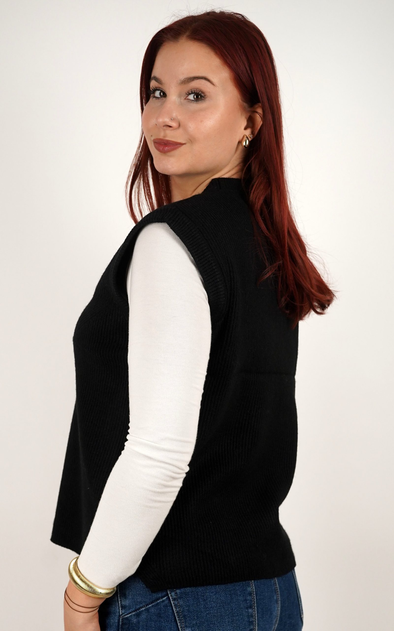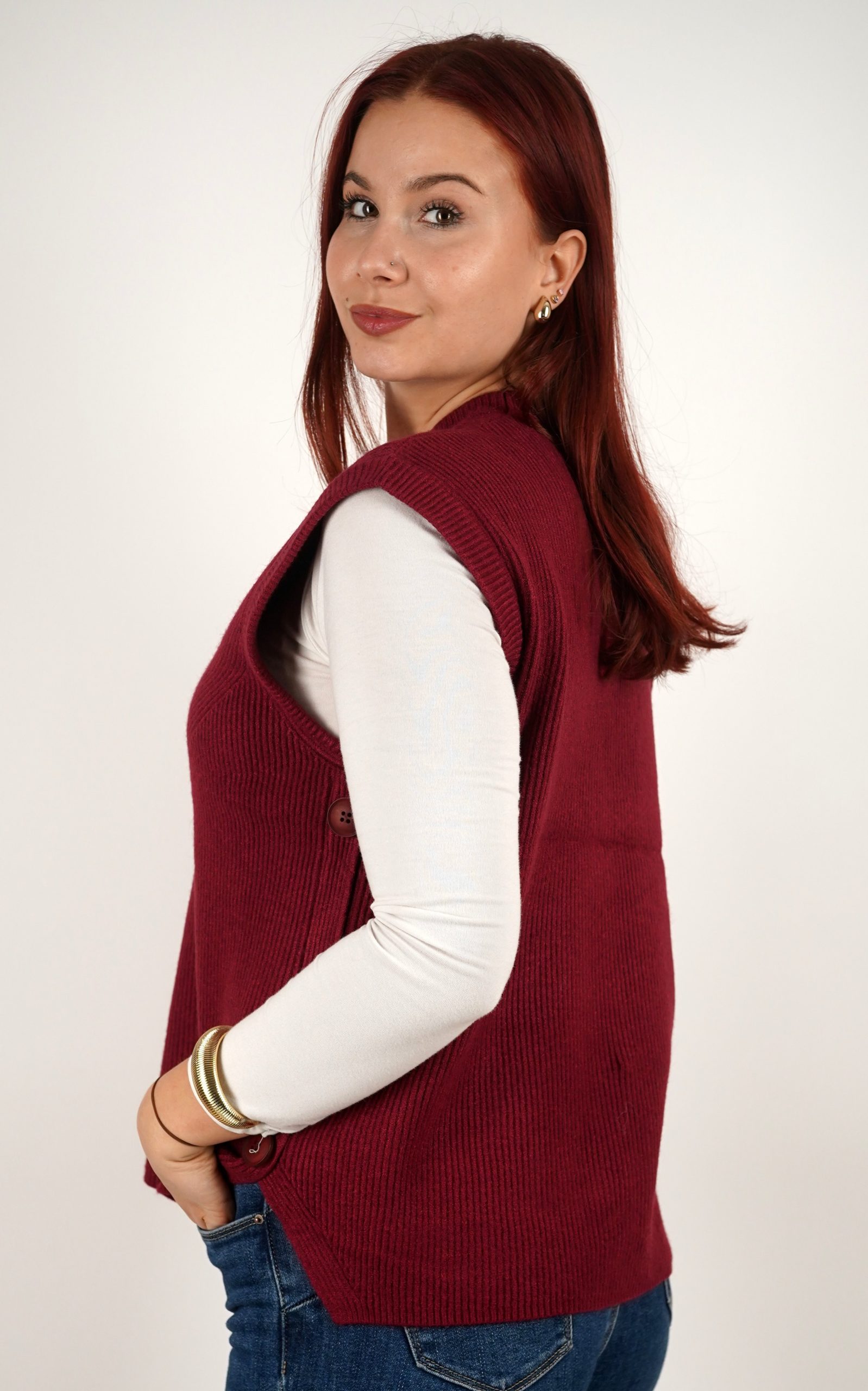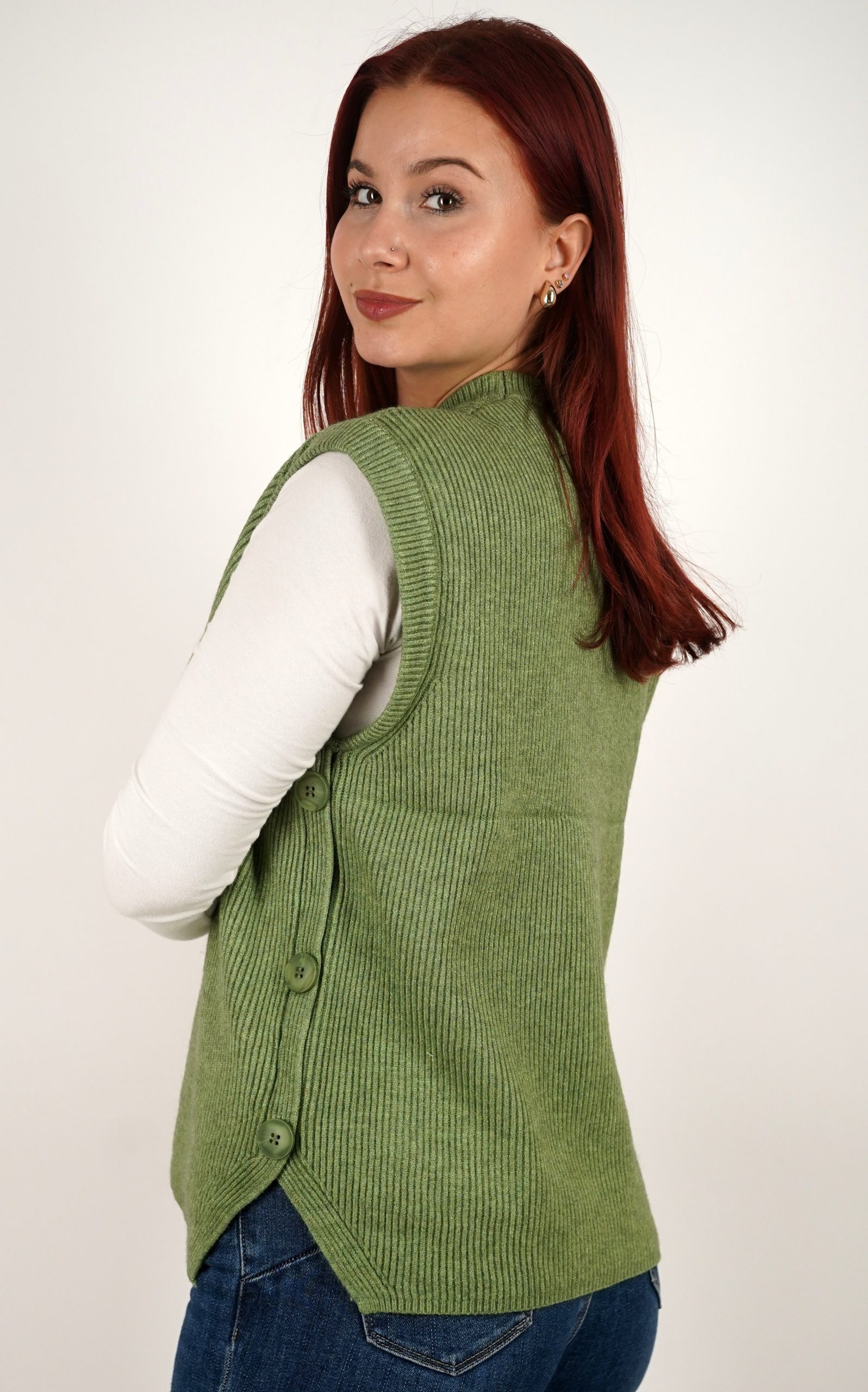 Ženski prsluk od rebrastog pletiva s gumbima na bočnim stranama – u veličinama – 3971