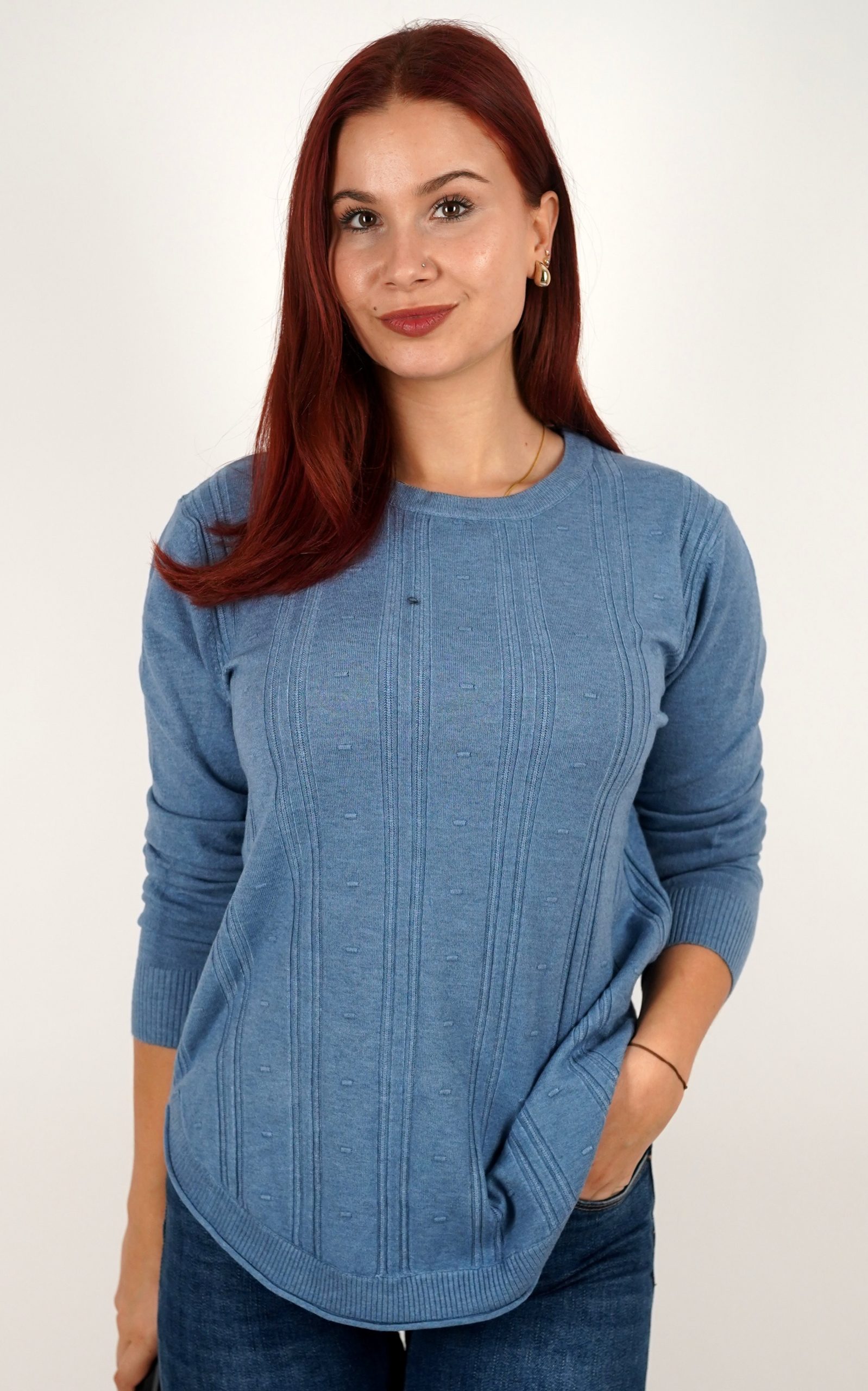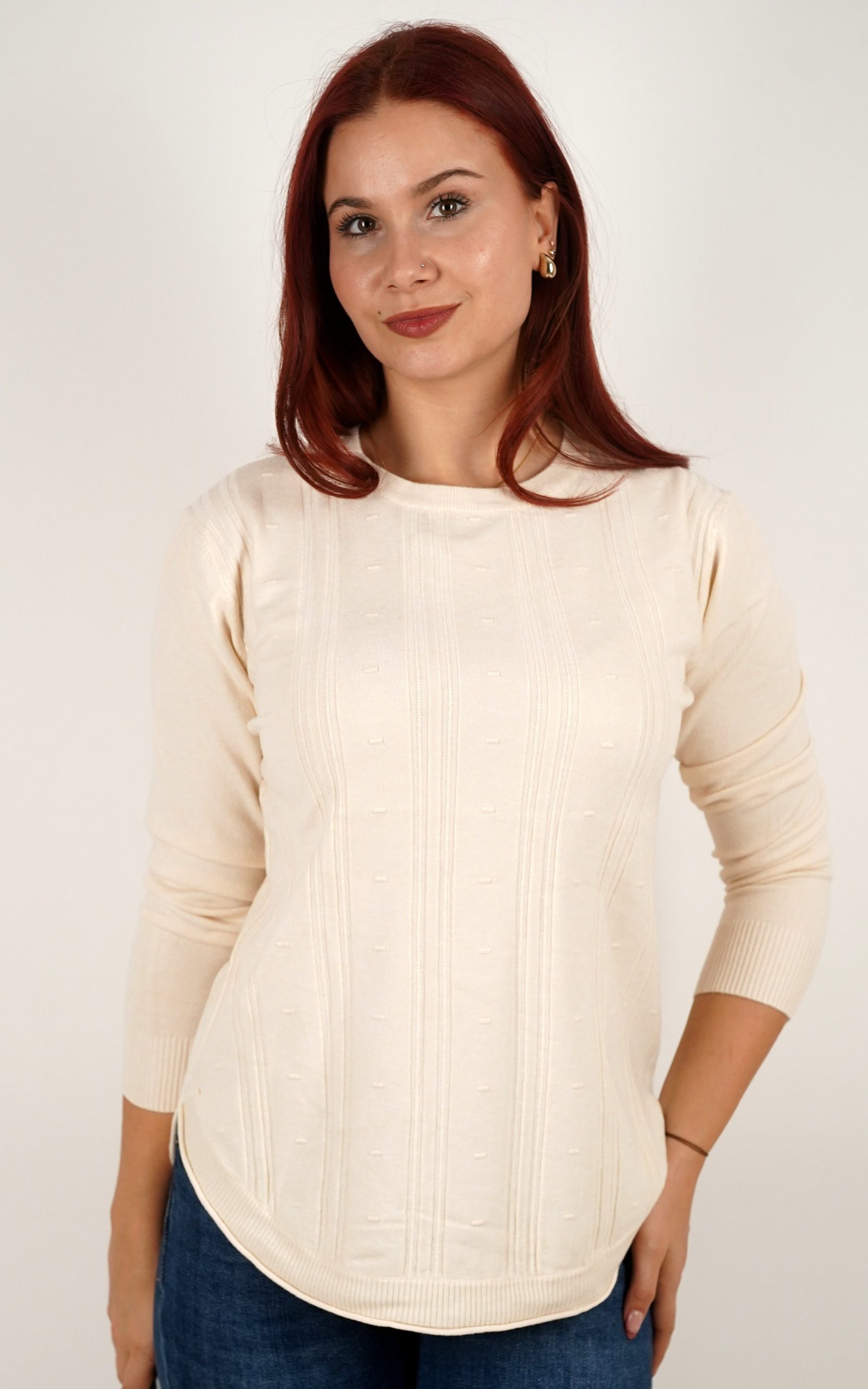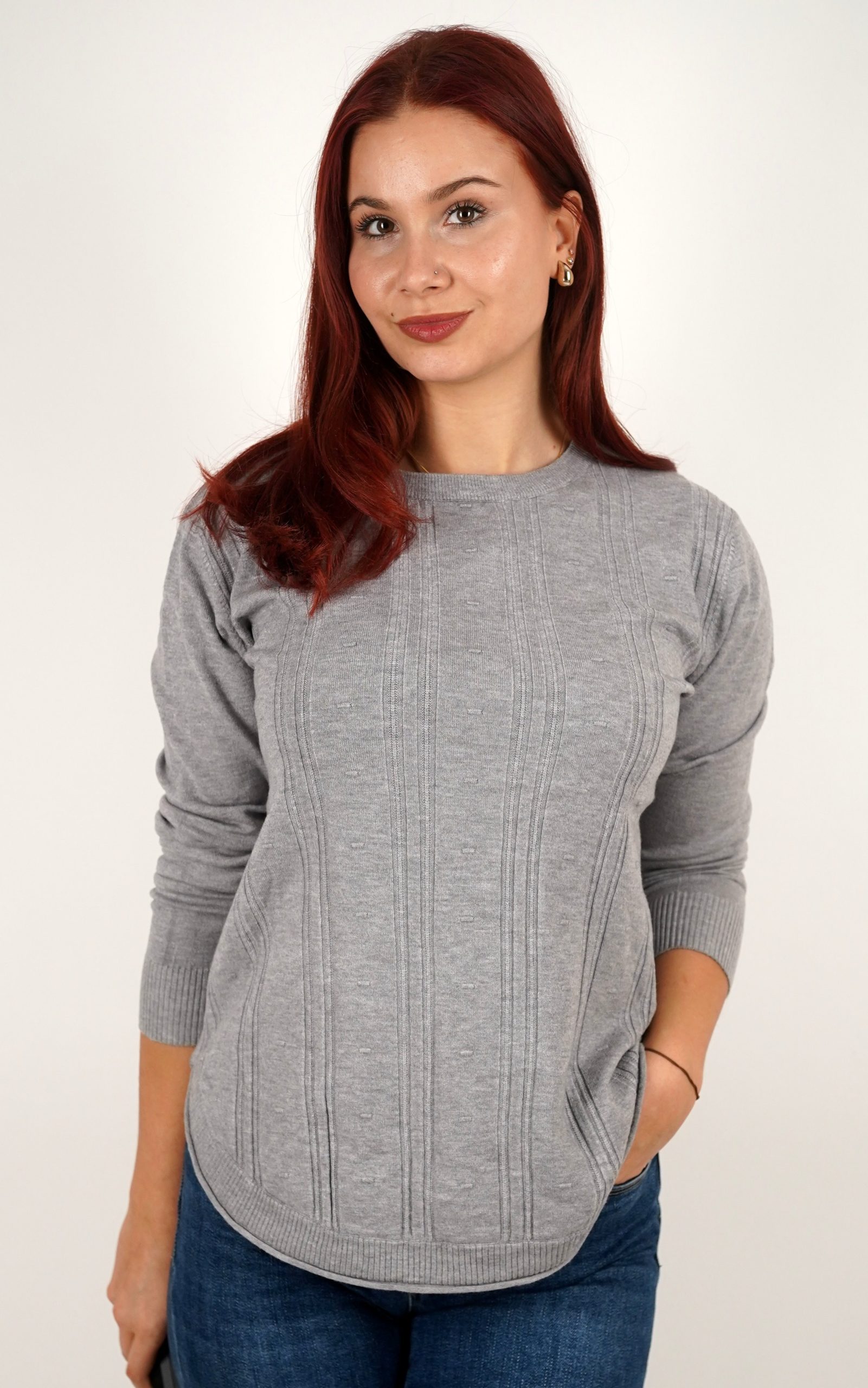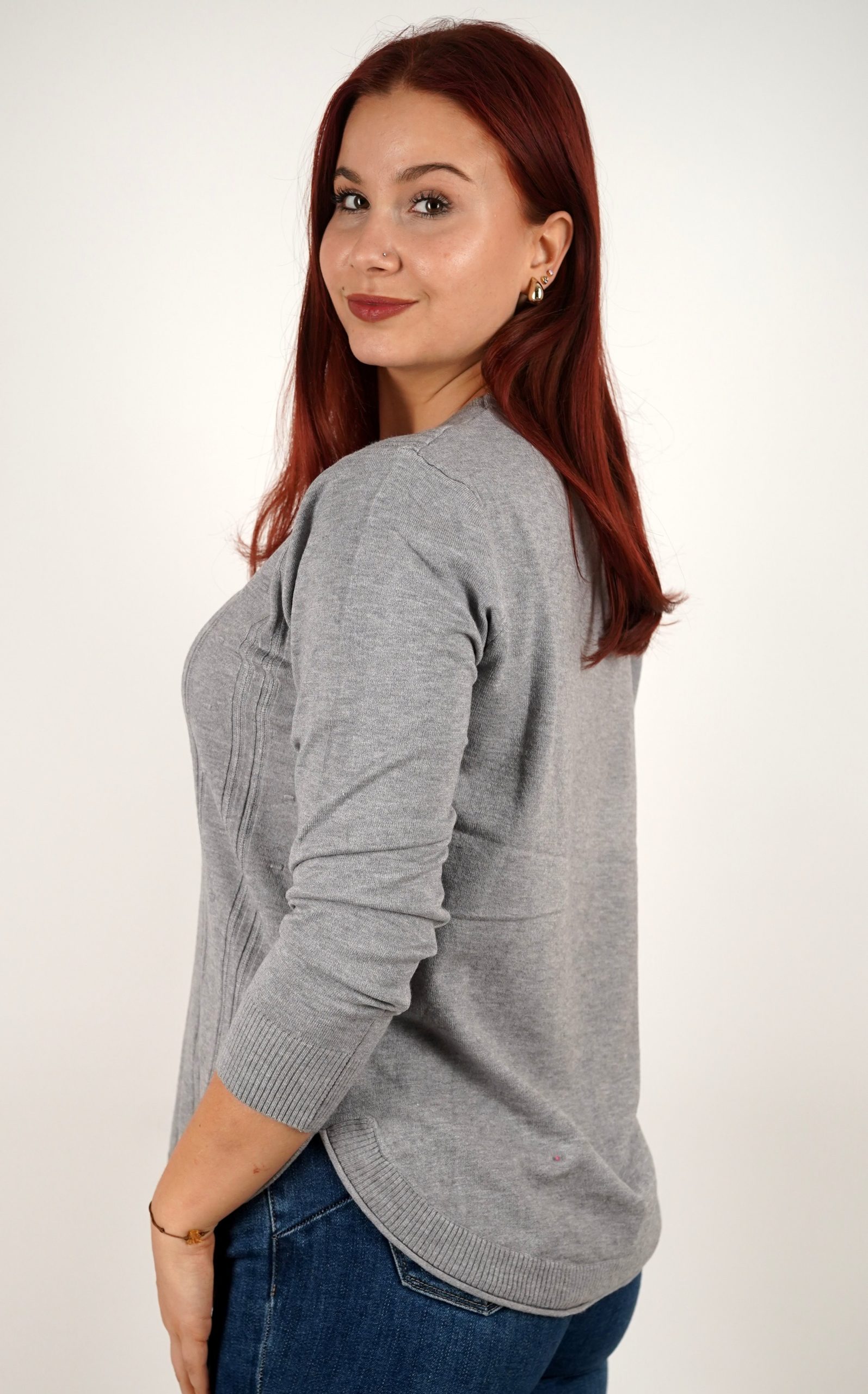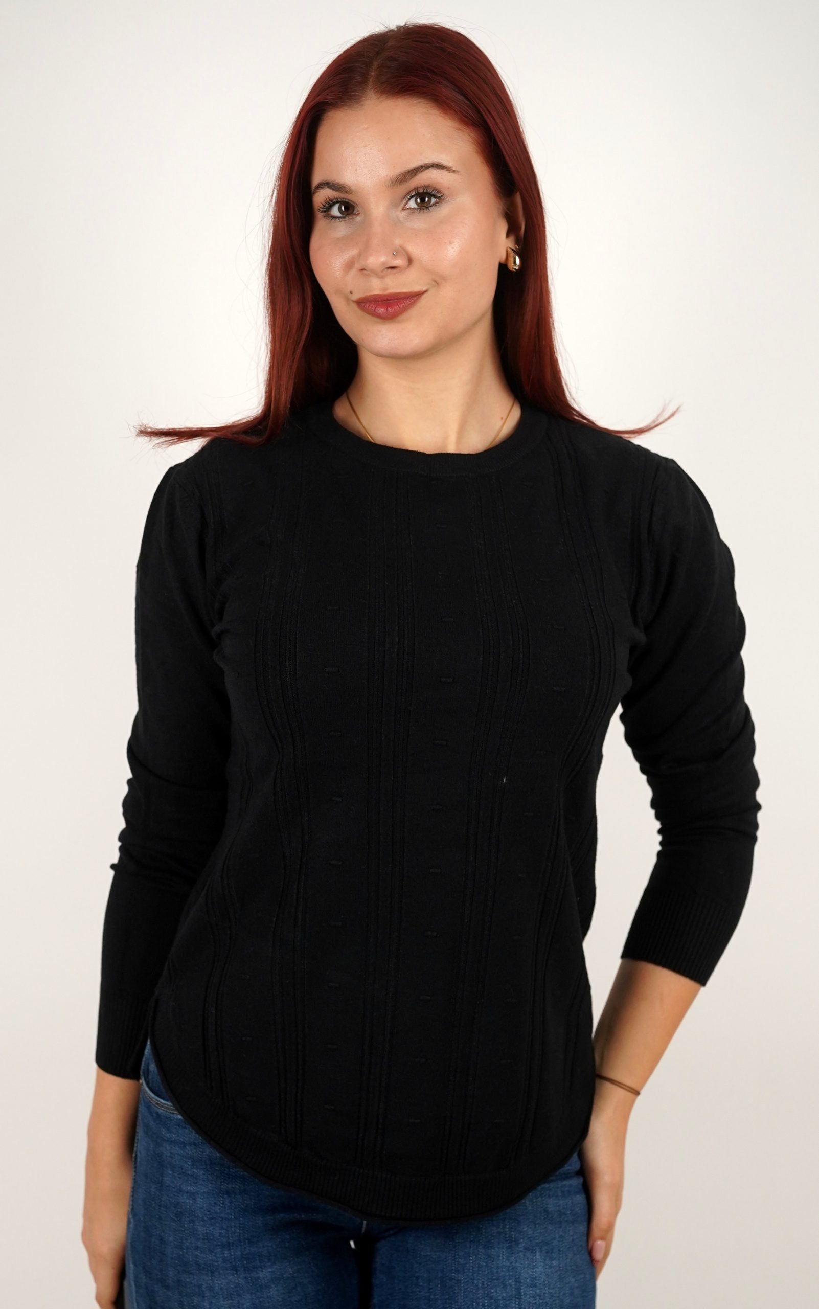Ženski pulover od finog pletiva s uzdužnim detaljima – u veličinama – 9559