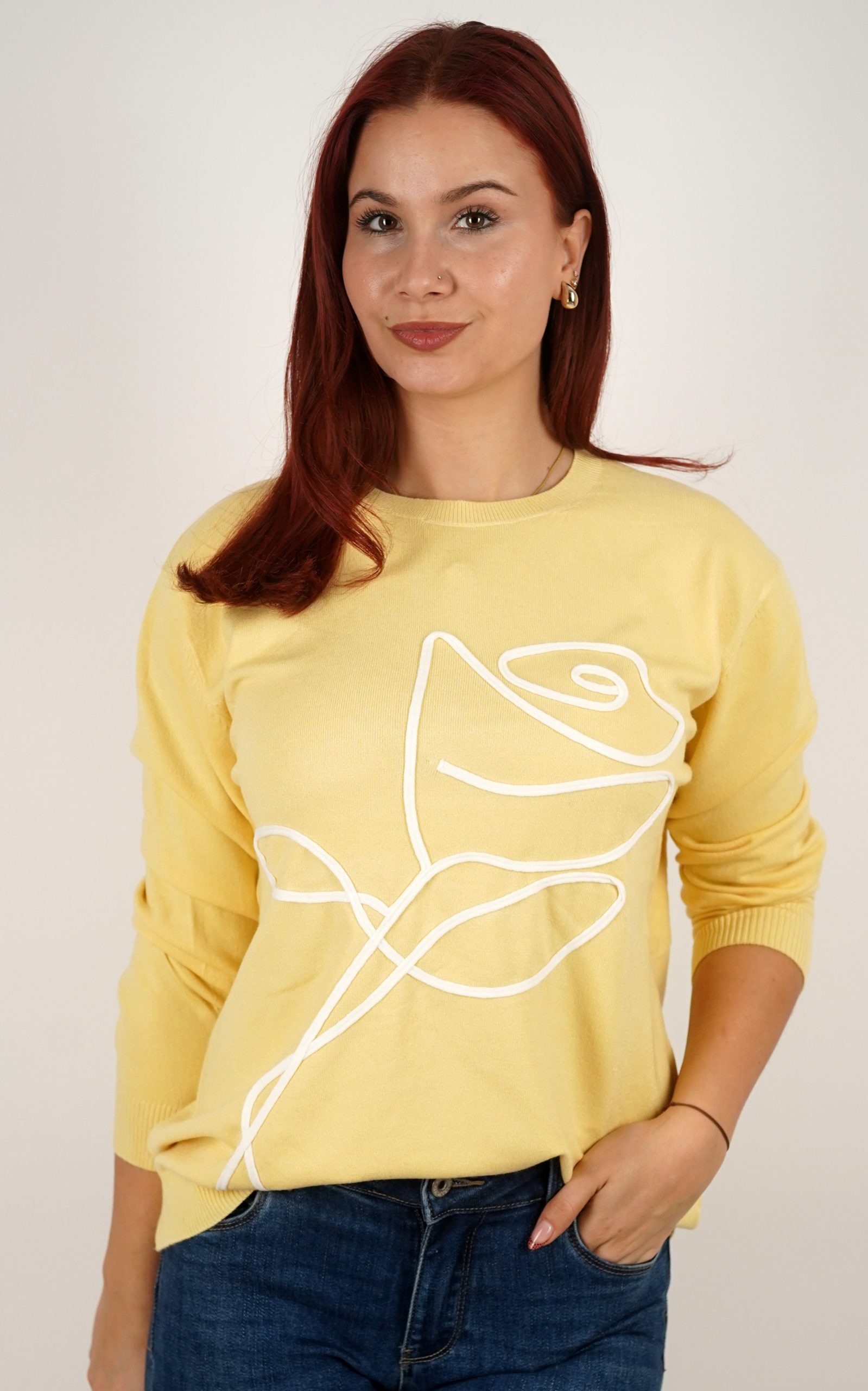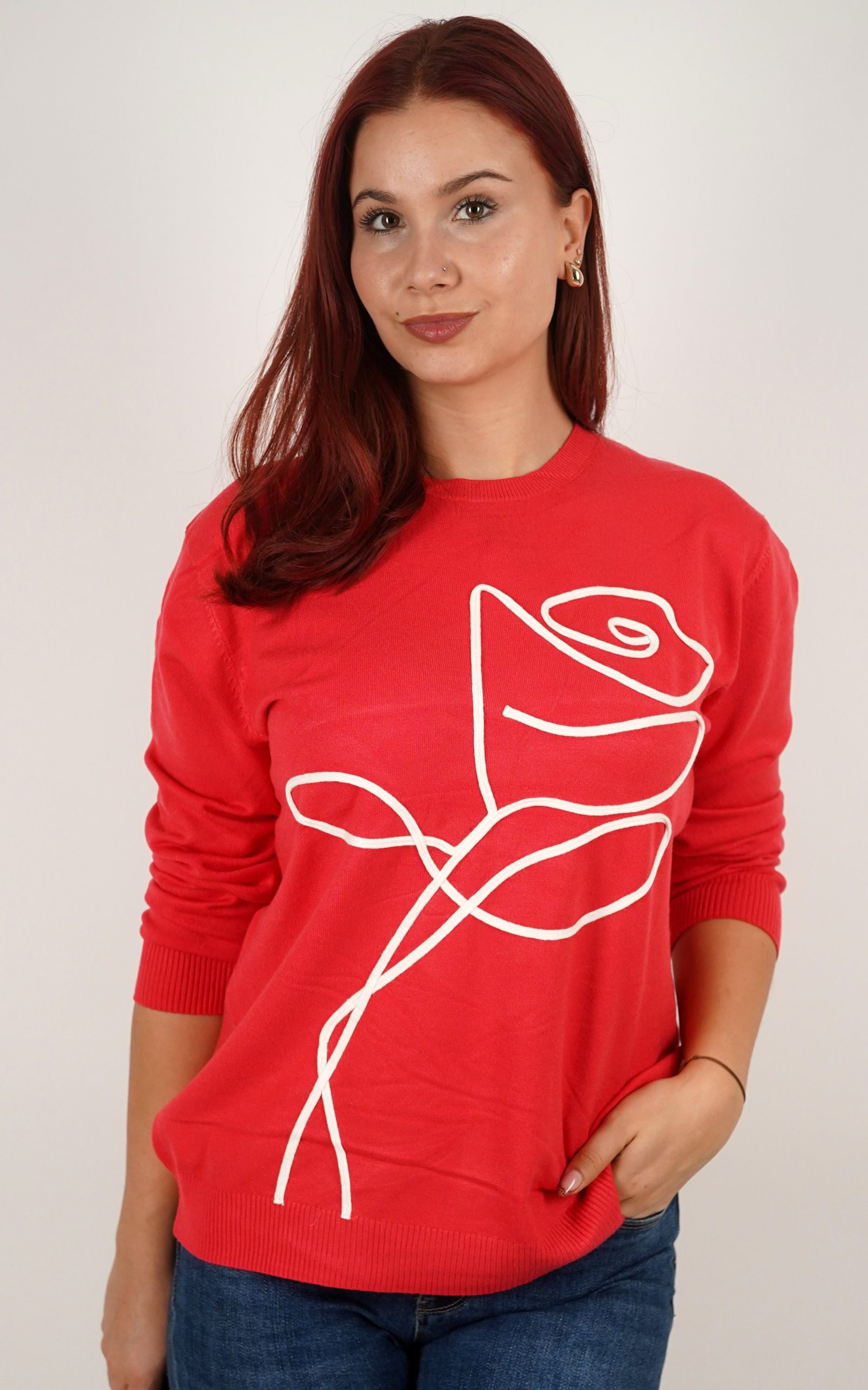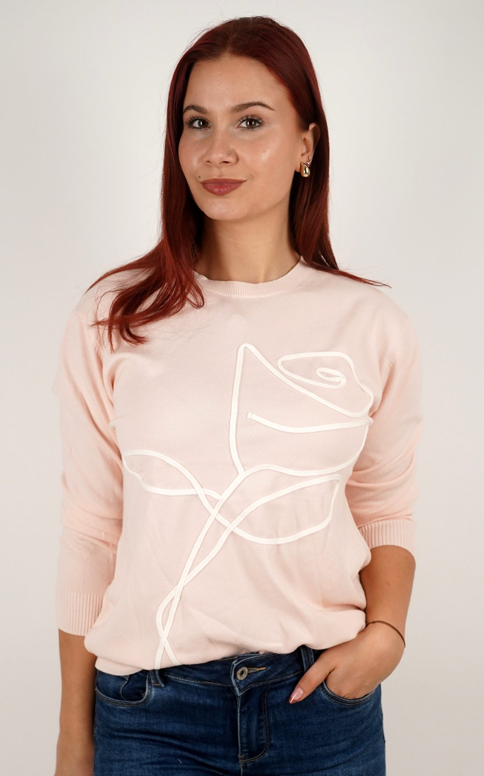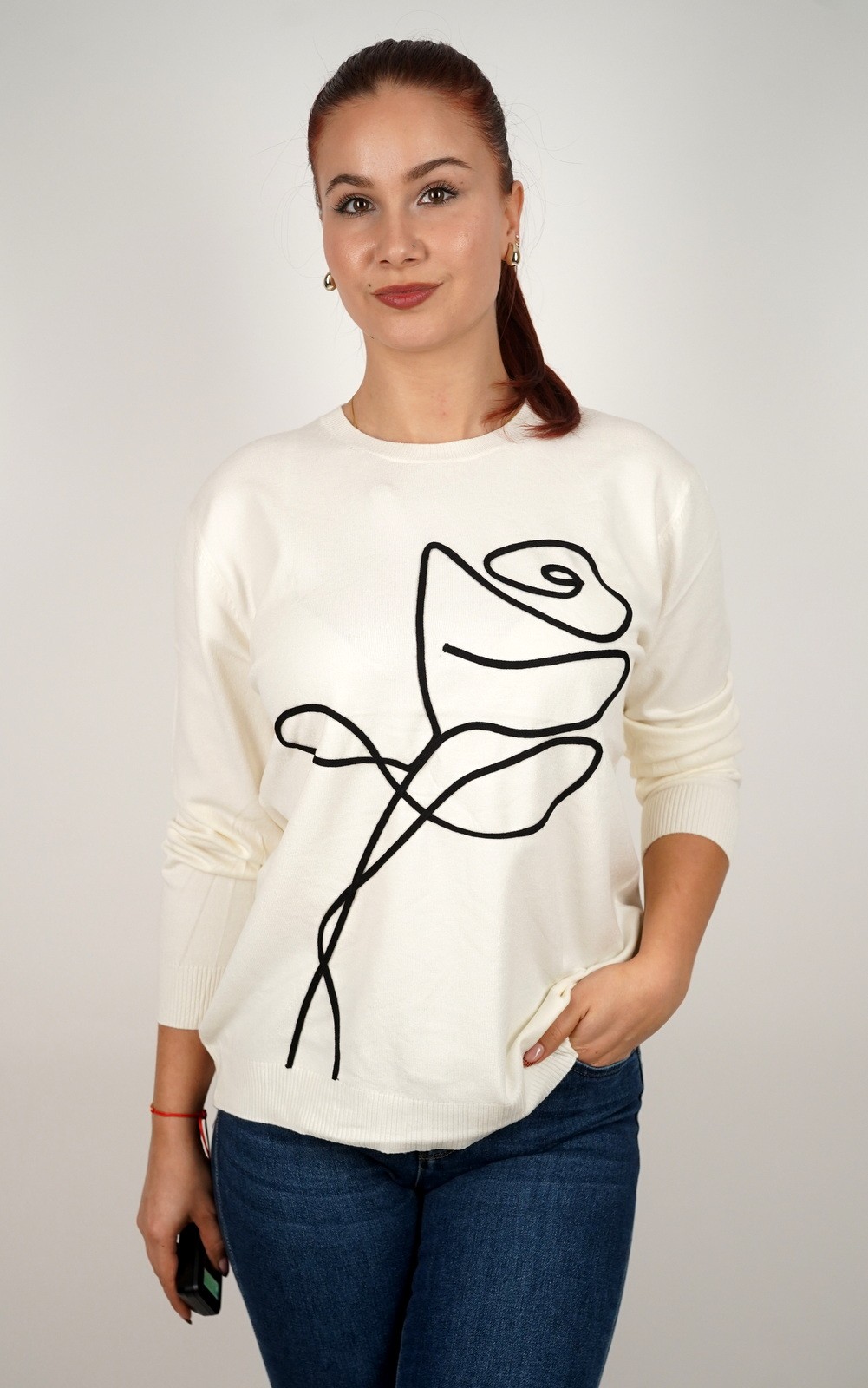 Ženski pulover od mekog pletiva s motivom ruže – u veličinama – 3995