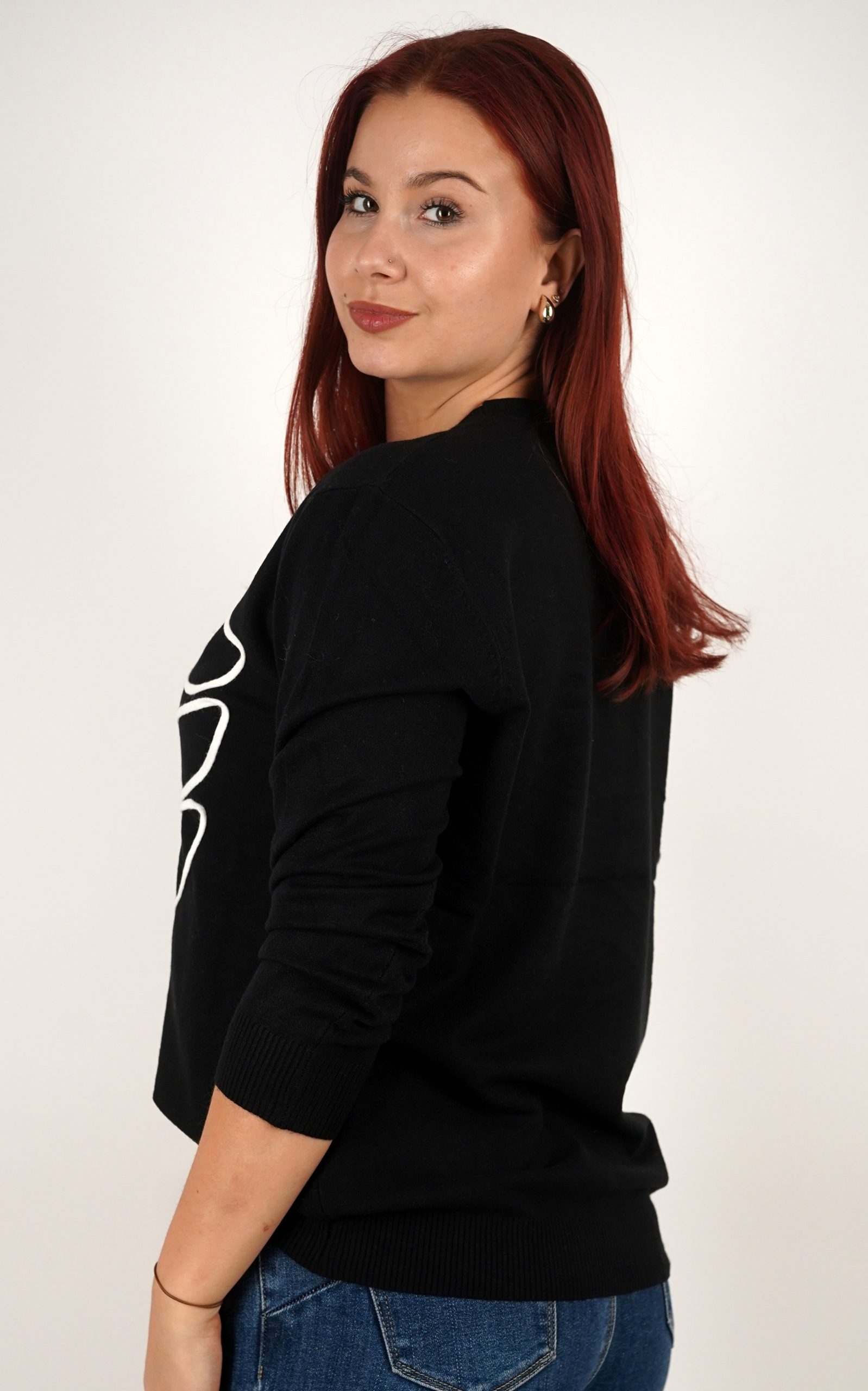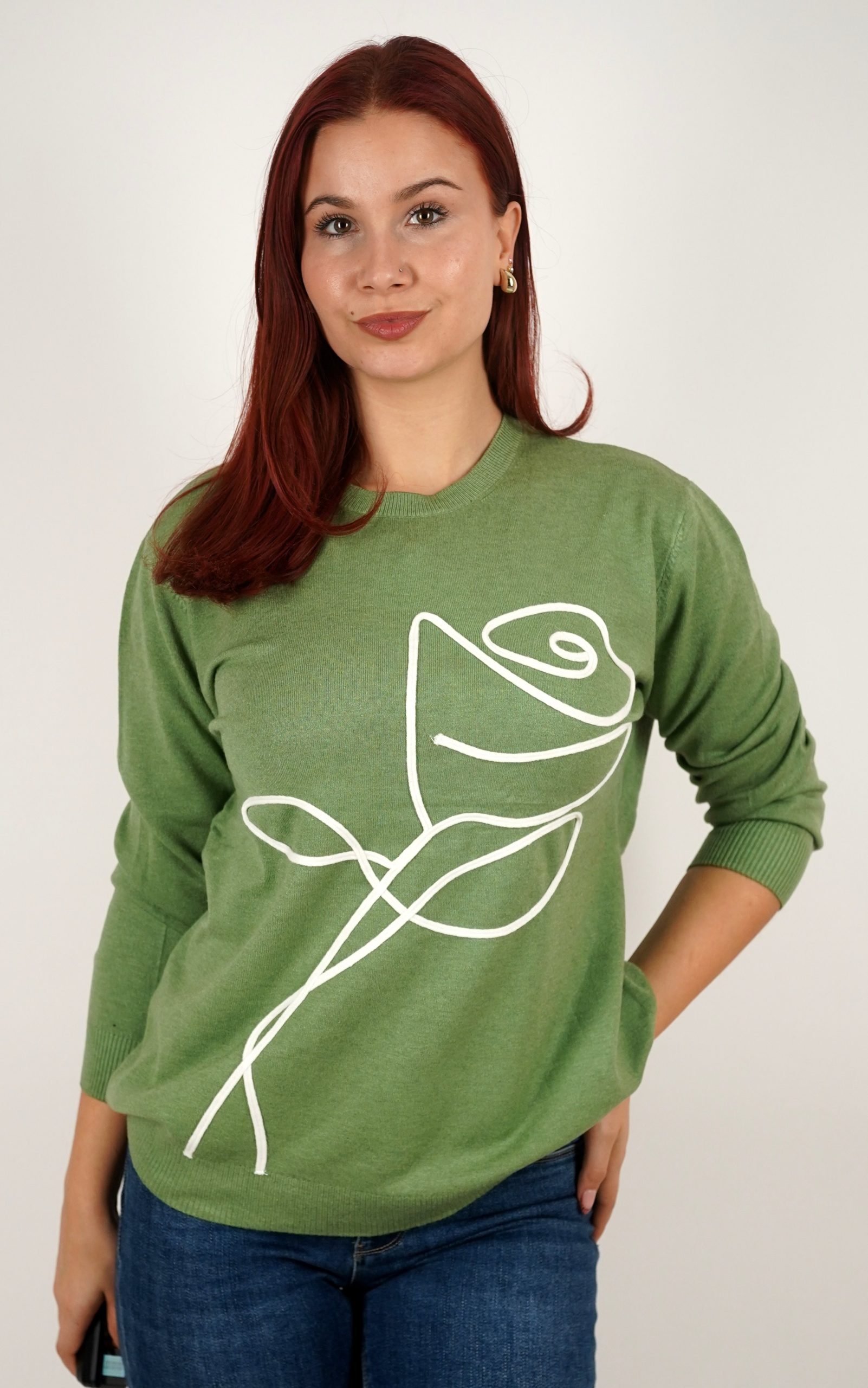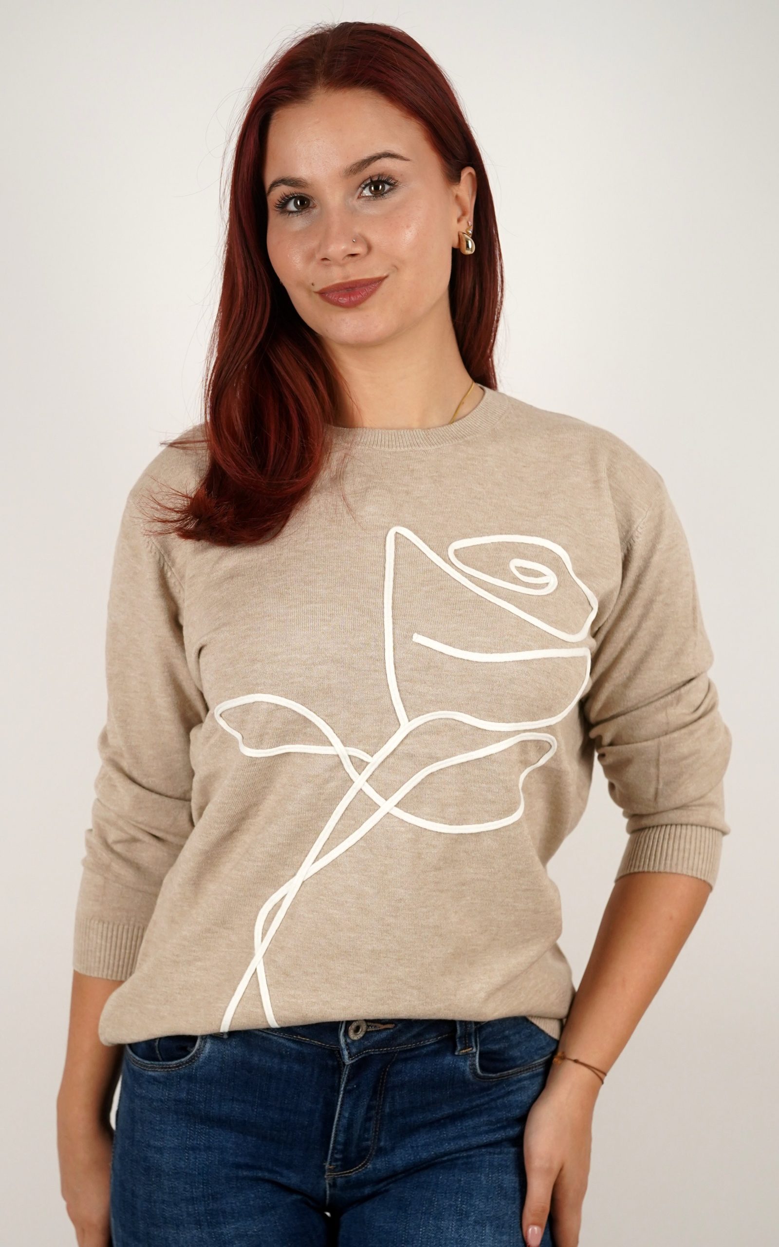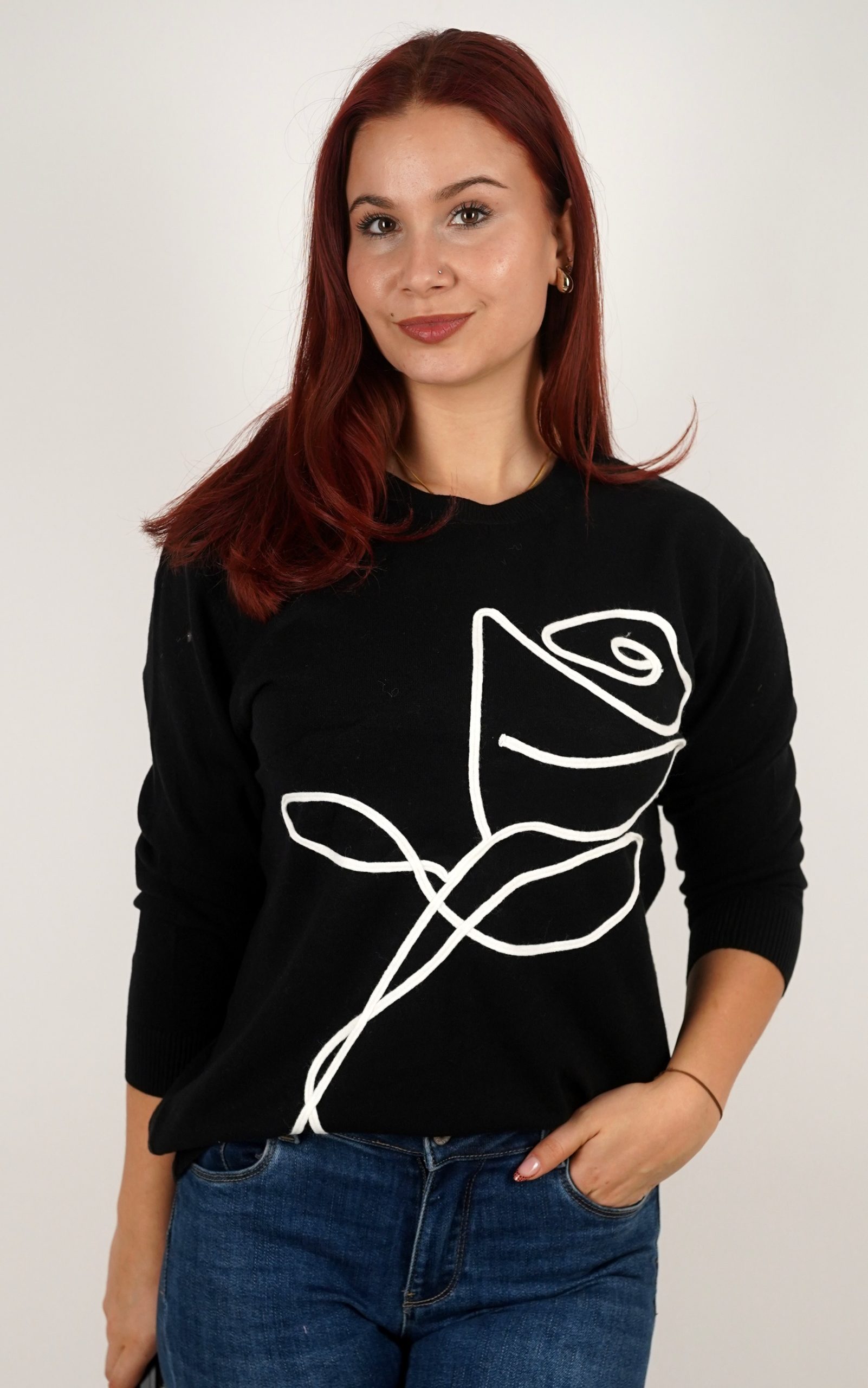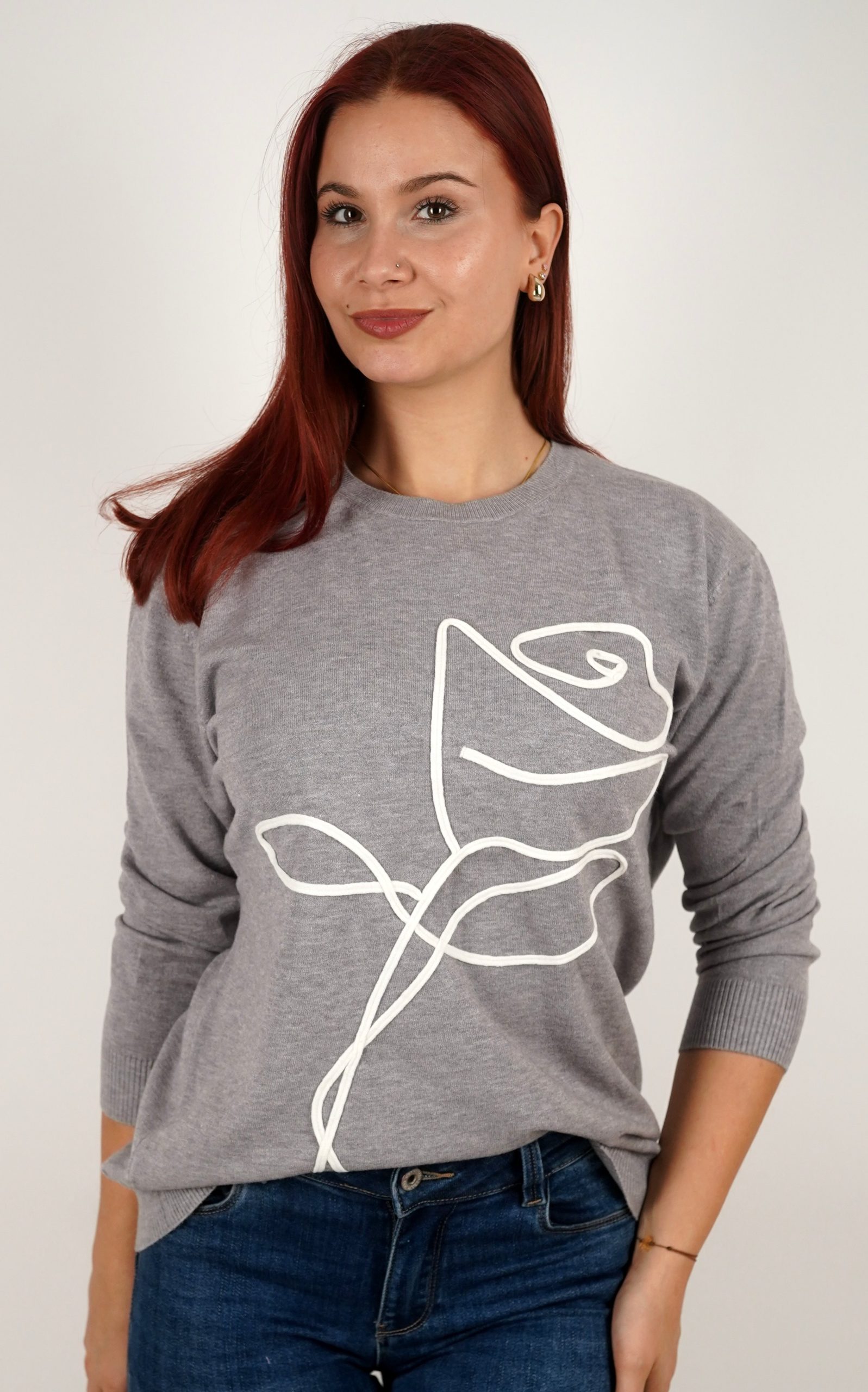 Ženski pulover od mekog pletiva s motivom ruže – u veličinama – 3995