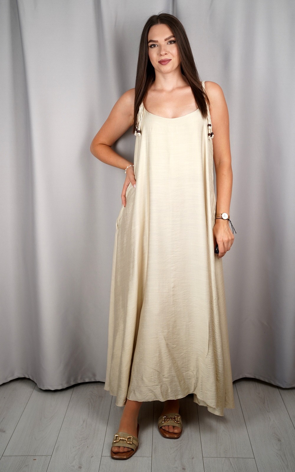 Ženska maxi haljina ležernog kroja s vezicama na naramenicama – ART:23557