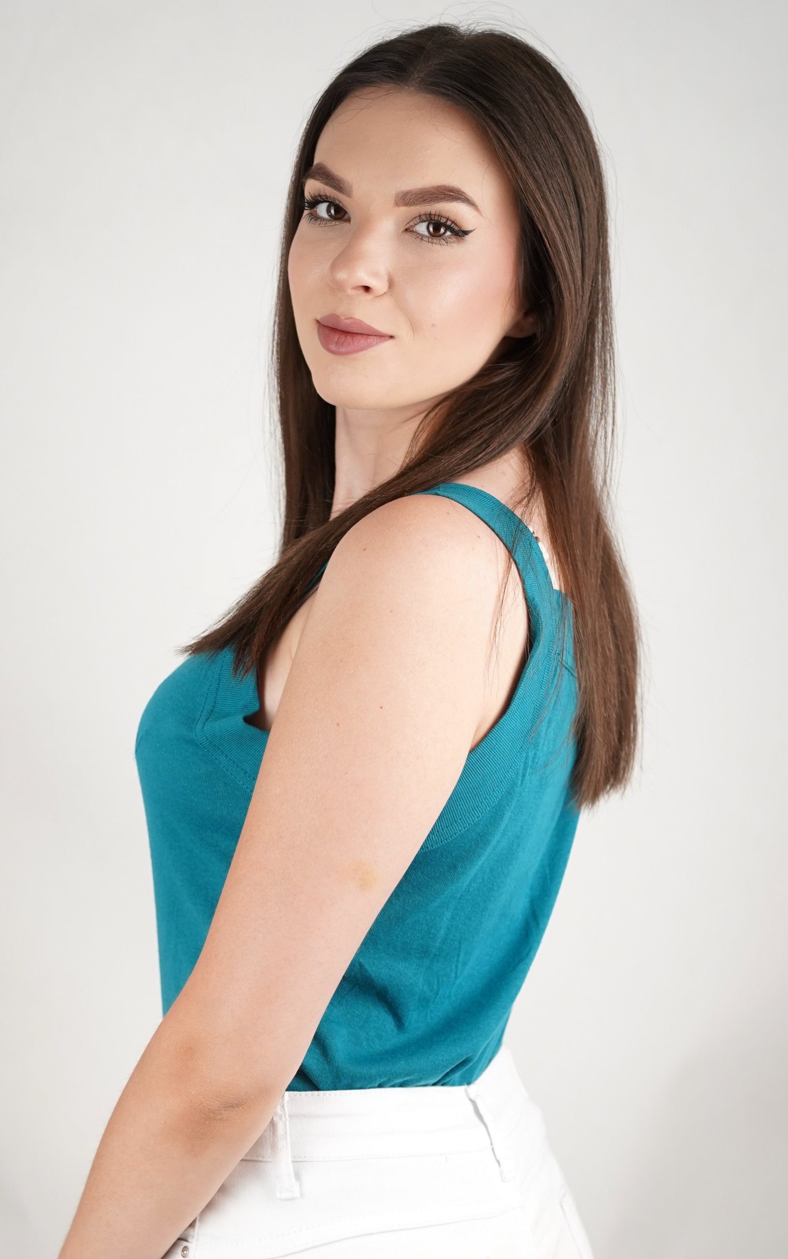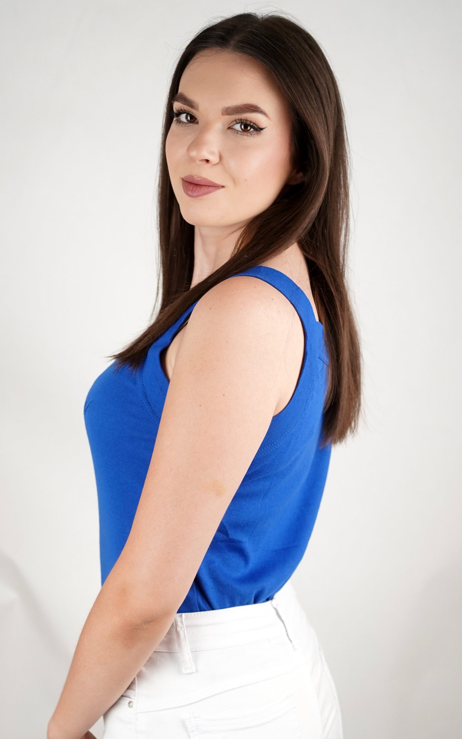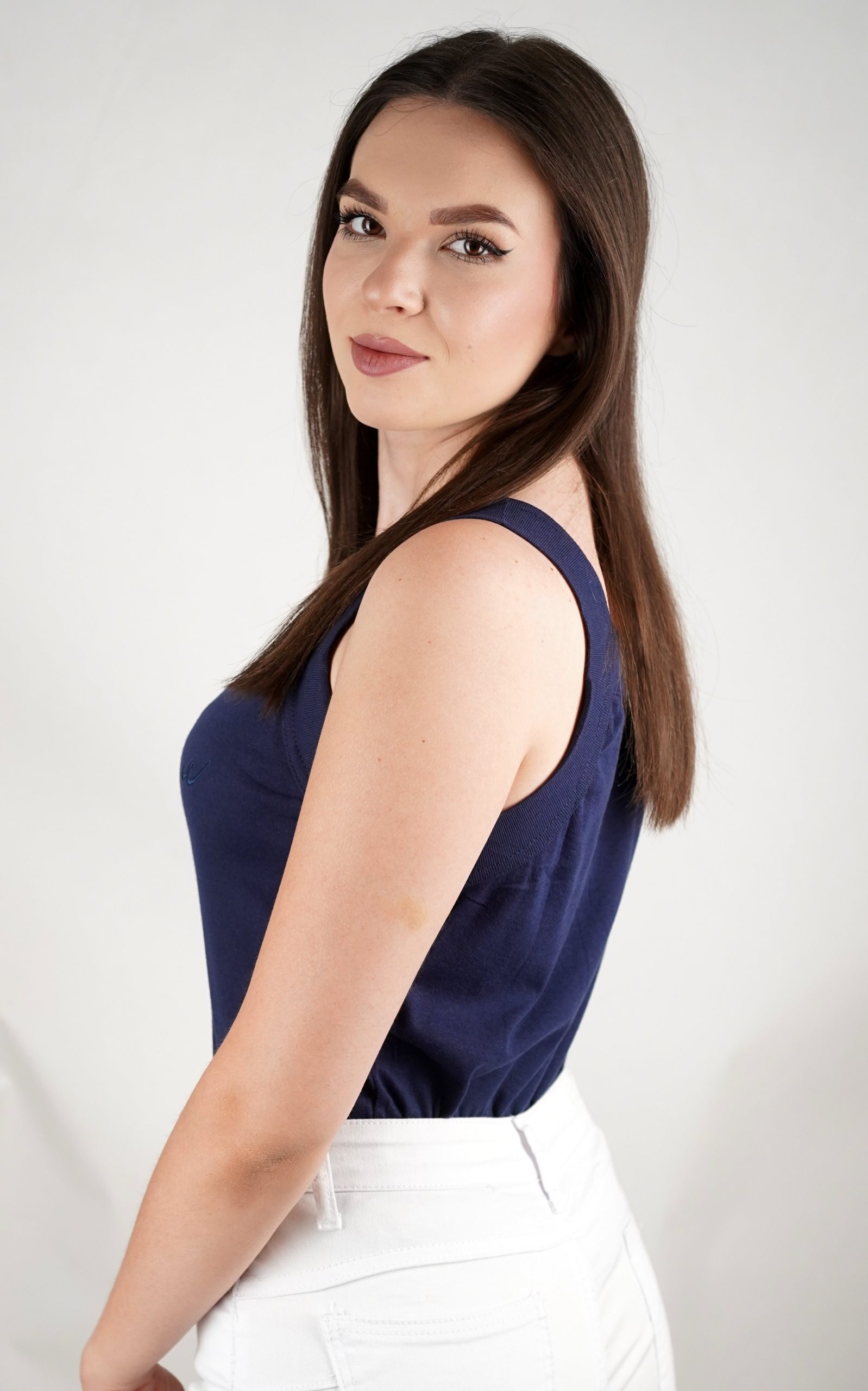 bozic30 očekuje te snižena cijena od 5.60 € za ovaj artikl u košarici.Ovaj elegantni ženski top bez rukava izrađen je od kvalitetnog i ugodnog pamučnog materijala s laganim rebrastim efektom, što mu daje dodatnu elastičnost i udobnost. Posebnost ovog modela je preklopljeni izrez koji decentno oblikuje dekolte, dajući mu sofisticiran i moderan izgled. Savršen je izbor za tople dane – može se nositi samostalno ili ispod sakoa ili košulje. Zahvaljujući klasičnom dizajnu, lako se kombinira u svakodnevnim, poslovnim i večernjim outfitima.