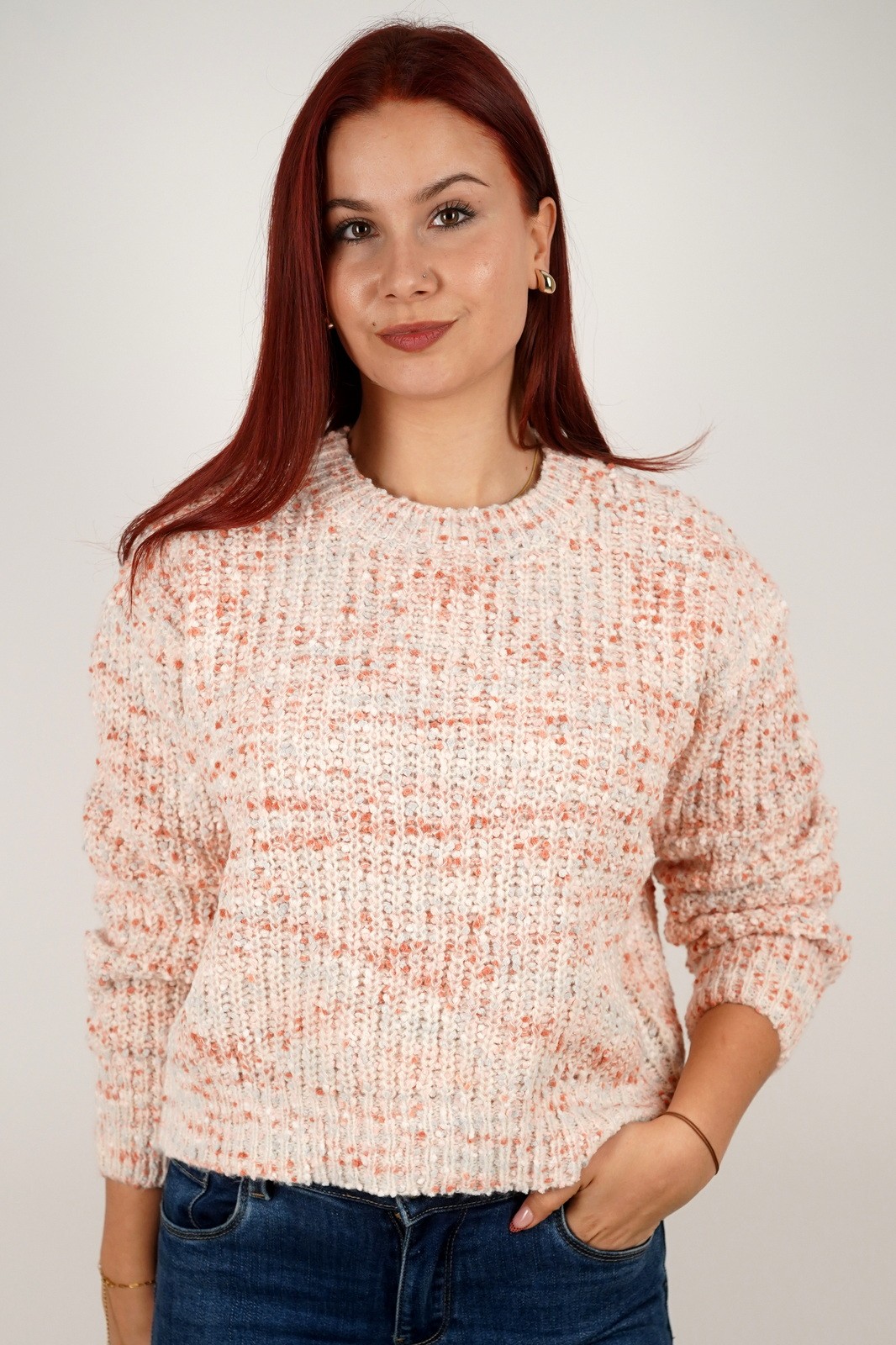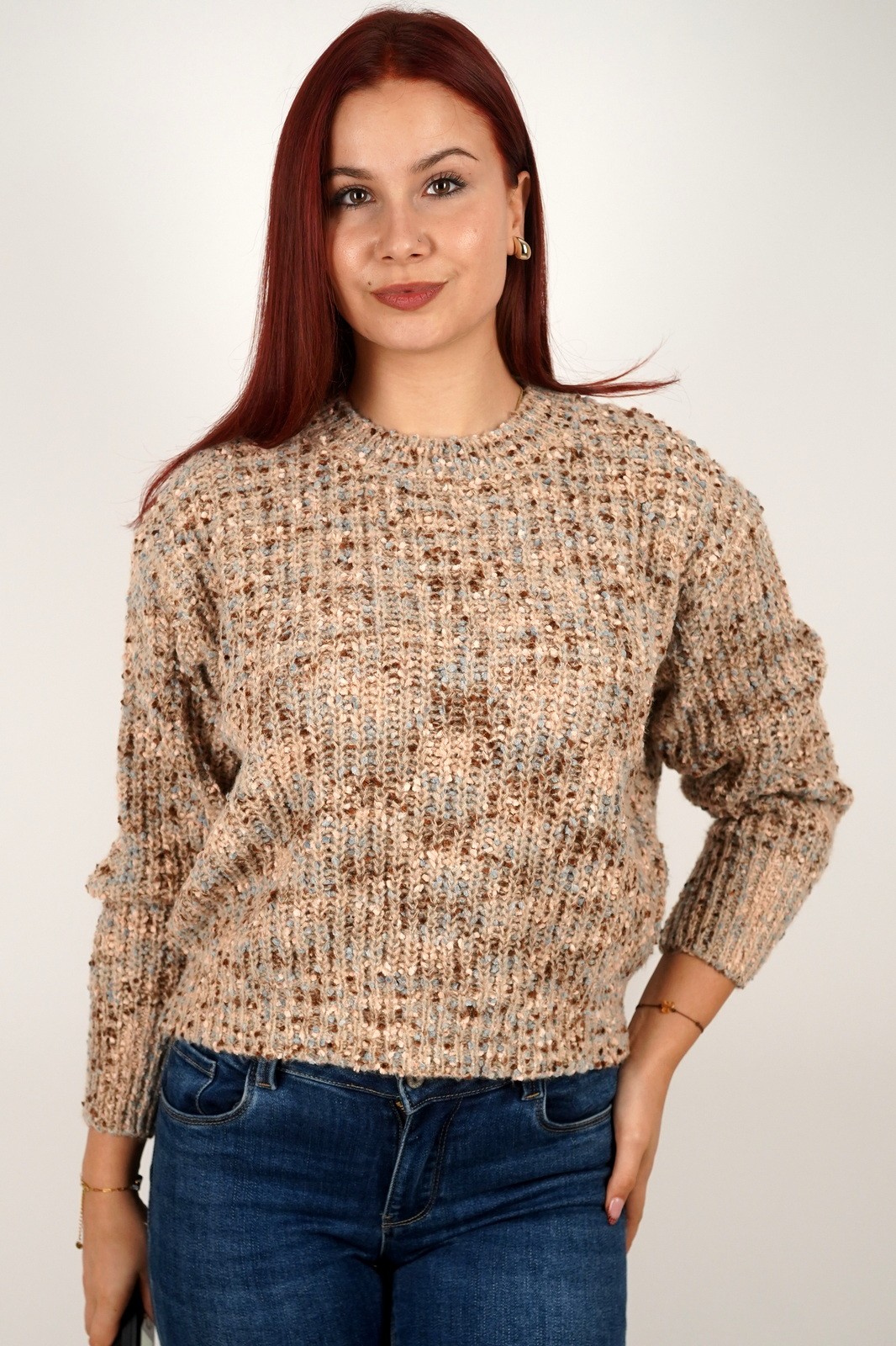 Ženski topli pulover od mekane vunene mješavine s teksturom – 10001