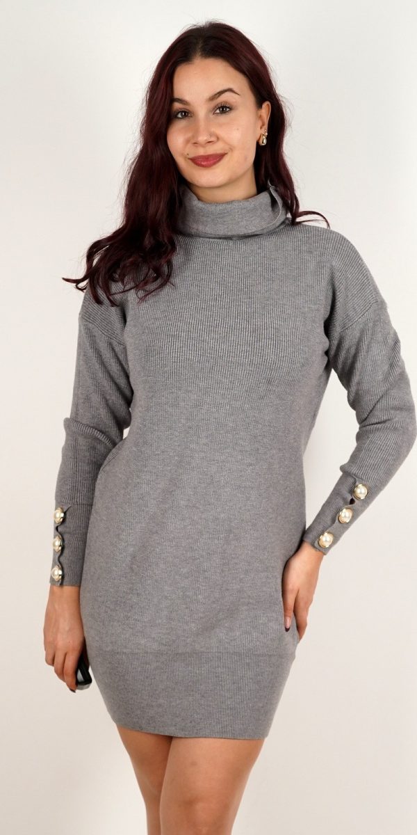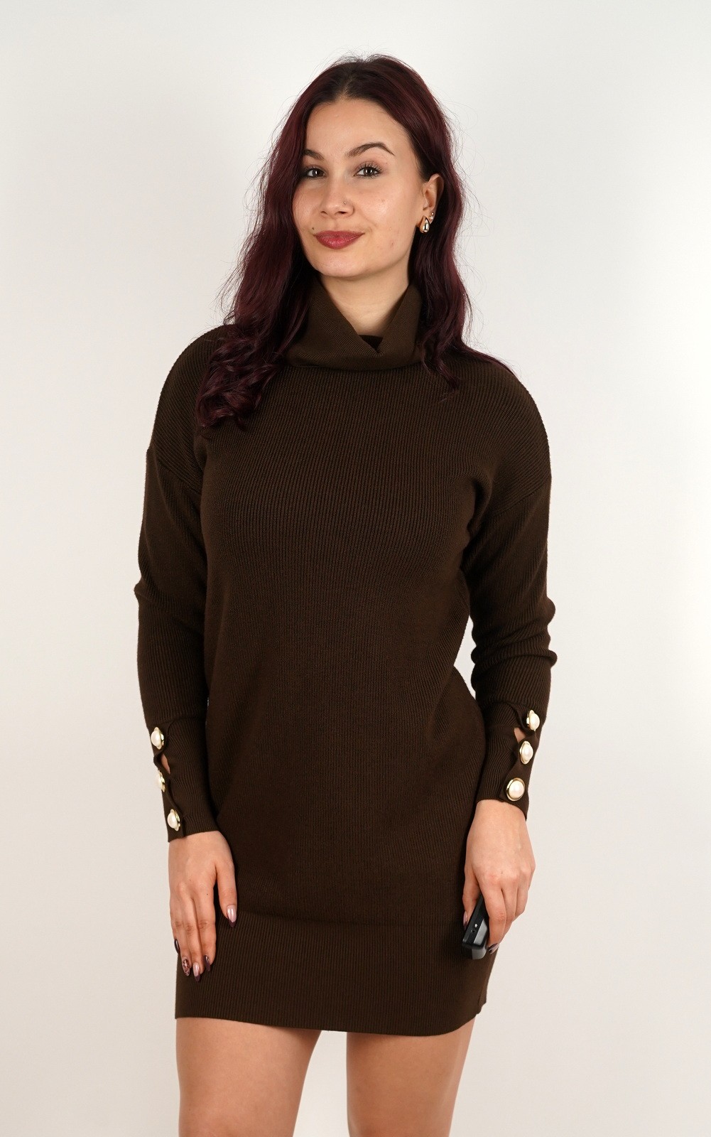 Ženska pletena mini haljina s visokim ovratnikom i detaljima na rukavima – zs9027