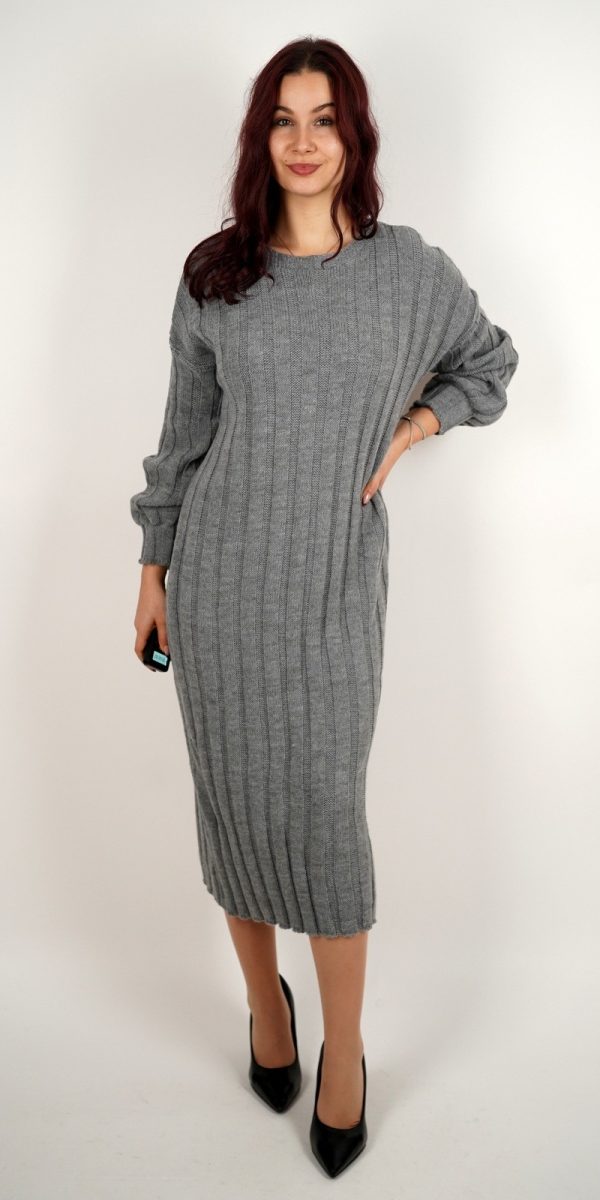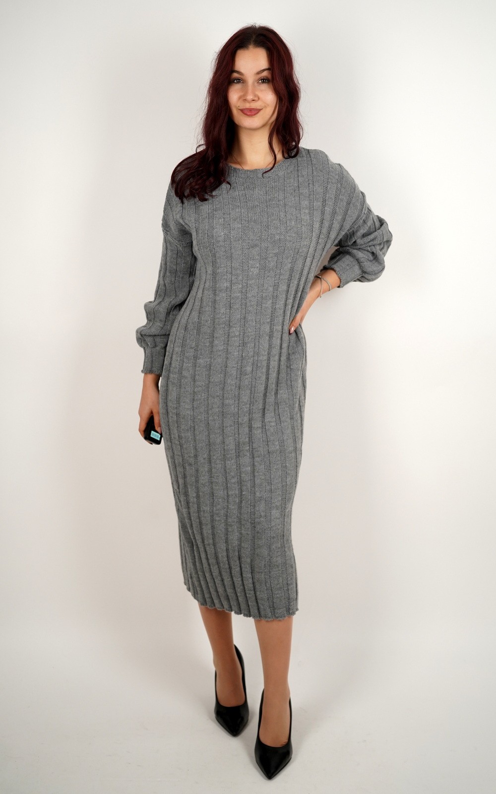 Ženska oversized rebrasta pletena midi haljina – ART:3327