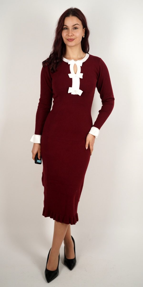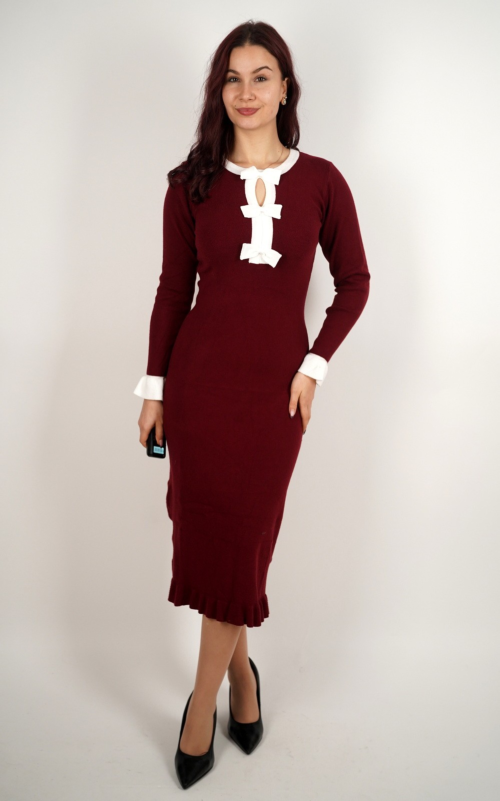 Ženska midi pletena haljina s dekorativnim mašnama i volan rubom – TU509