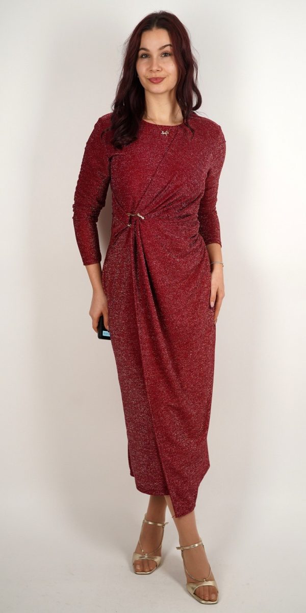 kolekcijaŽenska sjajna midi haljina s efektnim čvorom i elegantnim naborima – ART16353