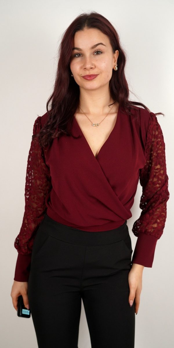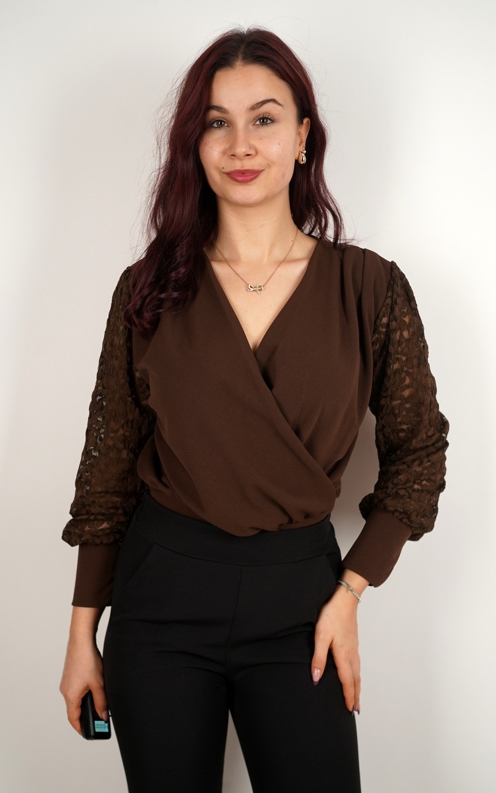 kolekcijaŽenski elegantni bodi s prekriženim prednjim dijelom i čipkastim rukavima – ART:89853