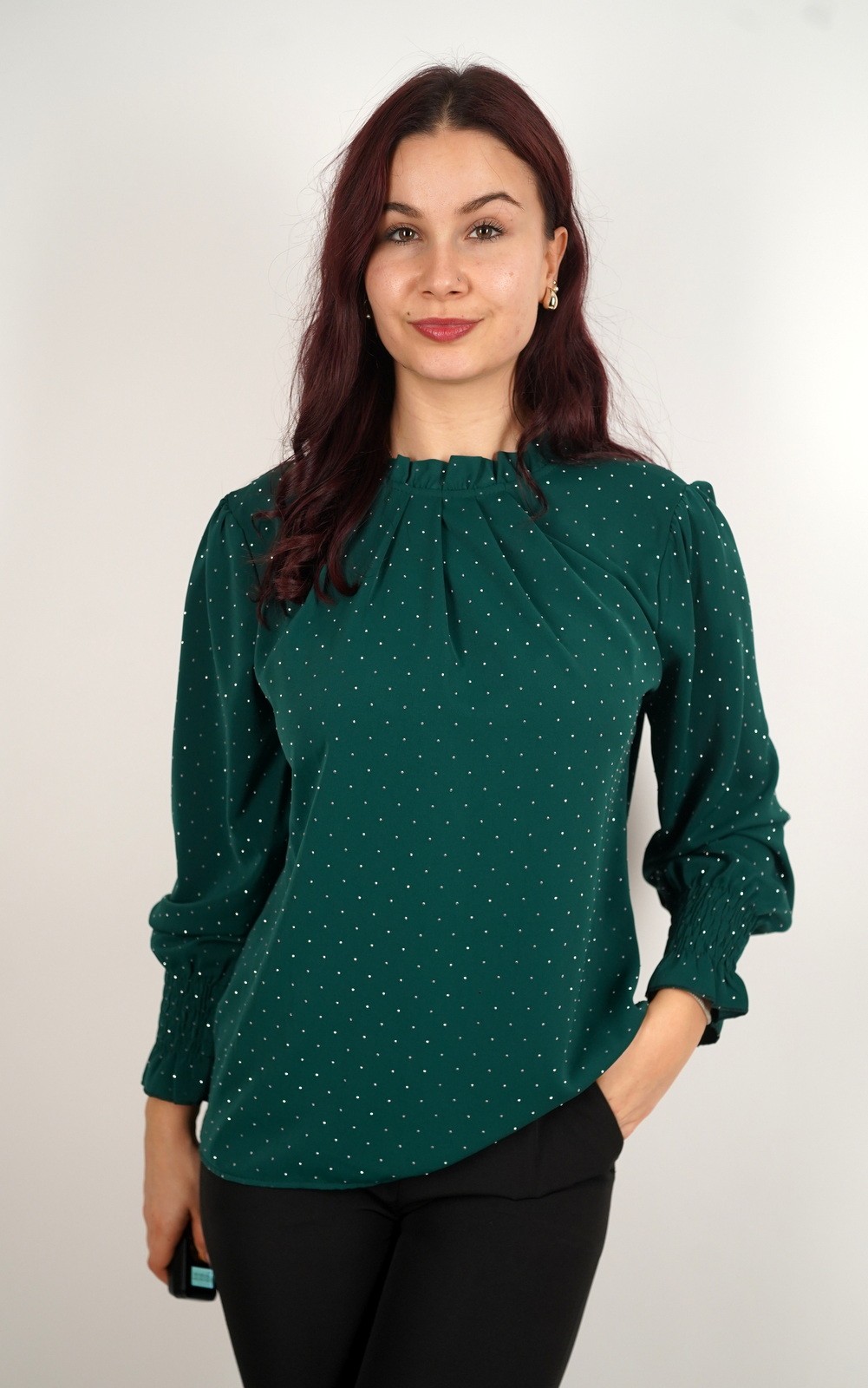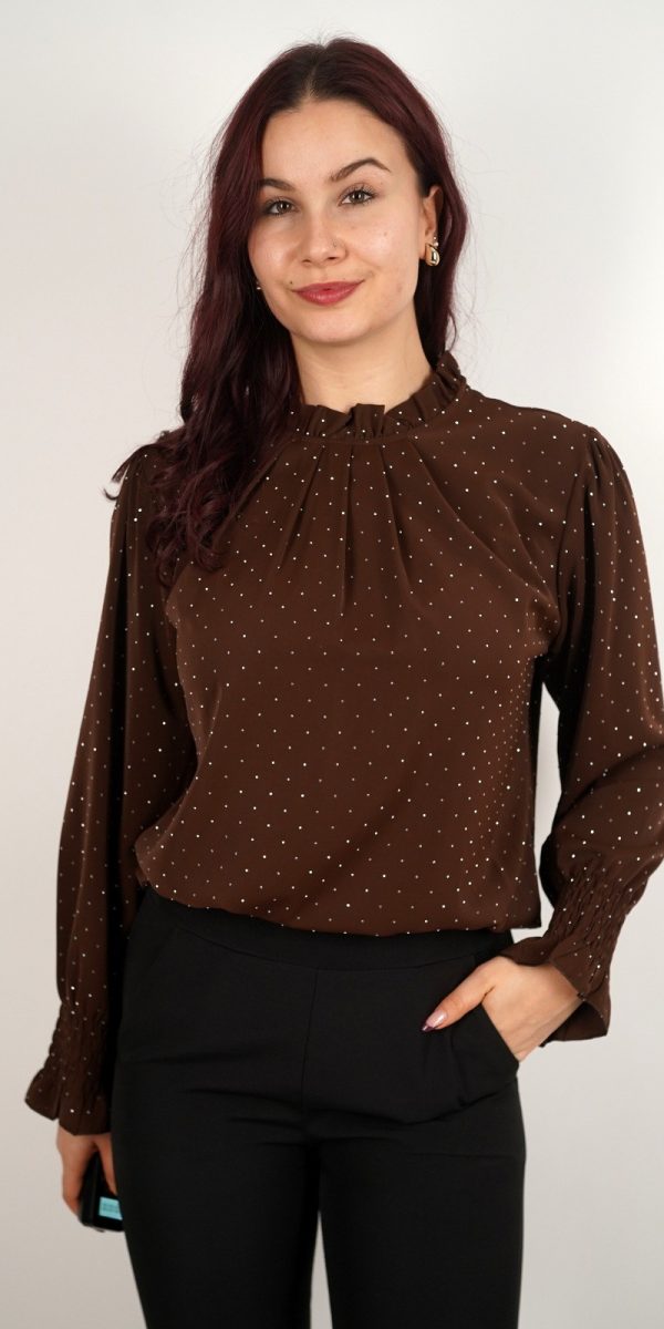 kolekcijaŽenska elegantna košulja s cirkonima i plisiranim ovratnikom – ART:89842